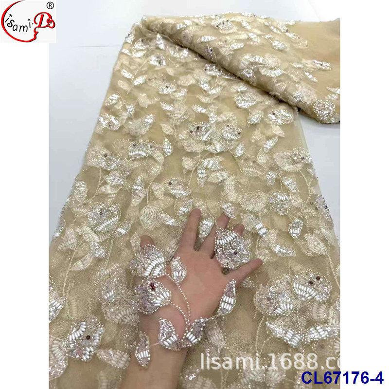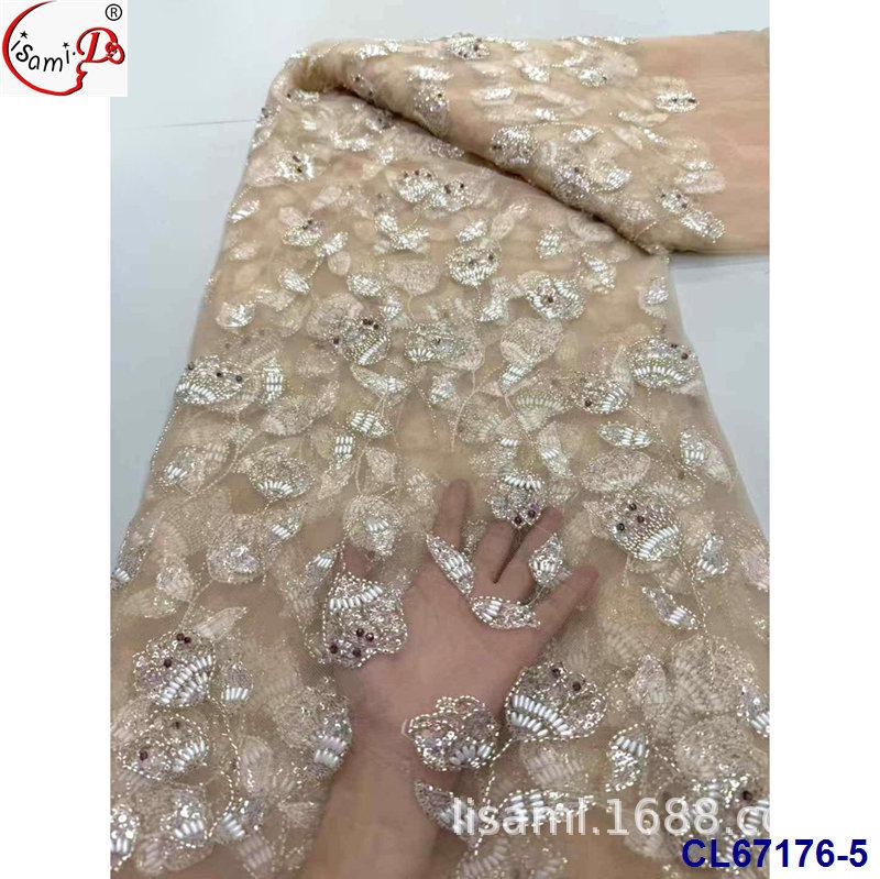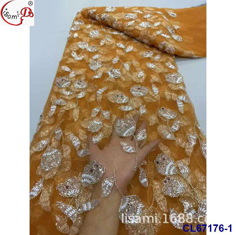 Encaje Francés Retro de Ancho Completo con Cuentas de Burbuja y Lentejuelas Bordado Floral Denso Vestido Vestido Malla Bordado Venta al por Mayor