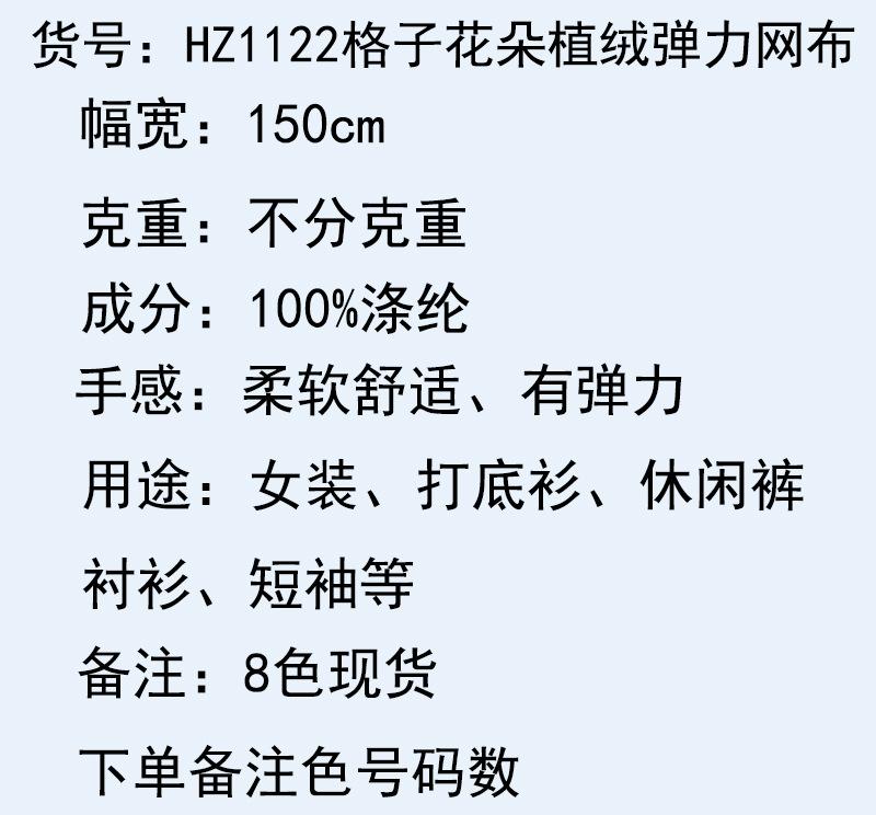 Hz1122 plaid flower flocking elastic mesh