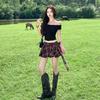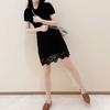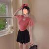 Top Casual de Traje Nuevo de Lunares a Cuadros con Flocado de Flores de Malla Elástica, Falda de Manga Corta, Malla Elástica