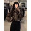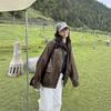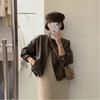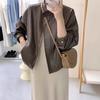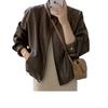Chaqueta de cuero marrón chaqueta de cuero para mujer 2025 nuevo estilo de Hong Kong corta motocicleta popular americano vintage traje de béisbol