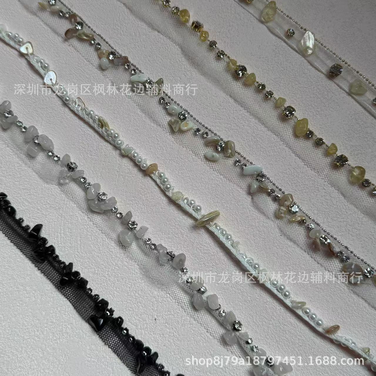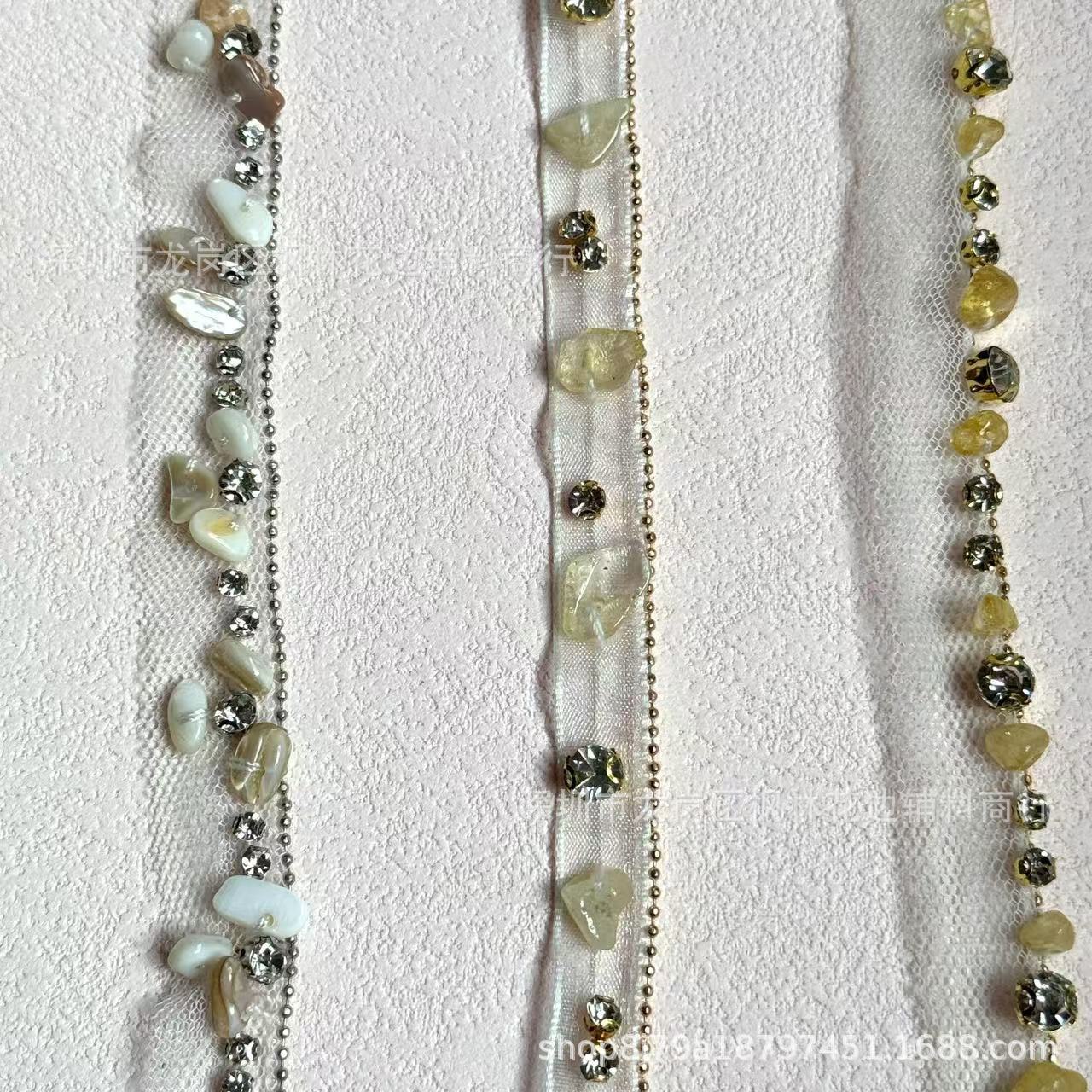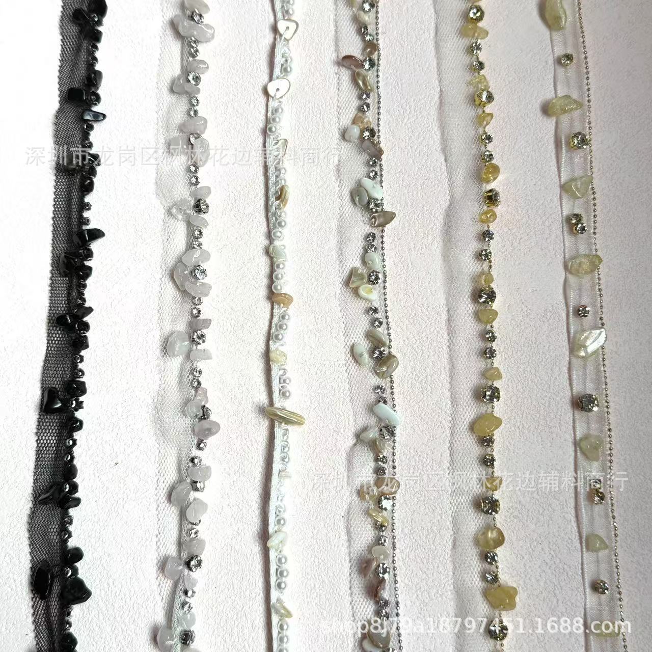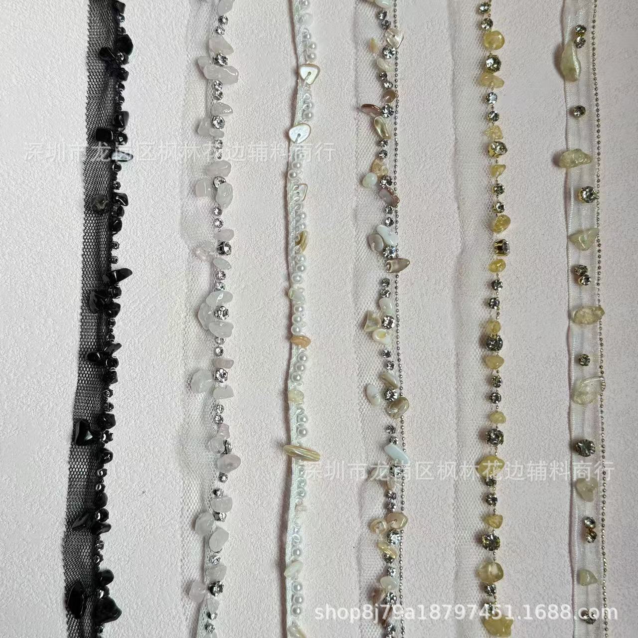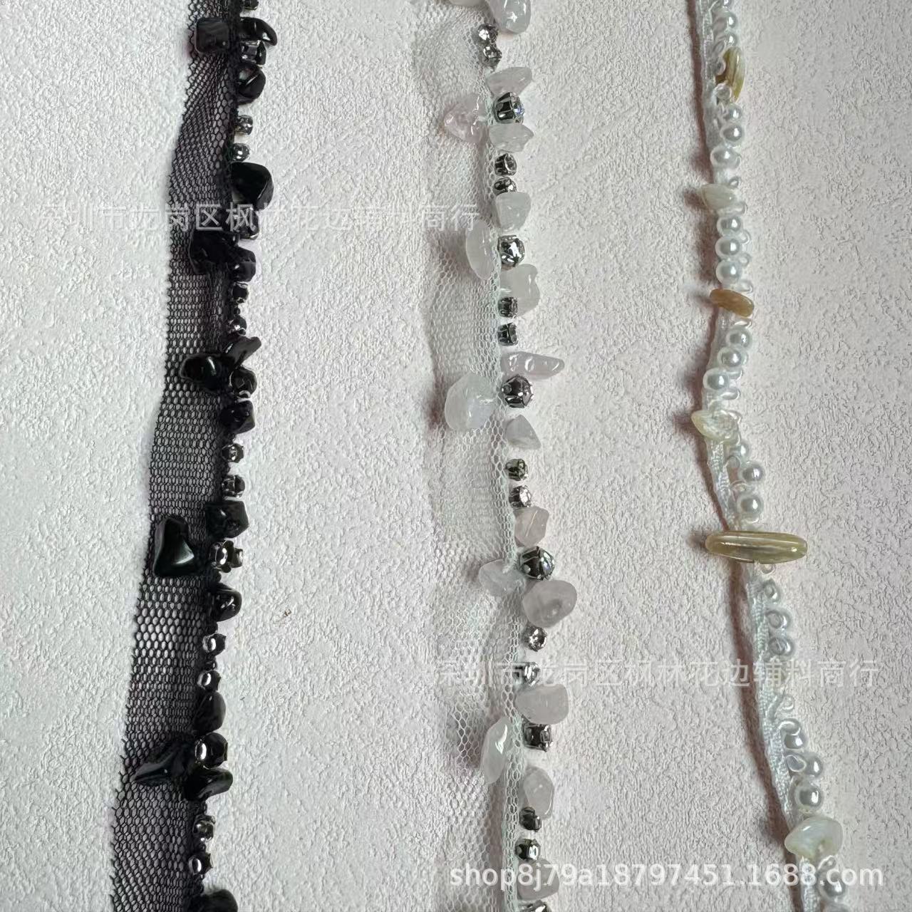 Primavera y Verano Nuevo Encaje de Piedra Decoración Malla Organza Hecho a Mano DIY Cuello Puño Clip Borde Pedrería Colgante