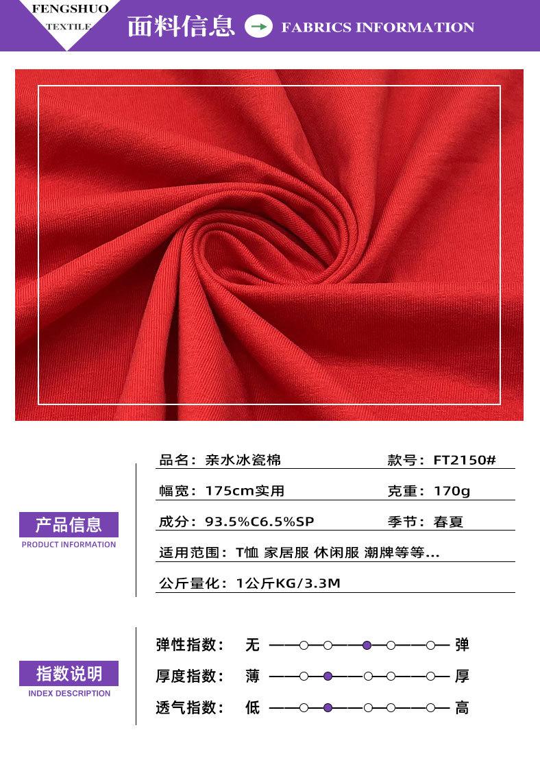 Tela de Algodón Ice Porcelain de Conteo 40S, Tejido de Punto Elástico de Secado Rápido y Fresco, Tela de Algodón de Manga Corta para Primavera y Verano