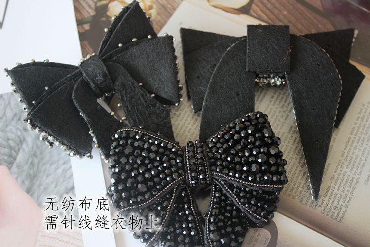 1 gun-colored bow cloth patch, 1 black bow cloth patch, 1 rhinestone bow cloth patch, No pins required. please...