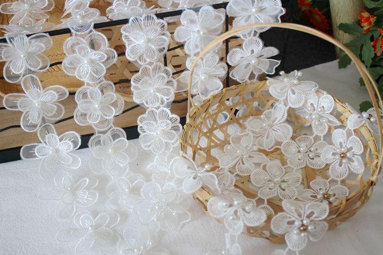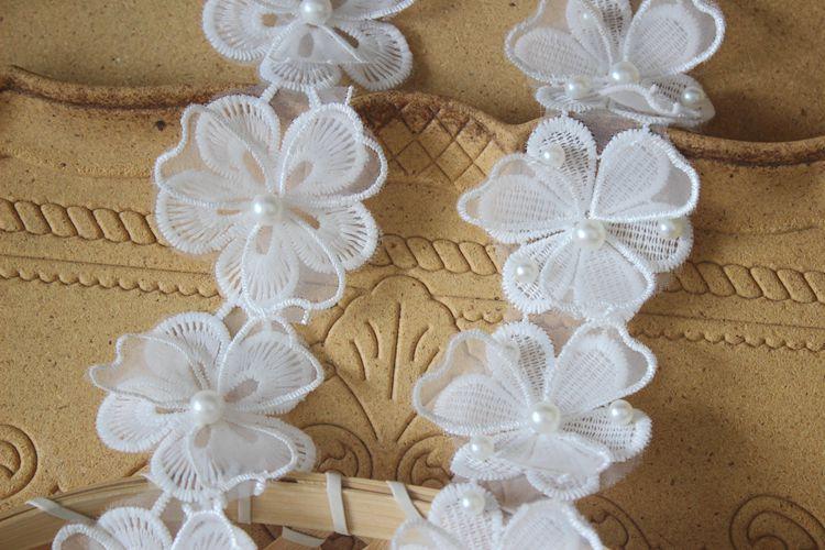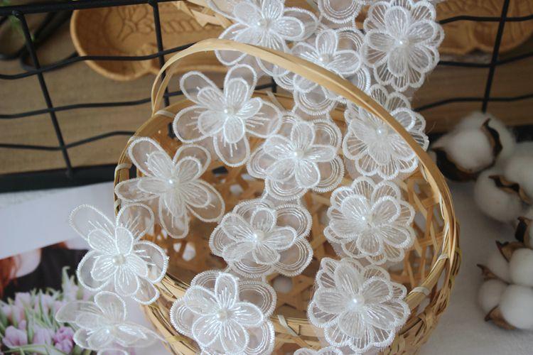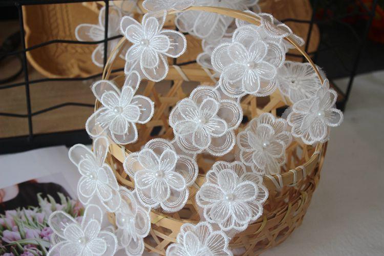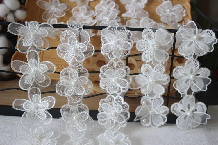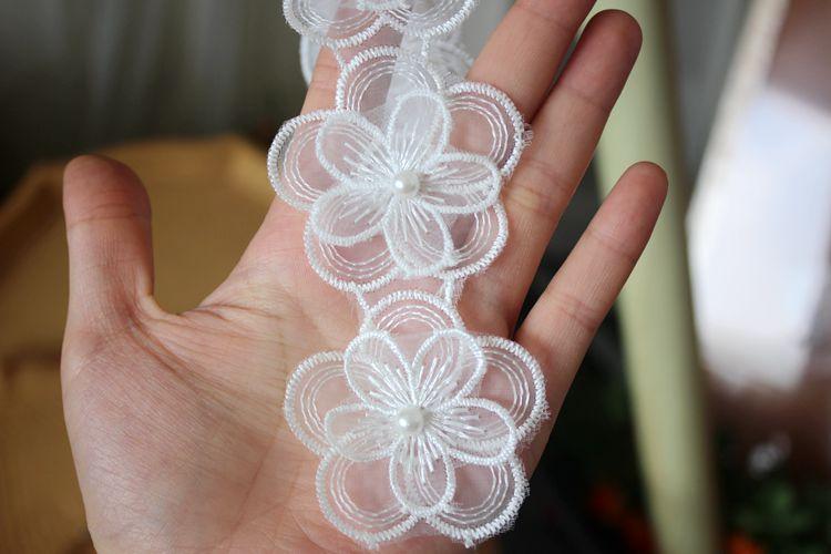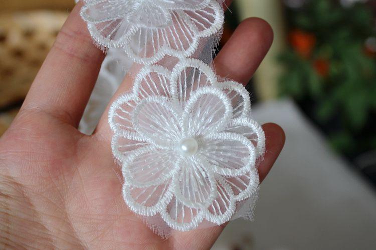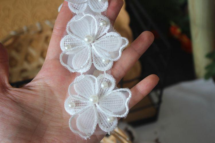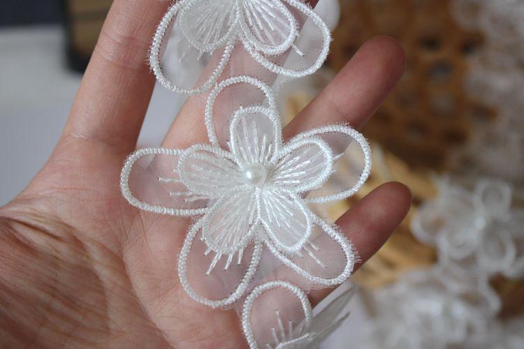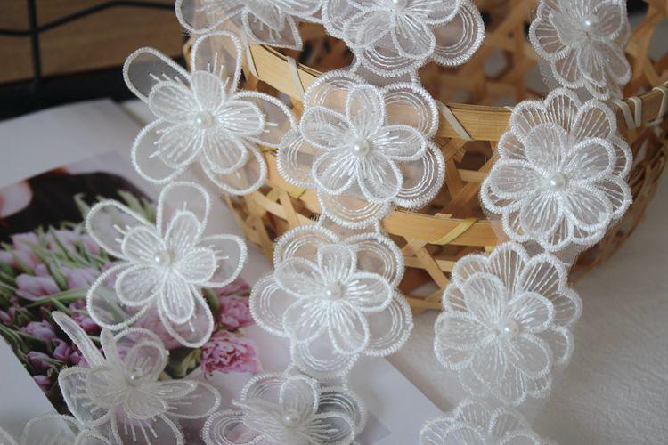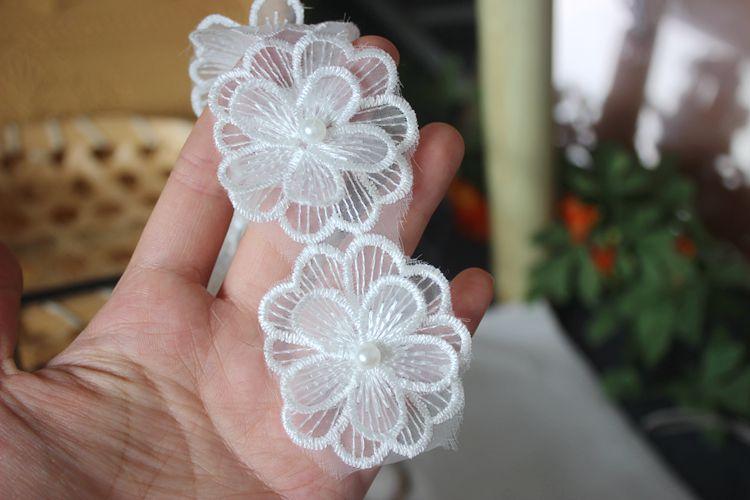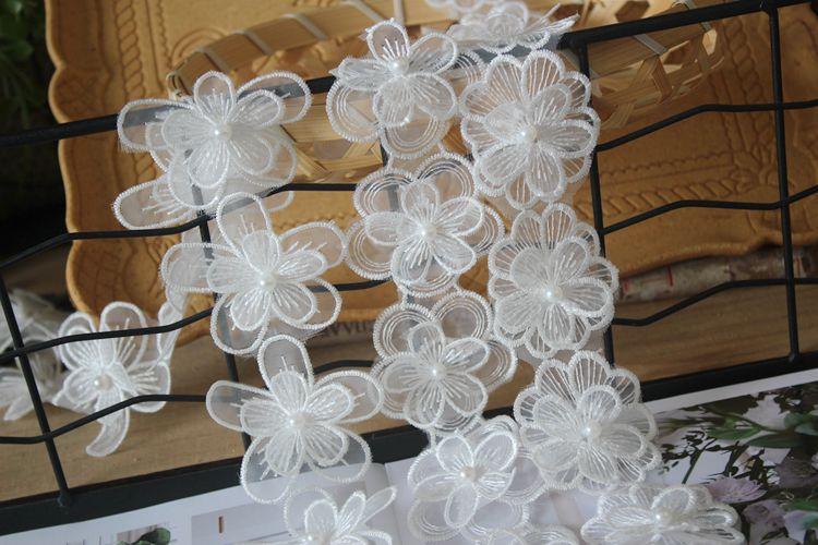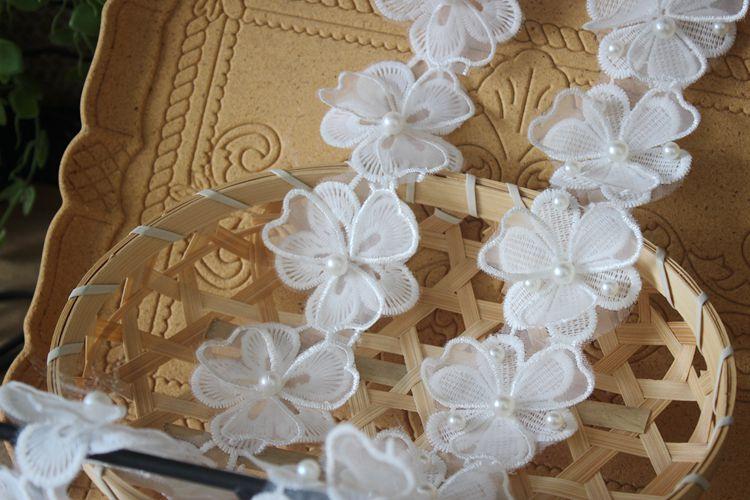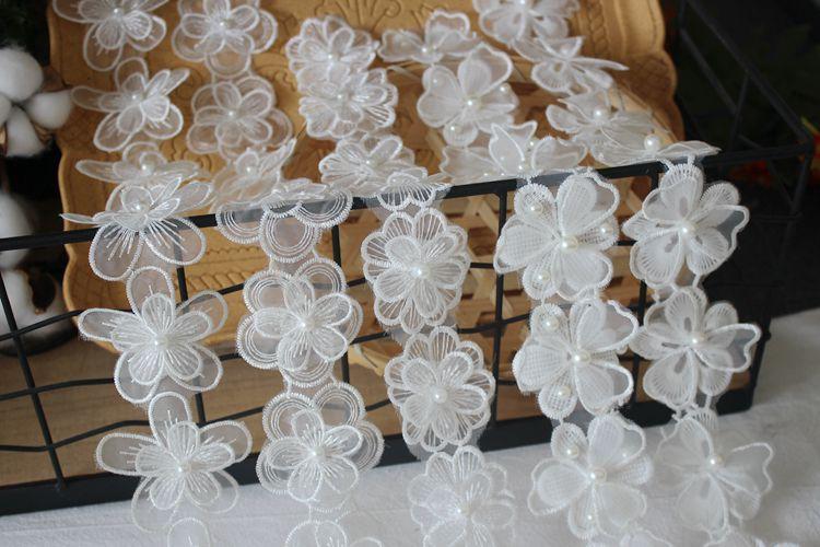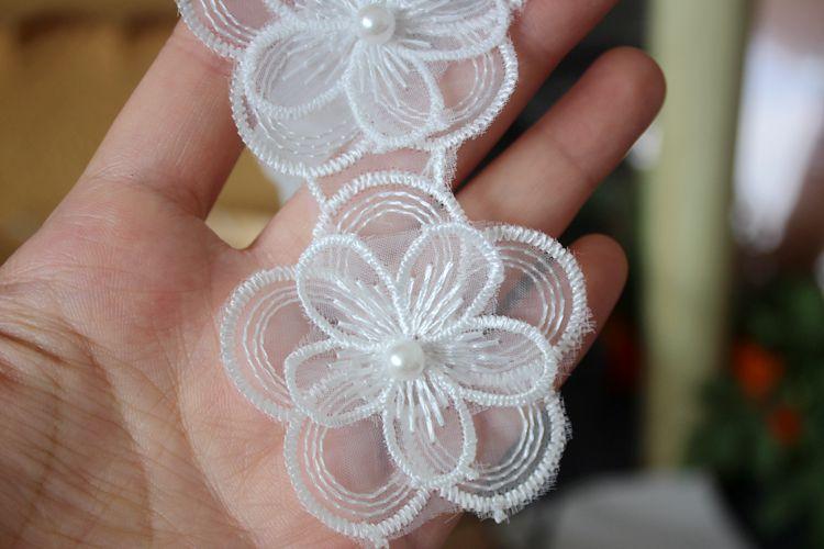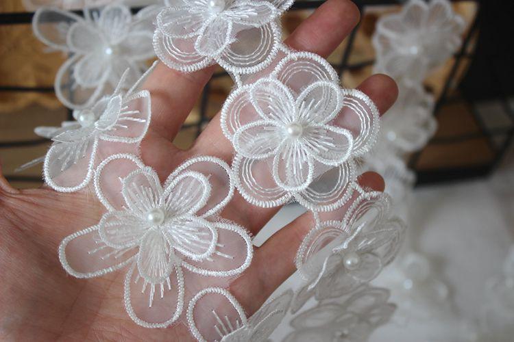 Ropa Tridimensional de Doble Capa Cosida a Mano Malla con Cuentas Bordado Encaje de Flores Velo de Boda Material para Parches de Agujeros