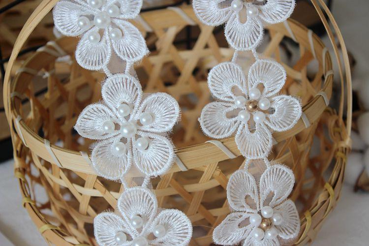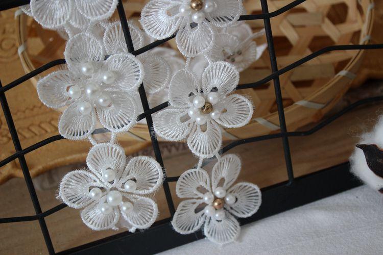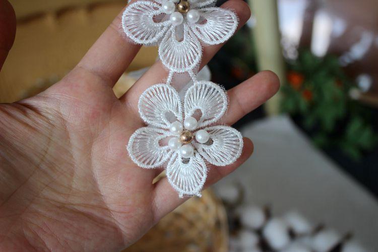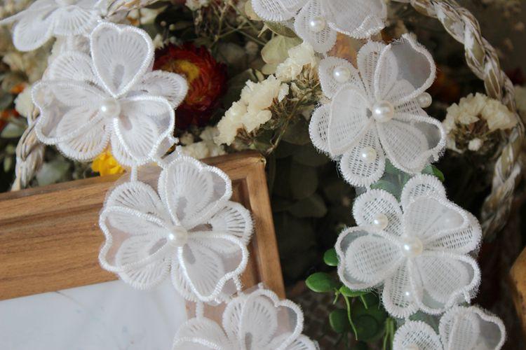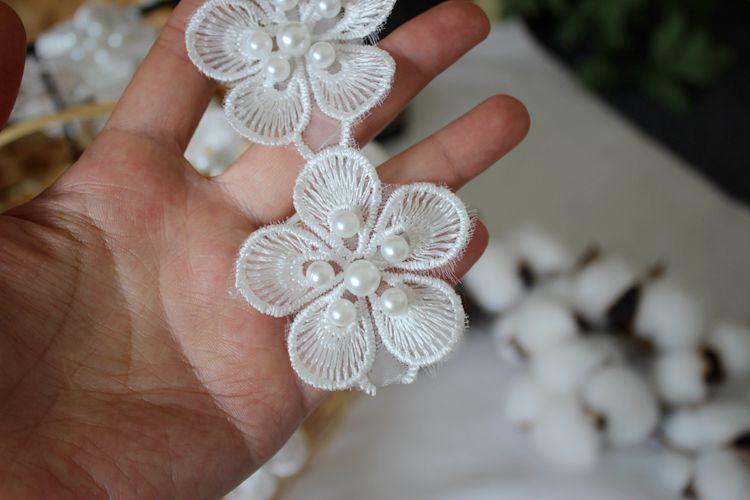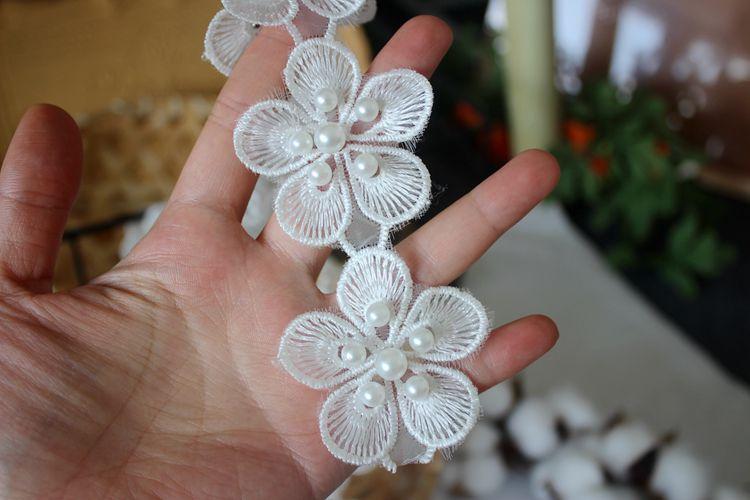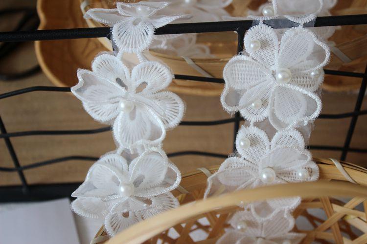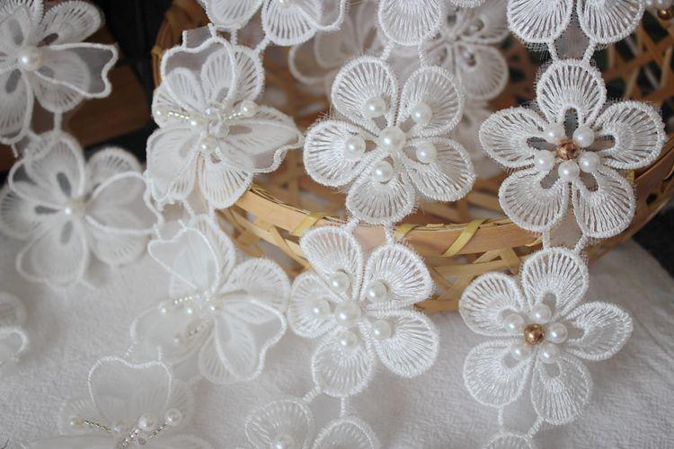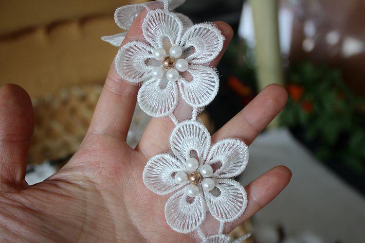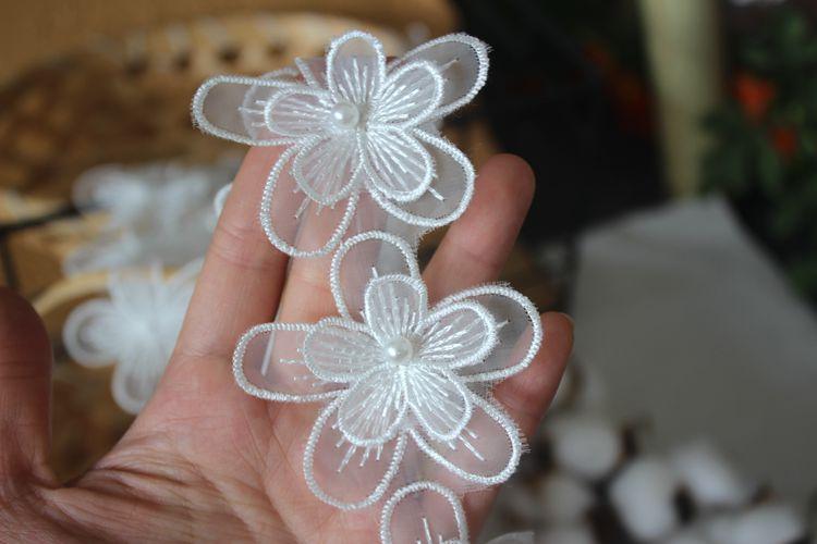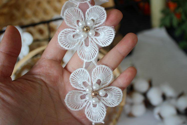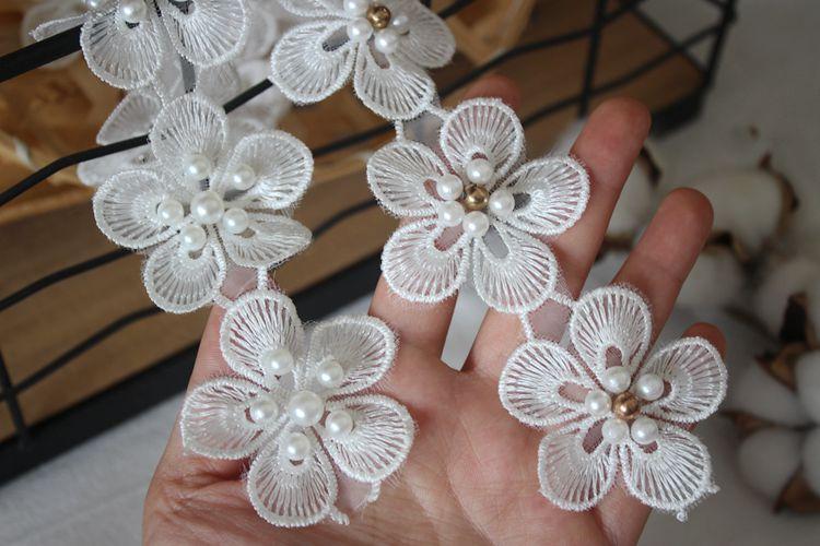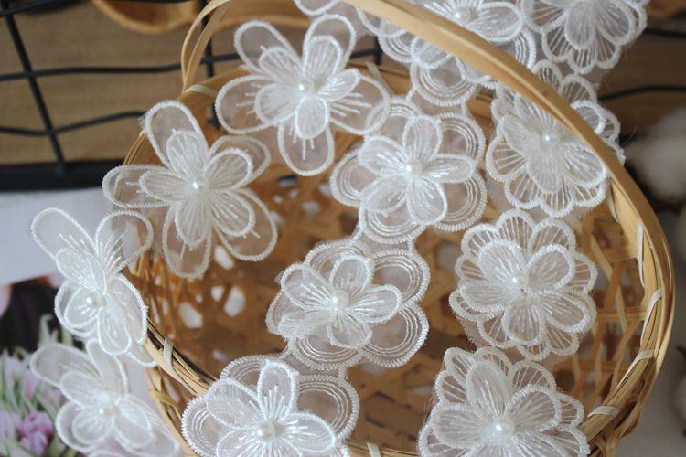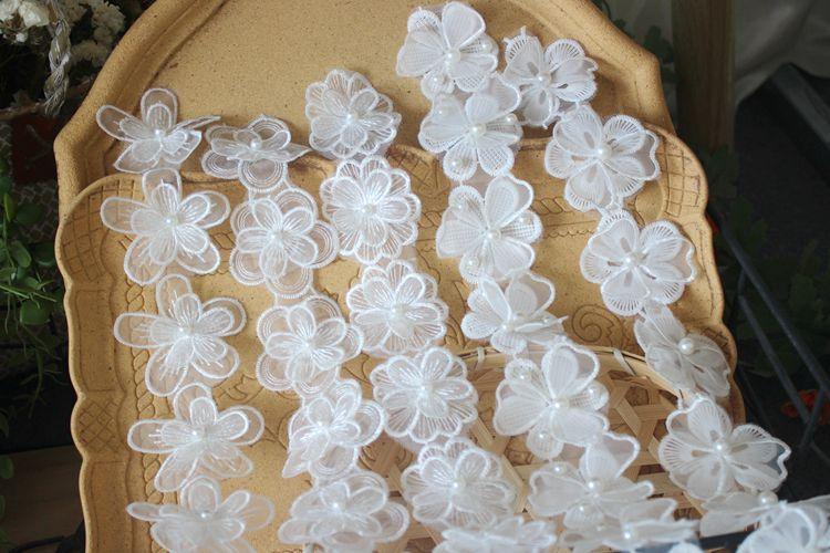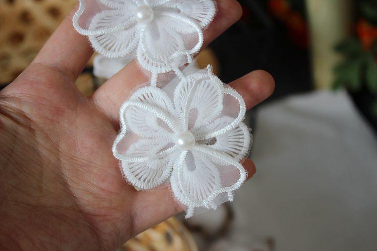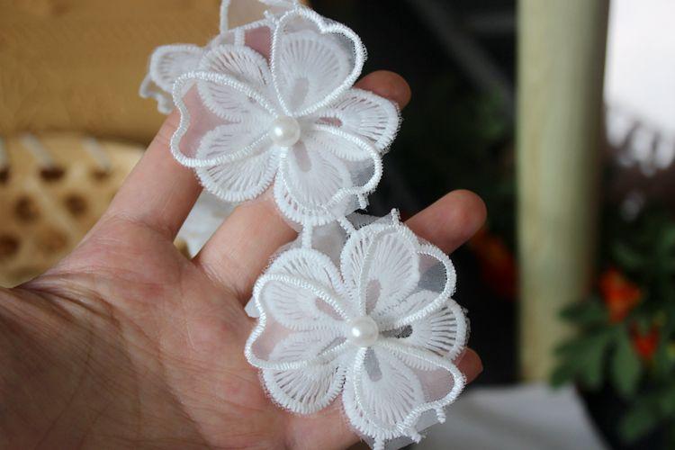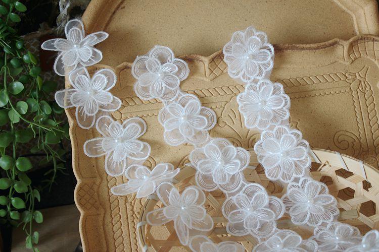 Ropa Tridimensional de Doble Capa Cosida a Mano Malla con Cuentas Bordado Encaje de Flores Velo de Boda Material para Parches de Agujeros