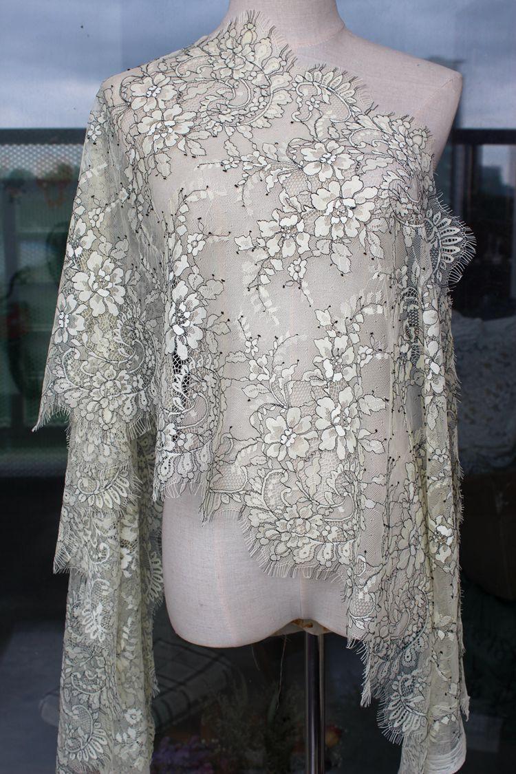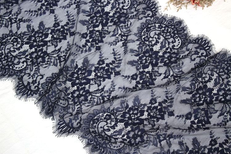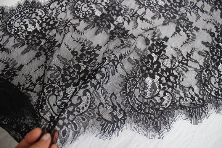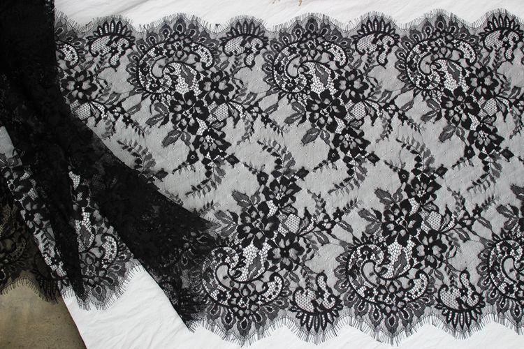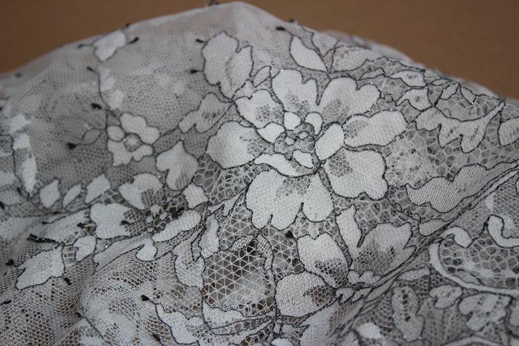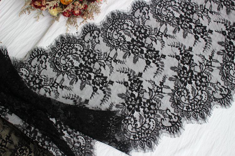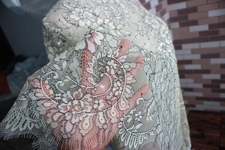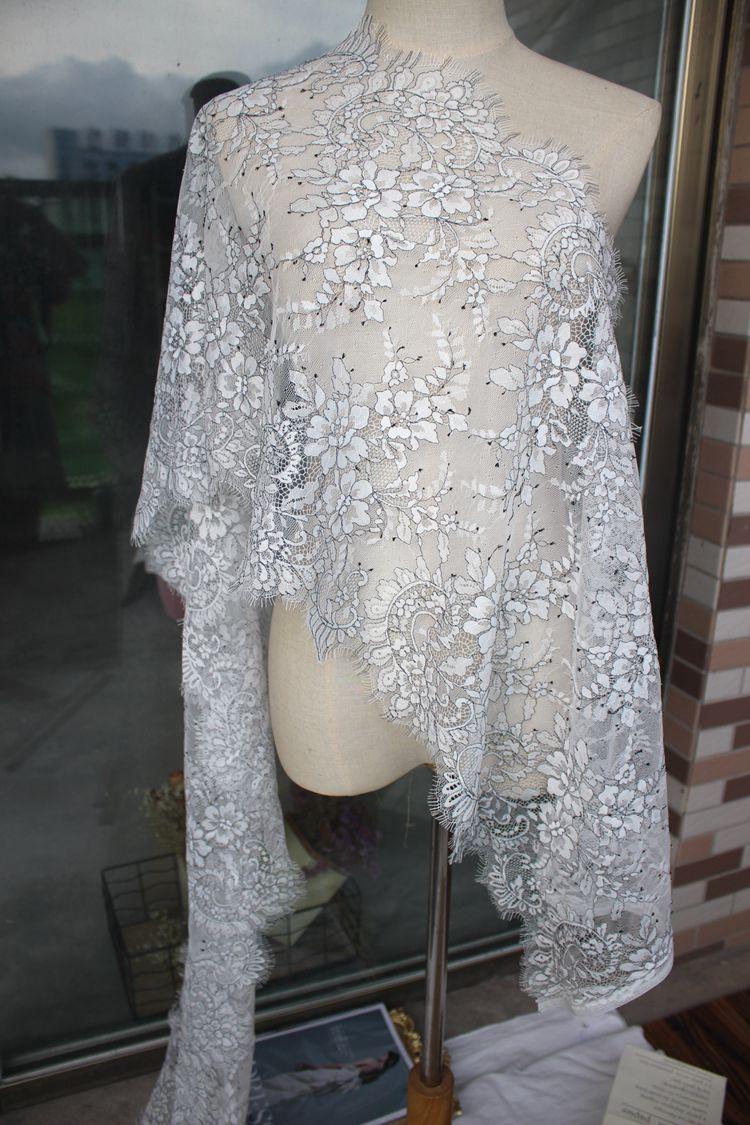 Encaje de Pestañas de Alta Gama Bicolor Gris Fondo Línea Negra DIY Ropa de Alta Gama Velo de Novia Falda Accesorios