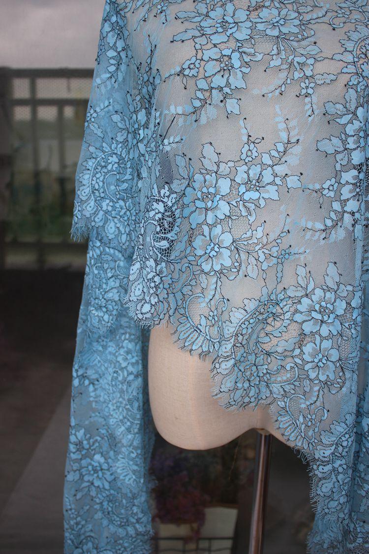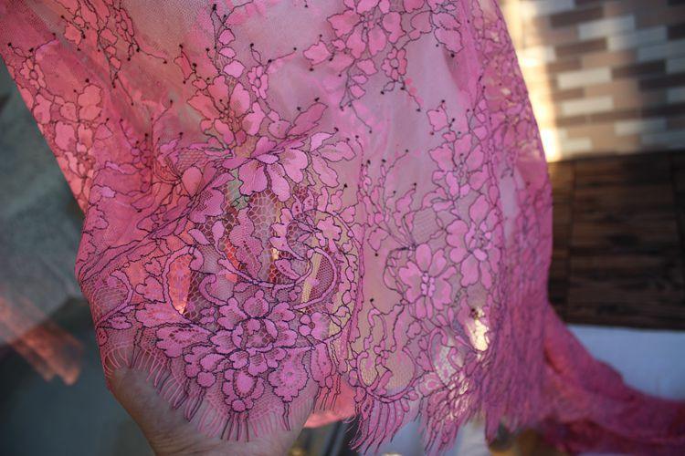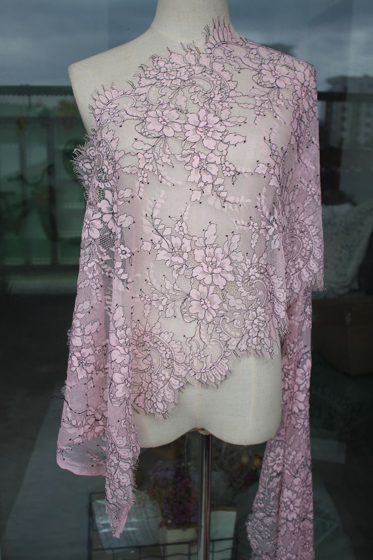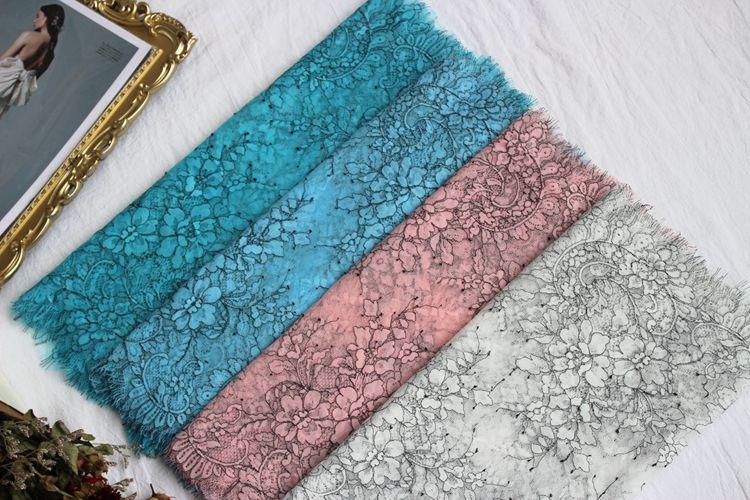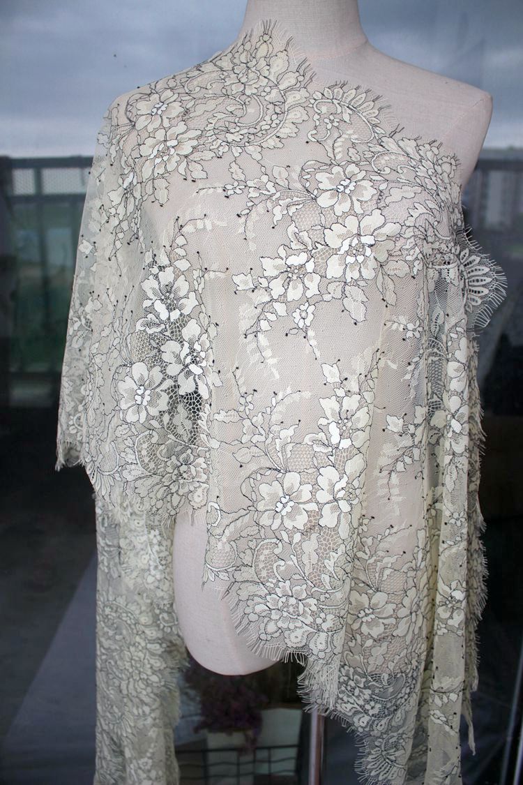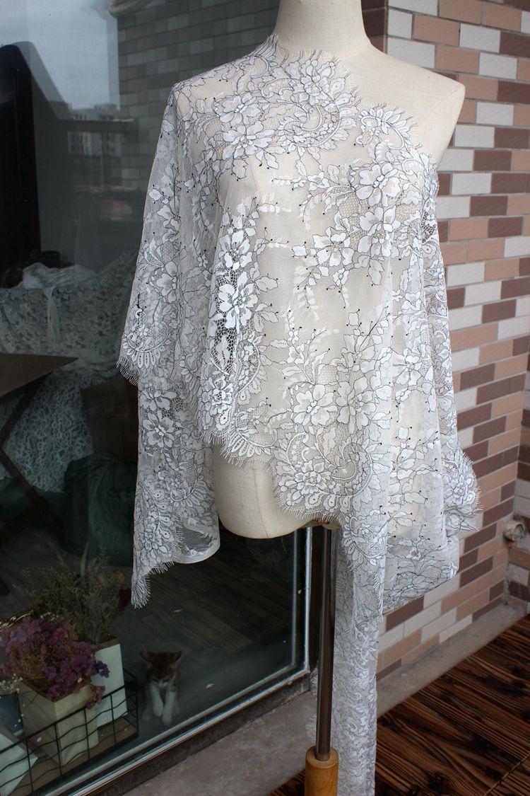 Encaje de Pestañas de Alta Gama Bicolor Gris Fondo Línea Negra DIY Ropa de Alta Gama Velo de Novia Falda Accesorios