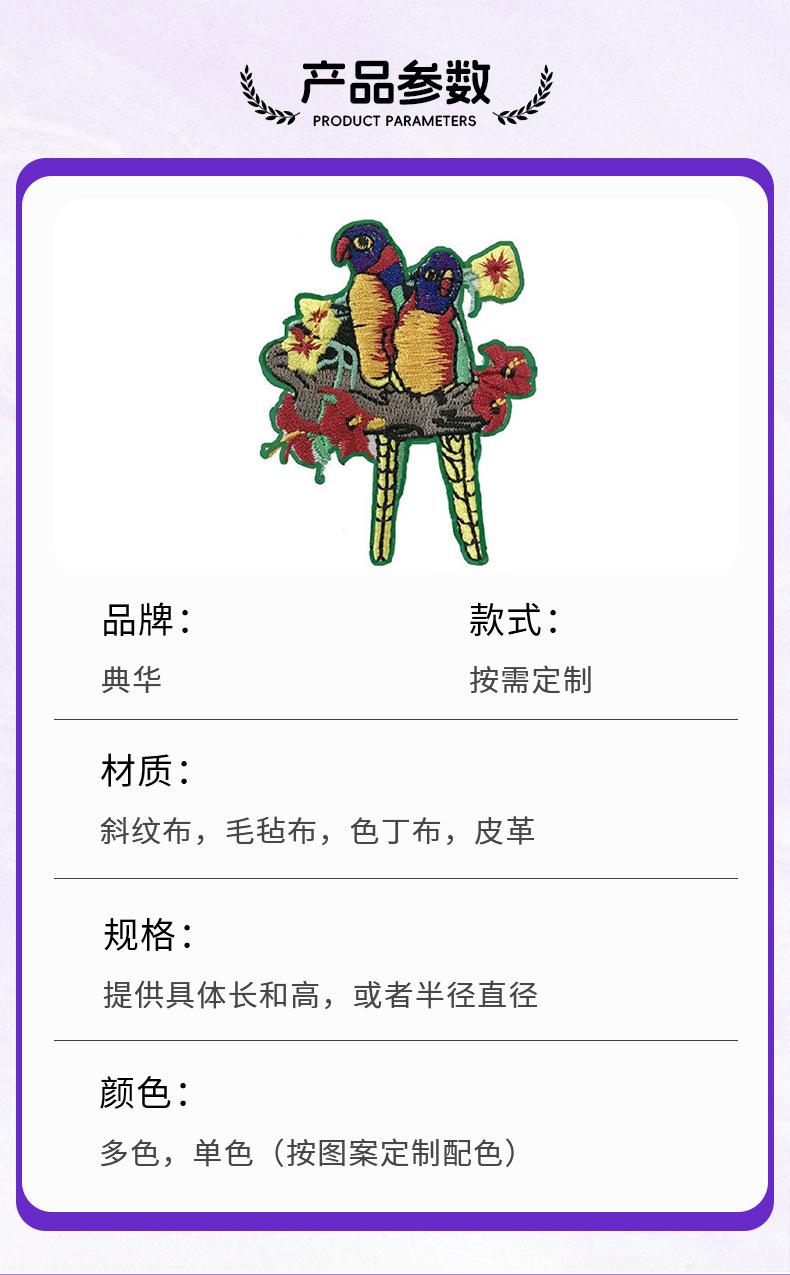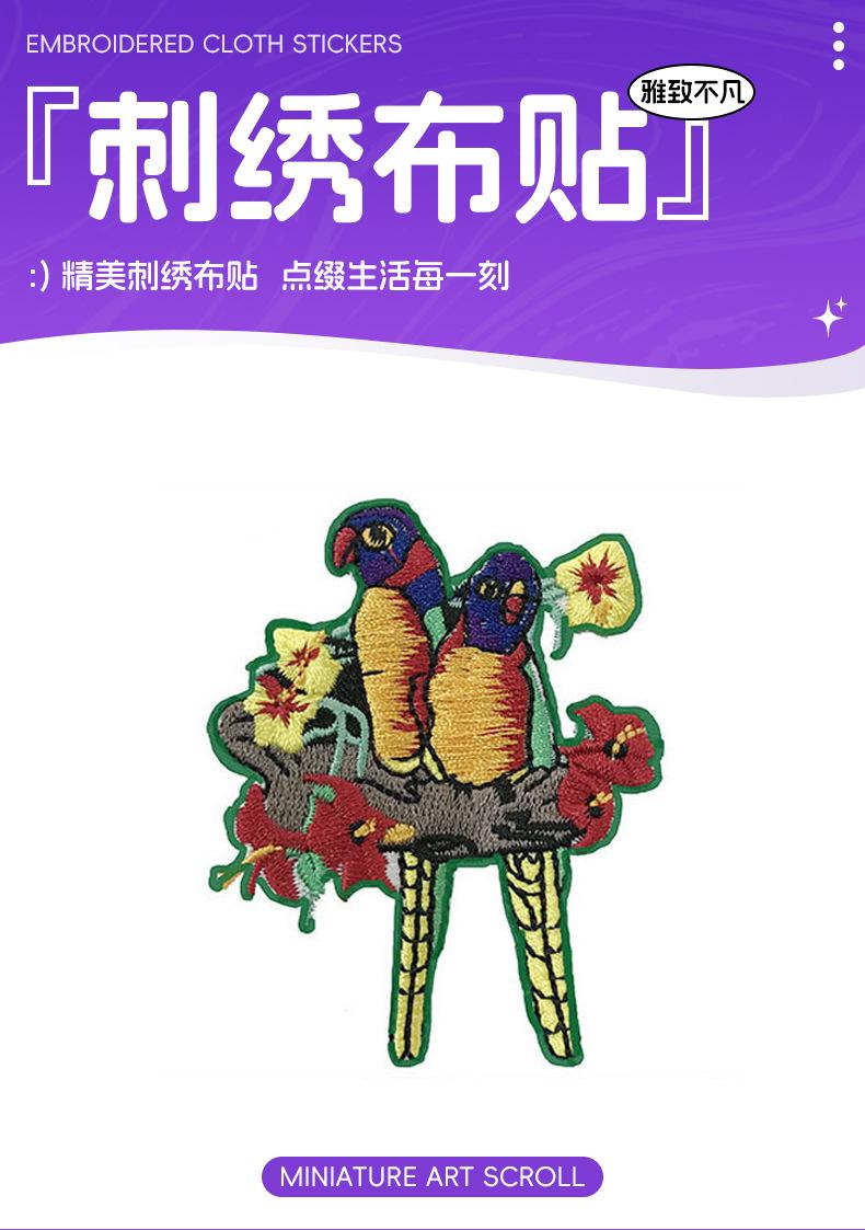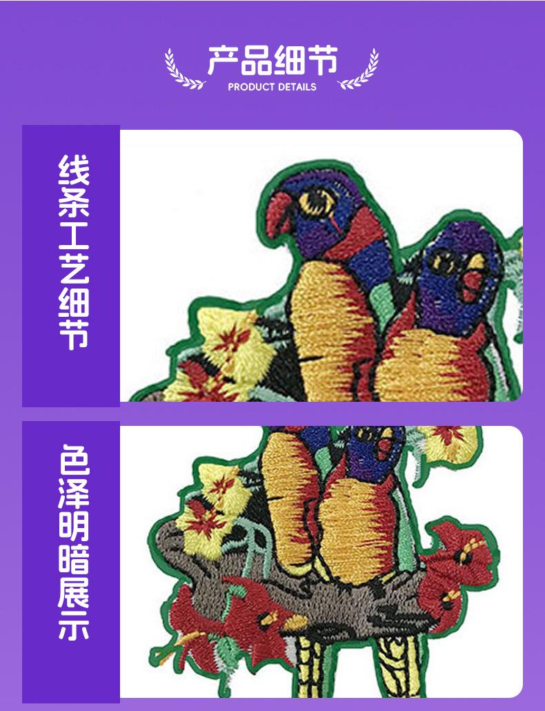 Parche Bordado Adhesivo de Ave Patrón de Moda Parche de Tela Bordada Suministro Directo de Fábrica Ropa Toalla Parche de Tela Bordada