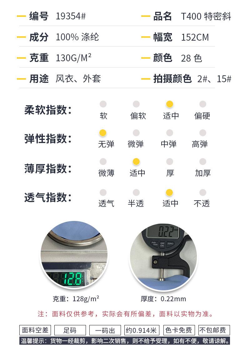 Tela para Gabardina T400 Sarga Extra Densa Impermeable Suave Crujiente Parka Ropa de Trabajo Chaqueta