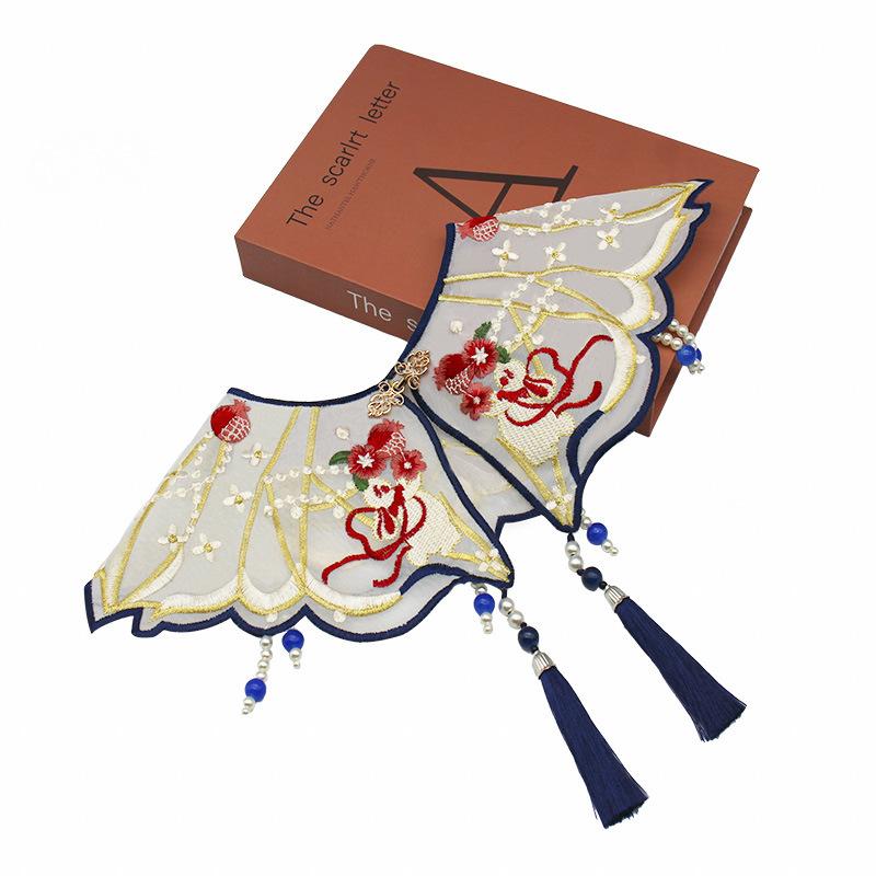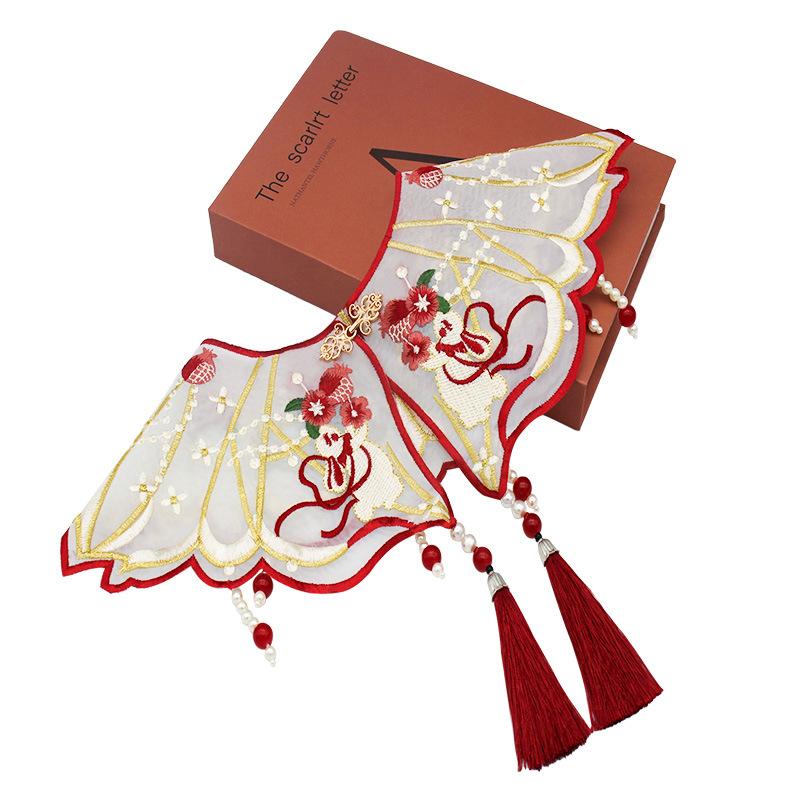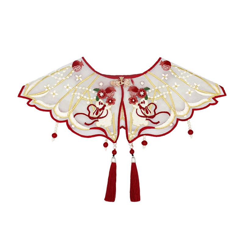 Organza estilo chino Noble bordado cuentas colgantes conejo cuello falso hombro nube chal combinable Hanfu