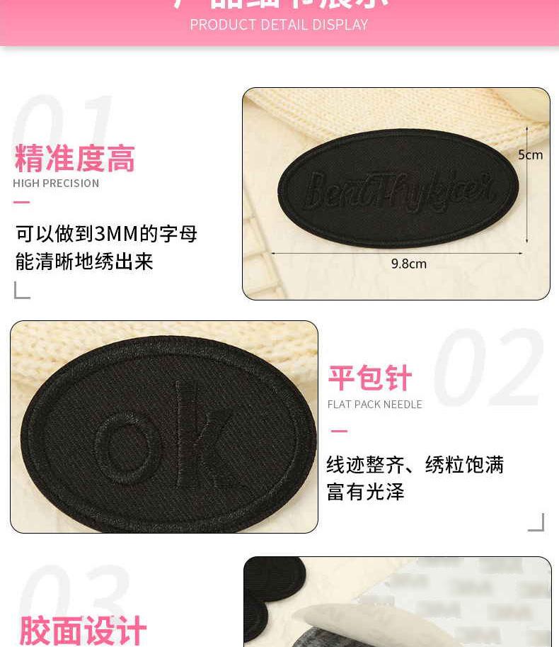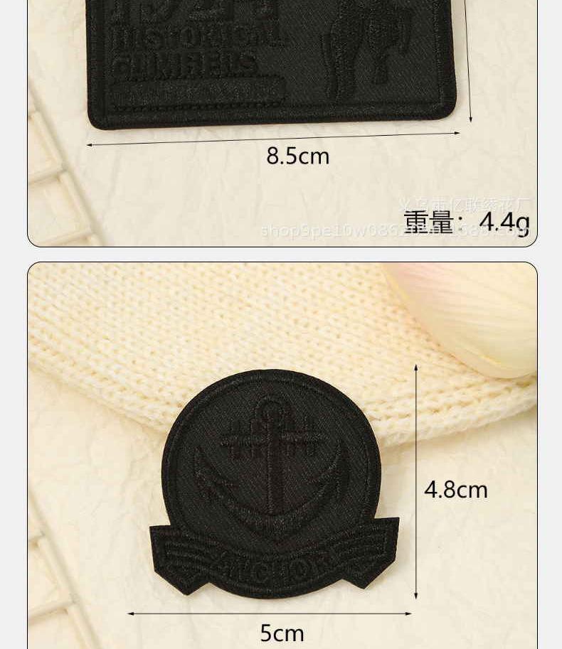 Parche nuevo para chamarra de plumón parche de tela bordado con letras negras ropa abrigo parche dañado parche de tela autoadhesivo
