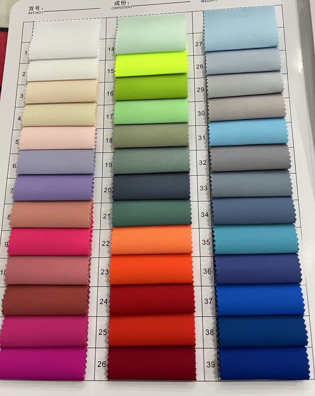 Fabric 1- 200m, Fabric 201- 2000m, Fabric 2000m or more, Color card fee
