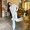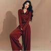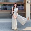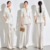 Rayas de Cáñamo Engrosadas 320g Pantalones de Pierna Ancha de Cáñamo Drapeado Vestido Traje Casual Tejido de Punto para Mujer al Mayoreo