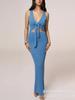 2025 Nuevo Vestido Largo de Verano Elegante de Moda Transfronteriza Europea y Americana de Color Sólido con Cuello en V, Encaje en el Ombligo y sin Mangas para Mujer