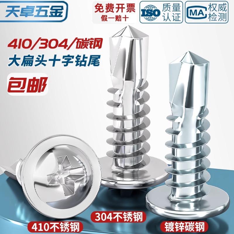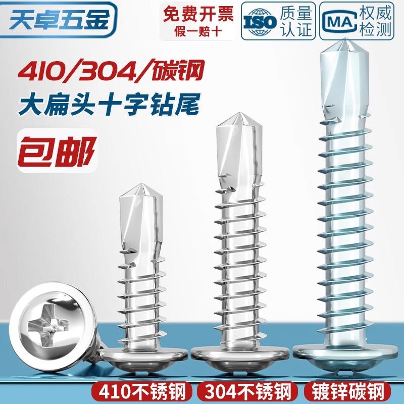 410/304/Acero al Carbono Acero Inoxidable Cabeza Grande Plana Cruz Acolchada Tornillos de Cola de Taladro Galvanizados Autorroscantes Autoperforantes Tornillos de Cola de Milano