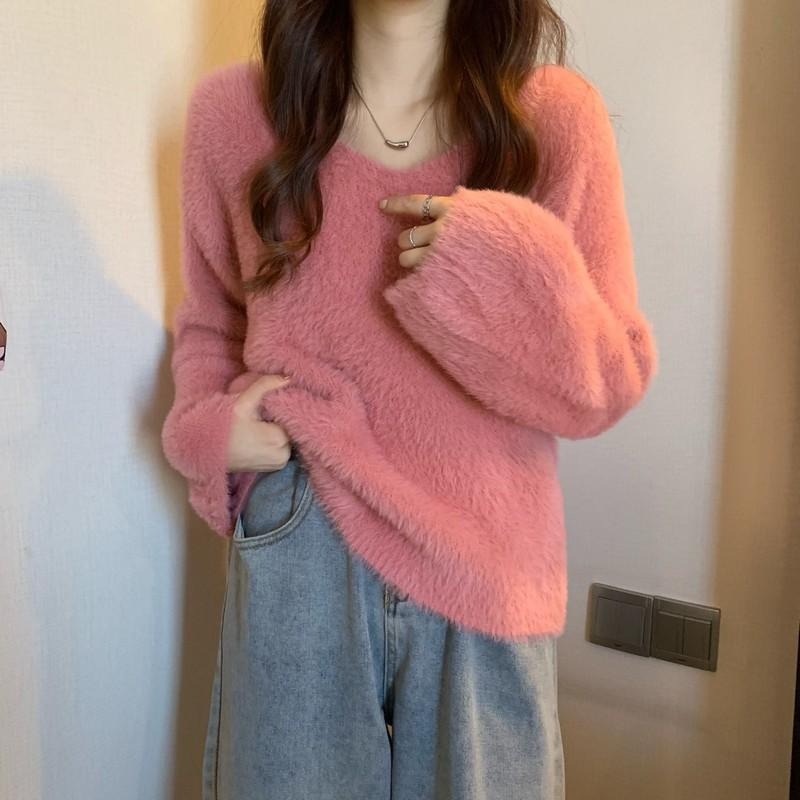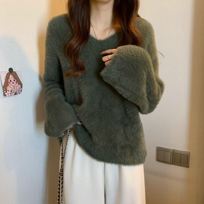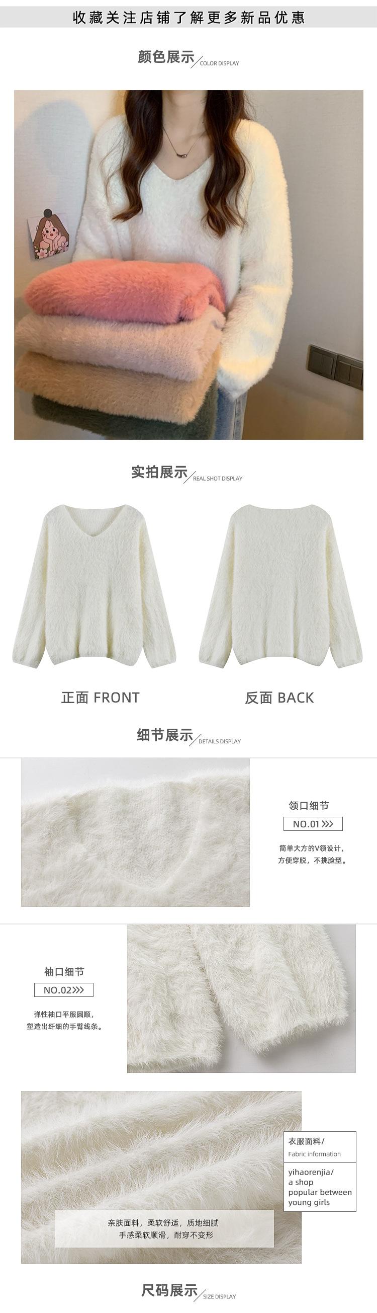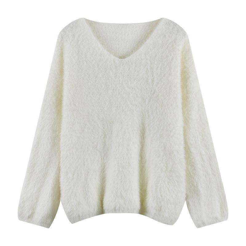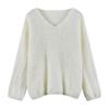 Suéter Suave y Ceroso para Mujer Otoño e Invierno Blanco Estilo Relajado Suéter de Cuello en V de Alta Calidad Top Holgado de Manga Larga