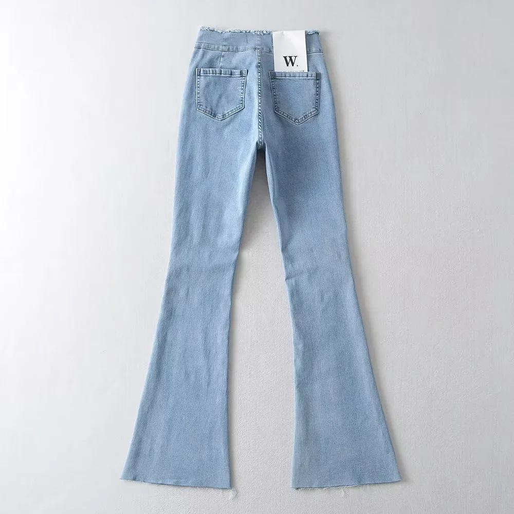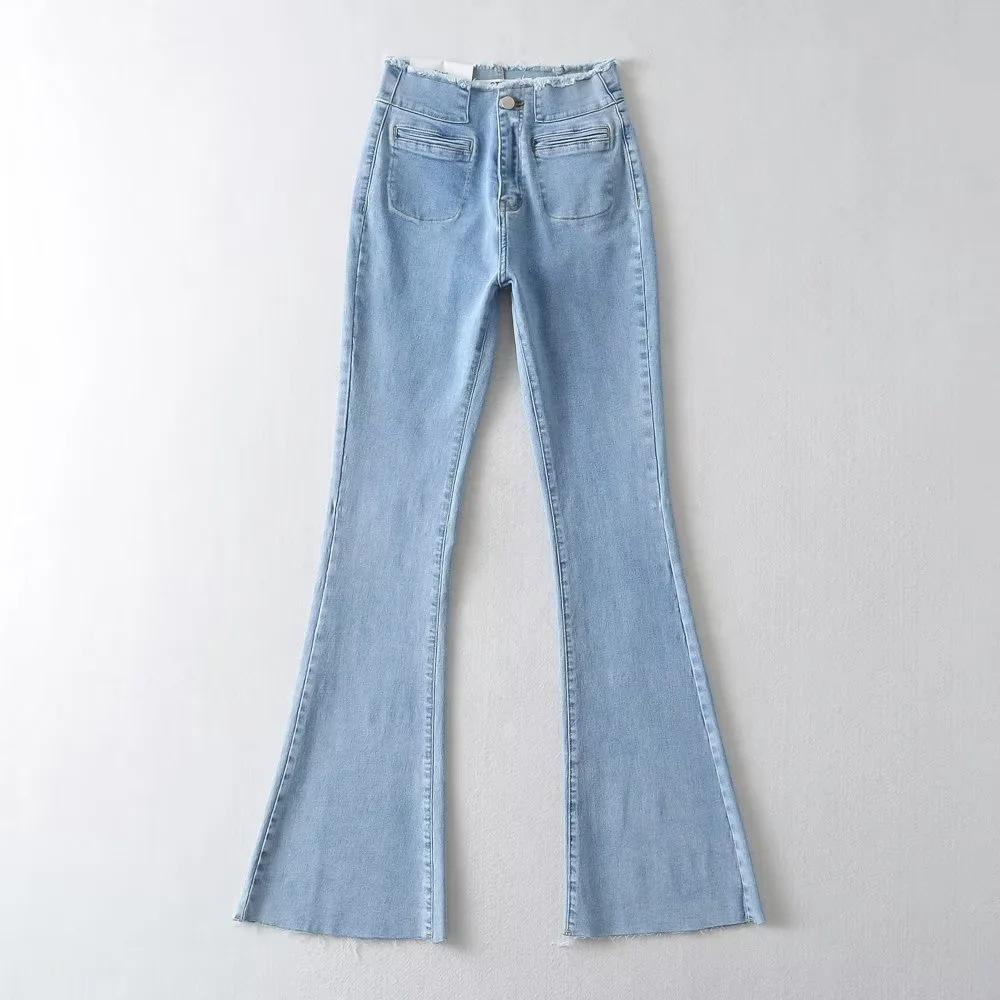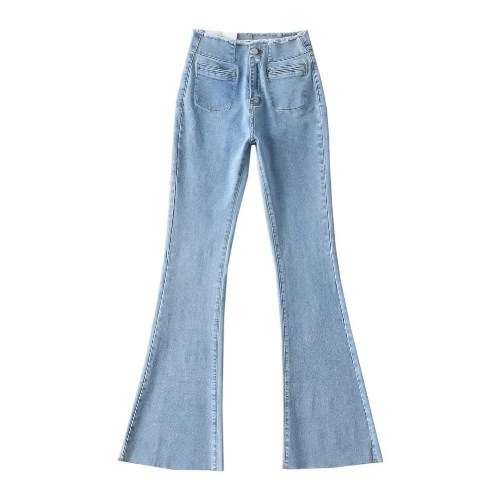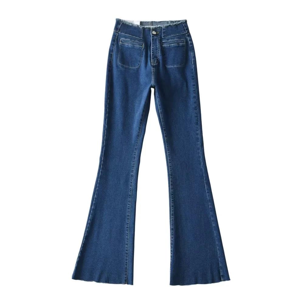 Pantalones de mezclilla ajustados de cintura alta para mujer, estilo europeo y americano, con doble bolsillo y cintura de piel, acampanados y micro, moda femenina.