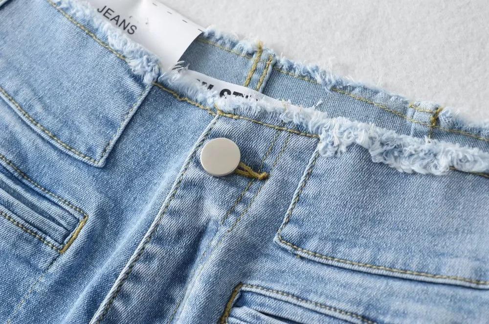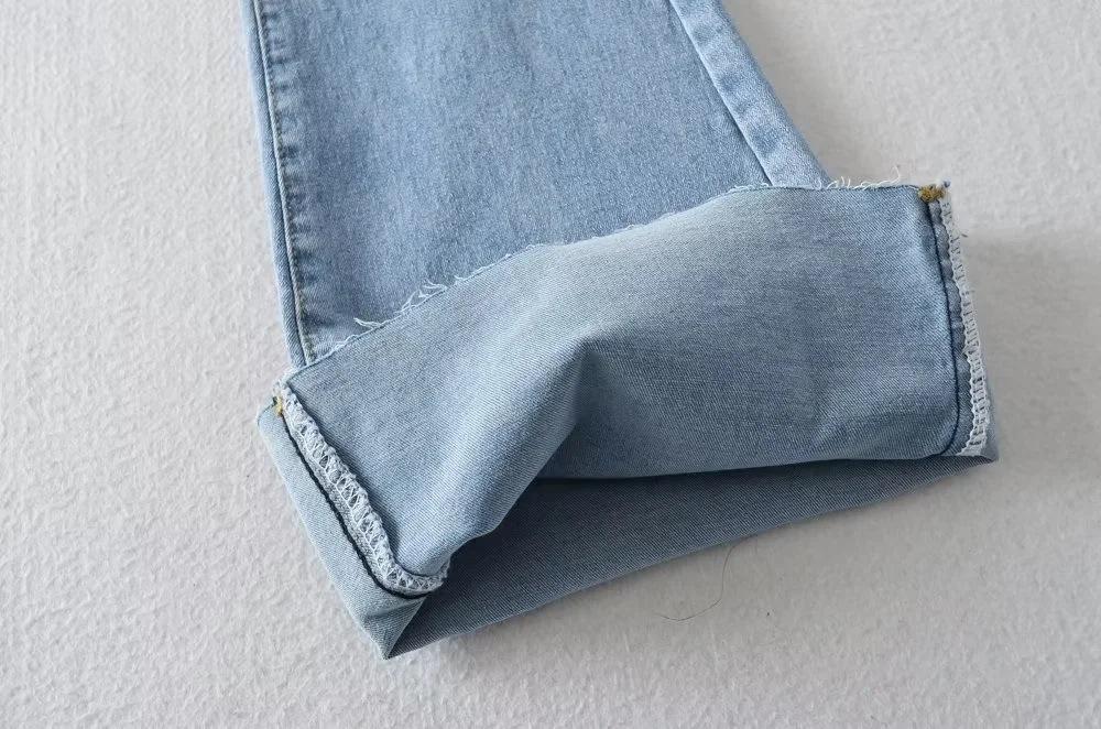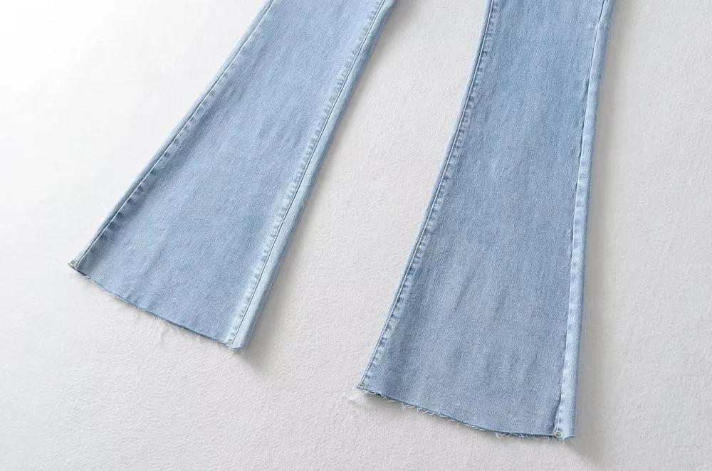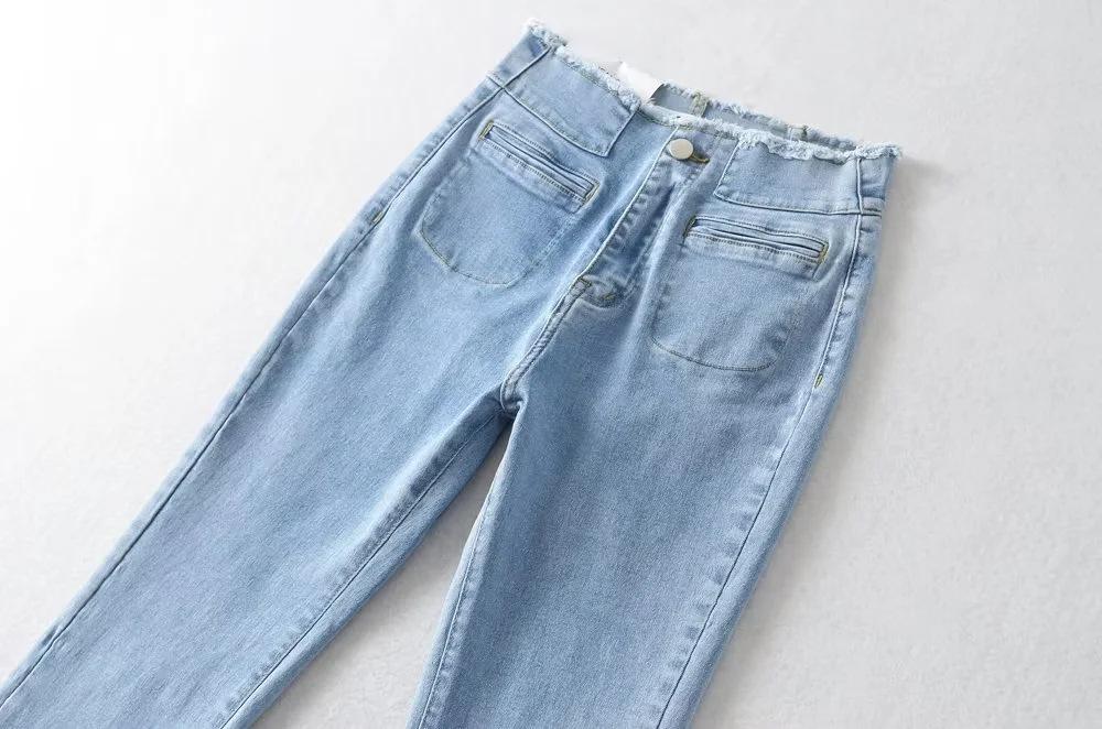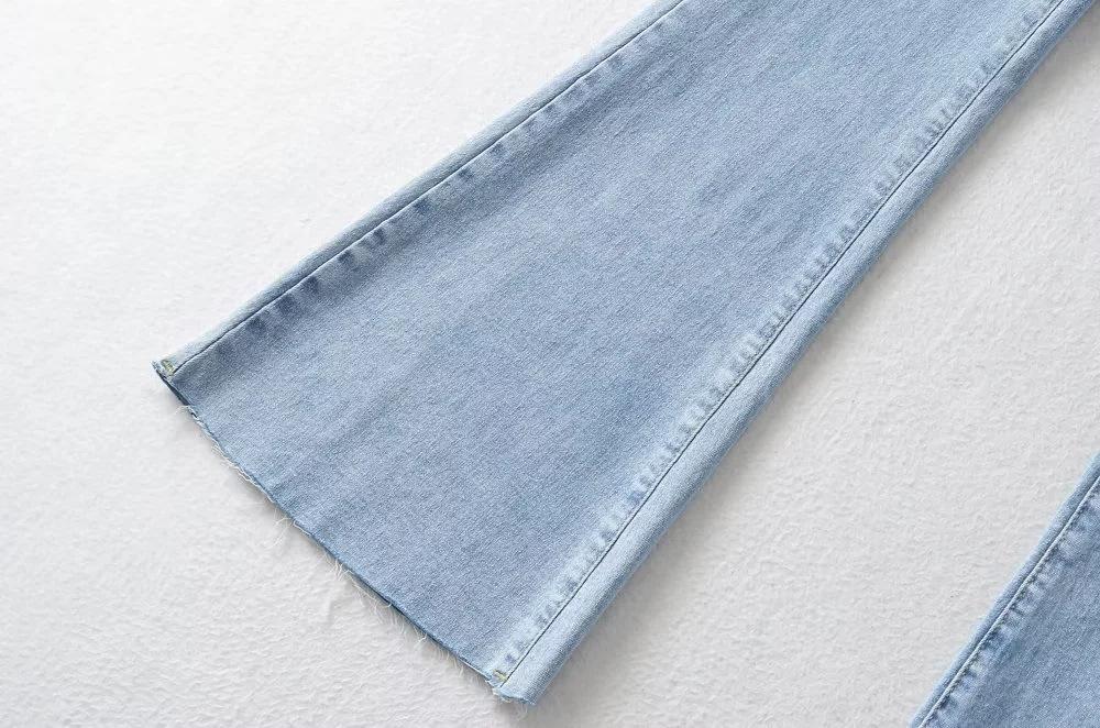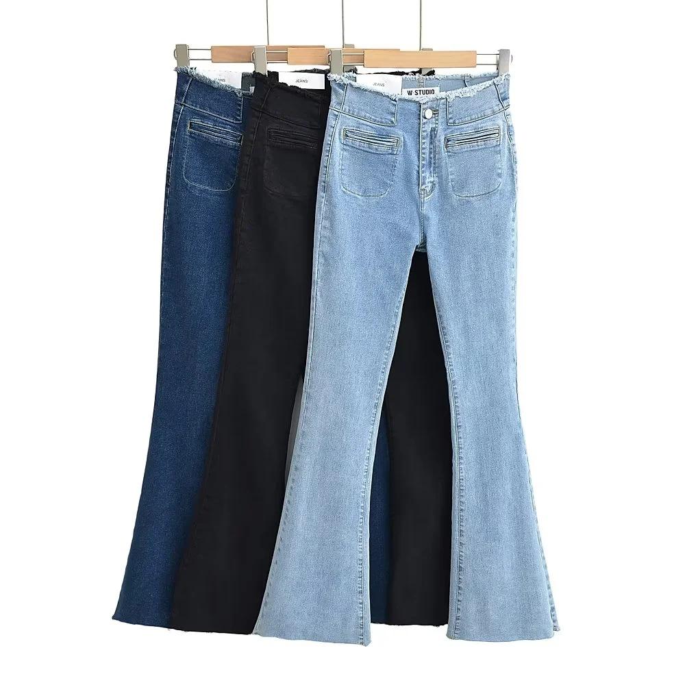 Pantalones de mezclilla ajustados de cintura alta para mujer, estilo europeo y americano, con doble bolsillo y cintura de piel, acampanados y micro, moda femenina.