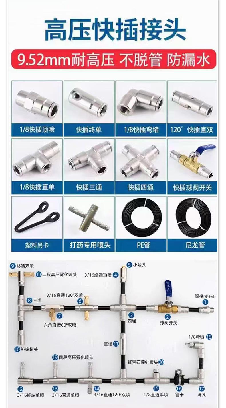Sistema de atomización de alta presión para refrigeración de invernadero, sistema de niebla para parque de huerto, sistema inteligente de micro niebla por aspersión de alta presión