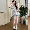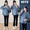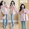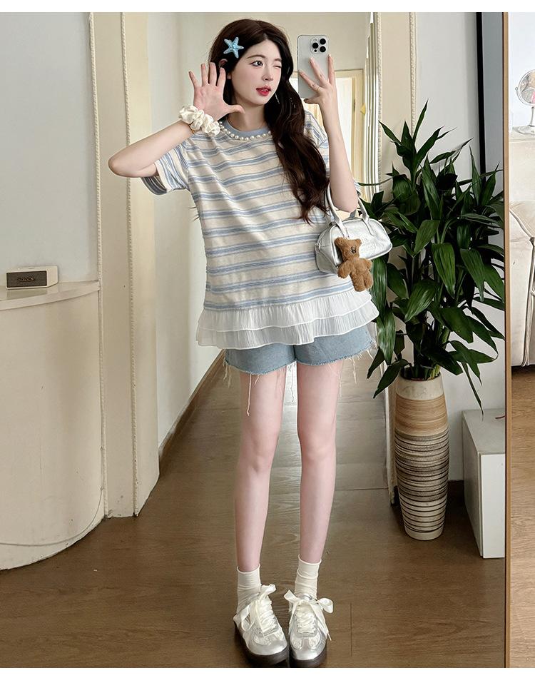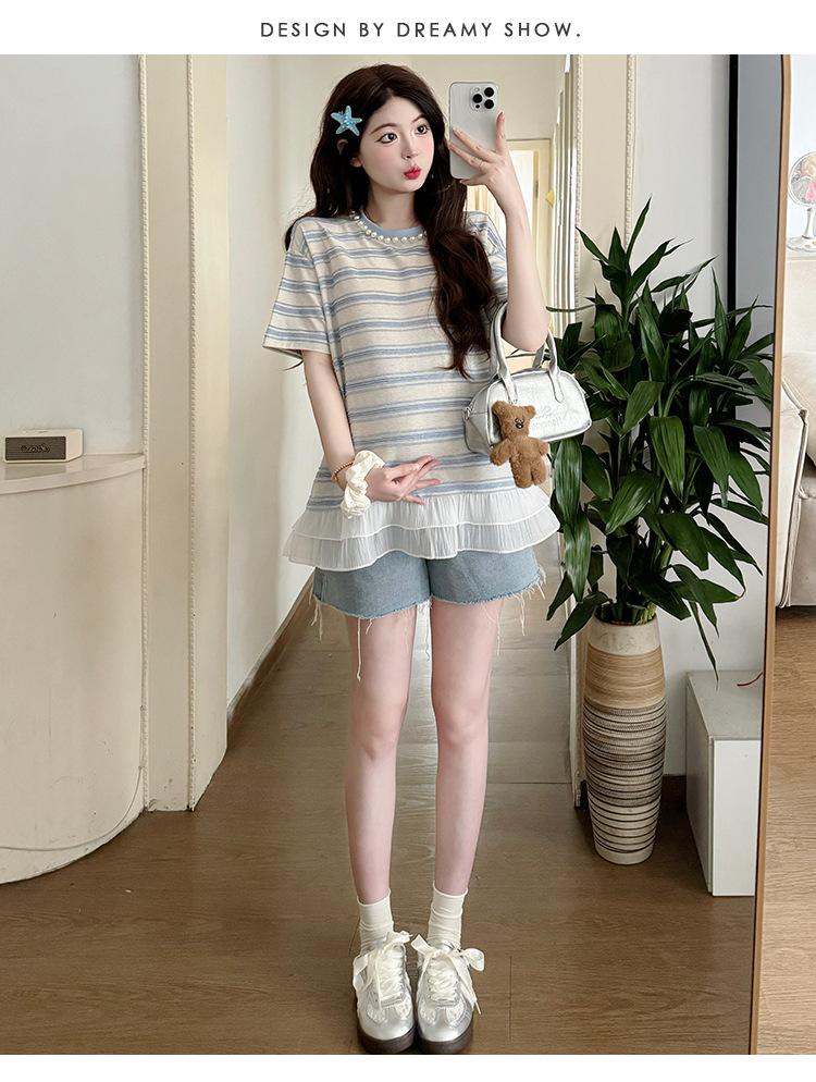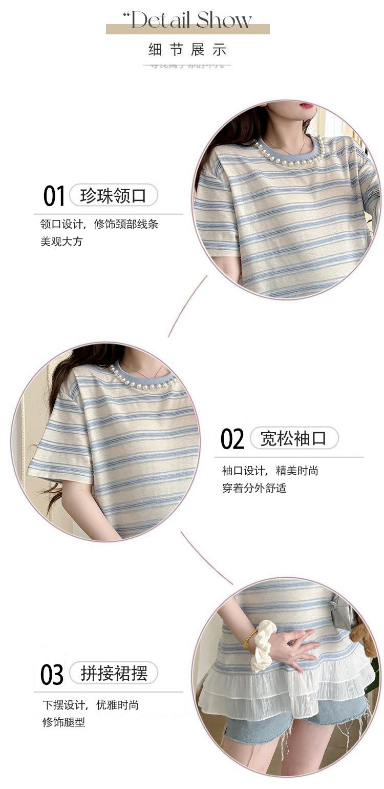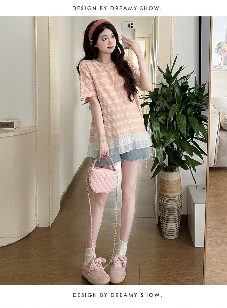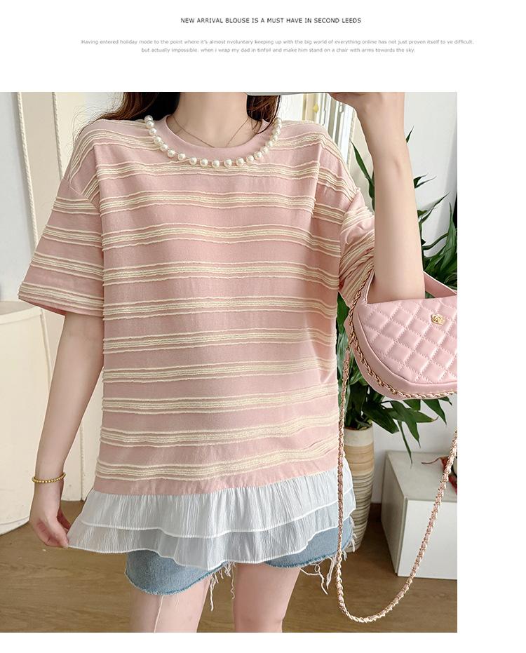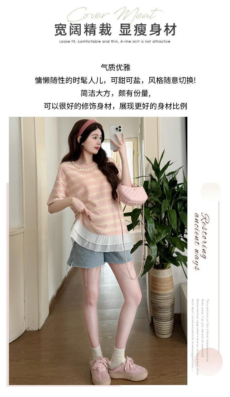 En stock 2025 Verano Nuevas Mujeres Embarazadas T Coreano Dulce Rayado Costura Gasa Suelta Mujeres Embarazadas Top