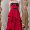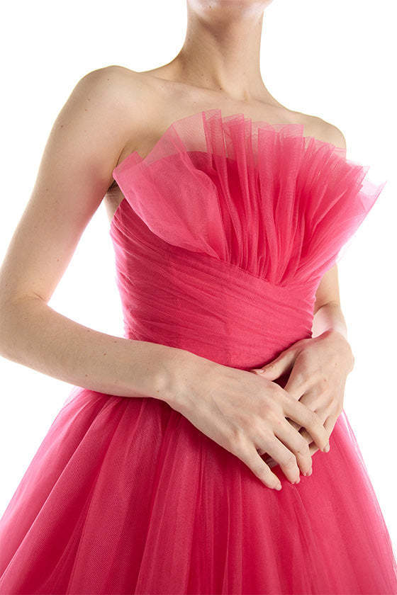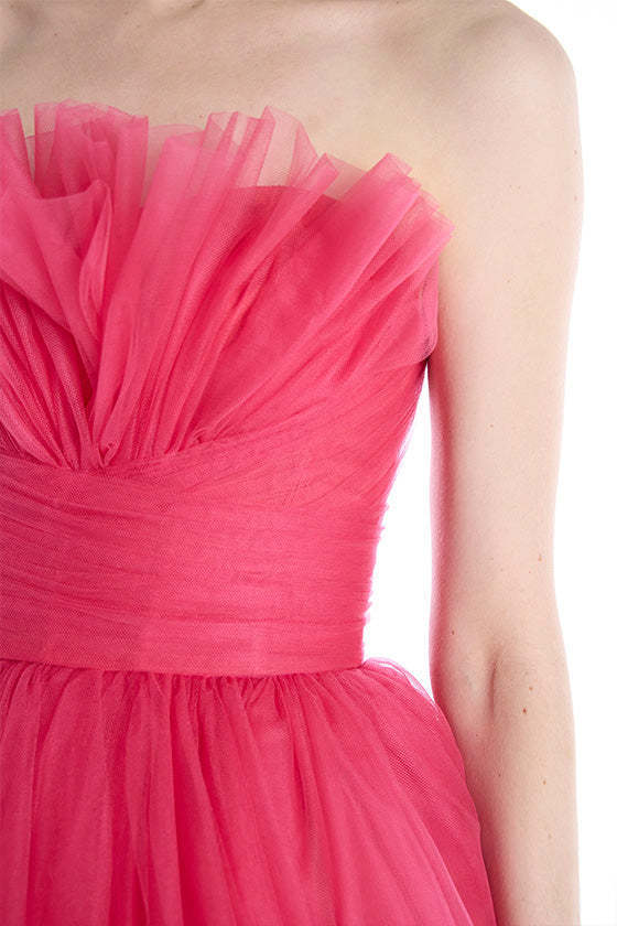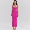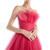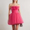 Vestido de Noche de Fiesta Europeo y Americano Transfronterizo 2025 Nuevo Vestido de Princesa sin Espalda para Fiesta Vestido Rosa de Malla con Top de Tubo para Mujer