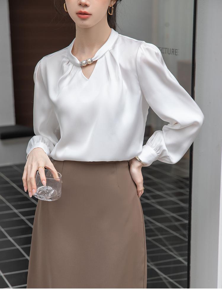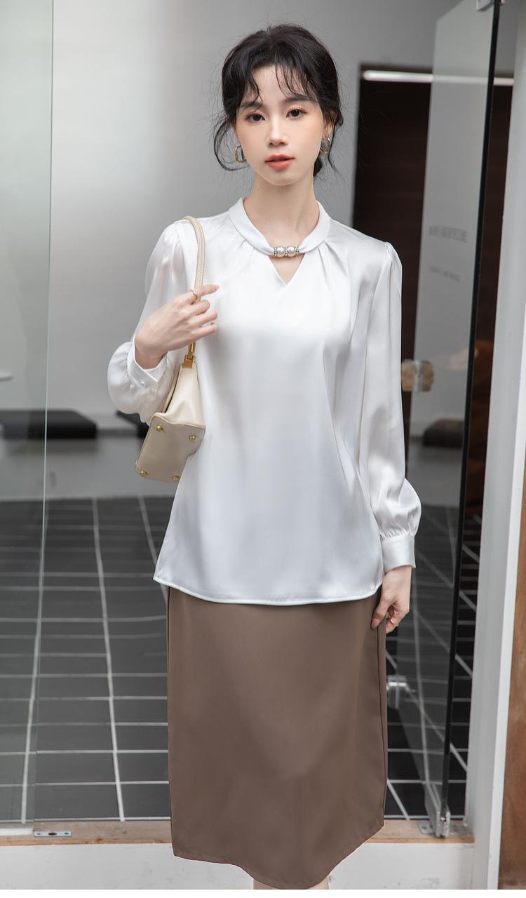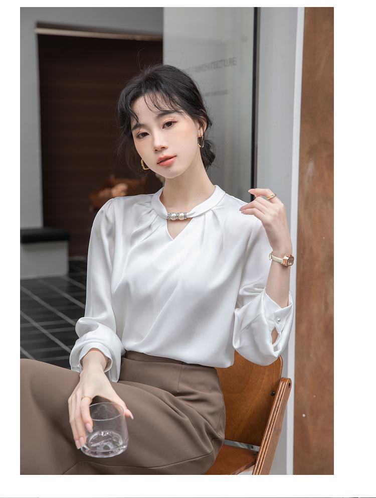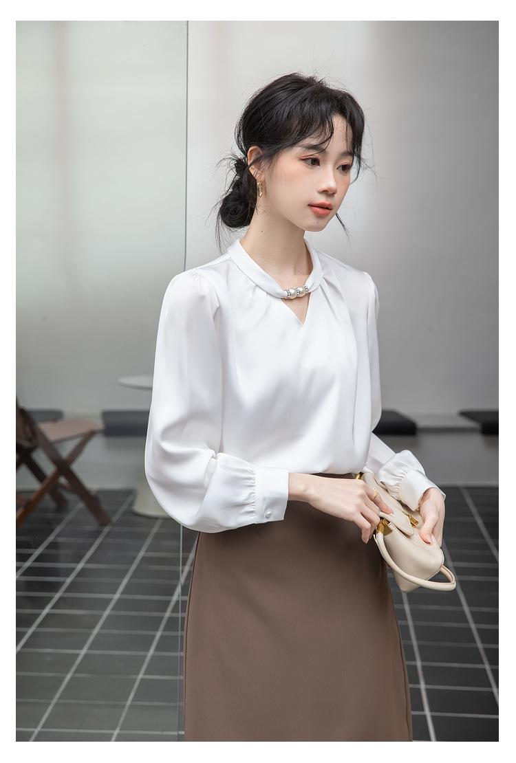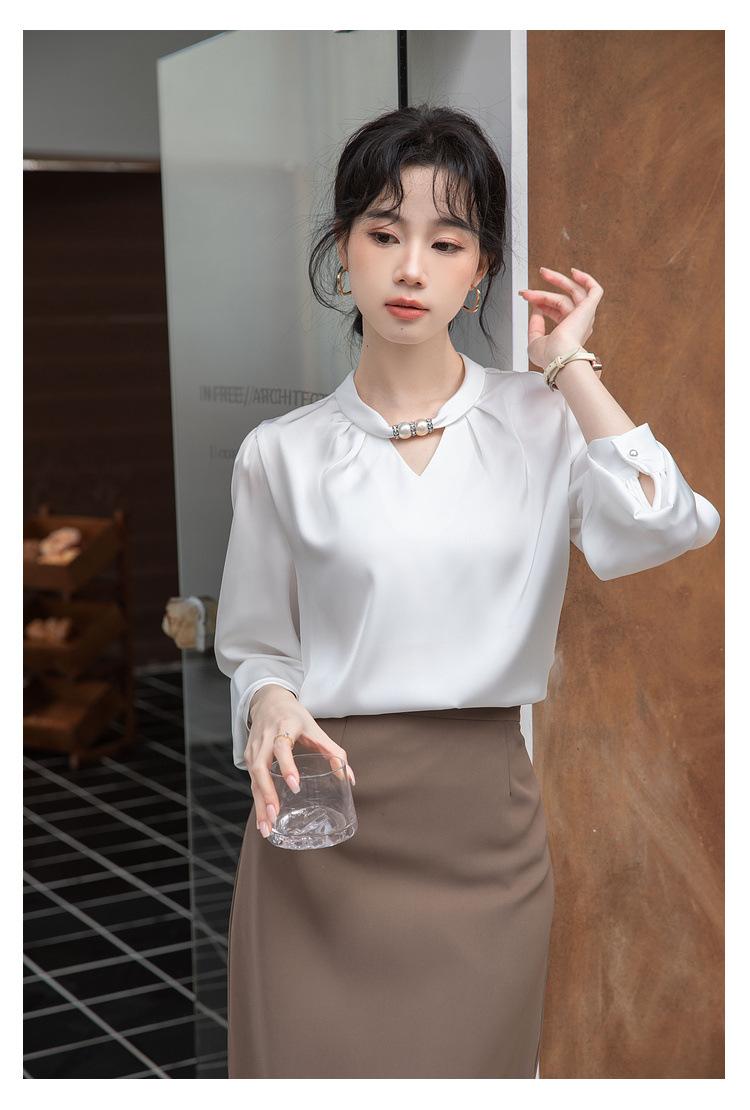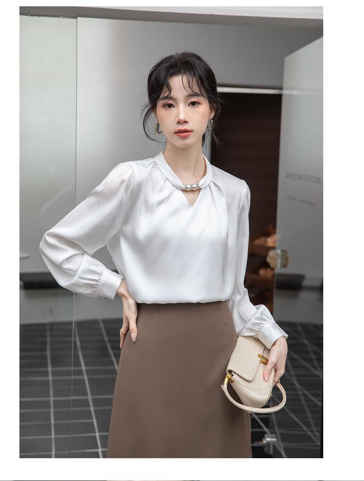 Camisa de satén blanco hueco estilo francés para mujer, manga larga, primavera 2024, nuevo diseño, estilo nicho, top de alta elegancia
