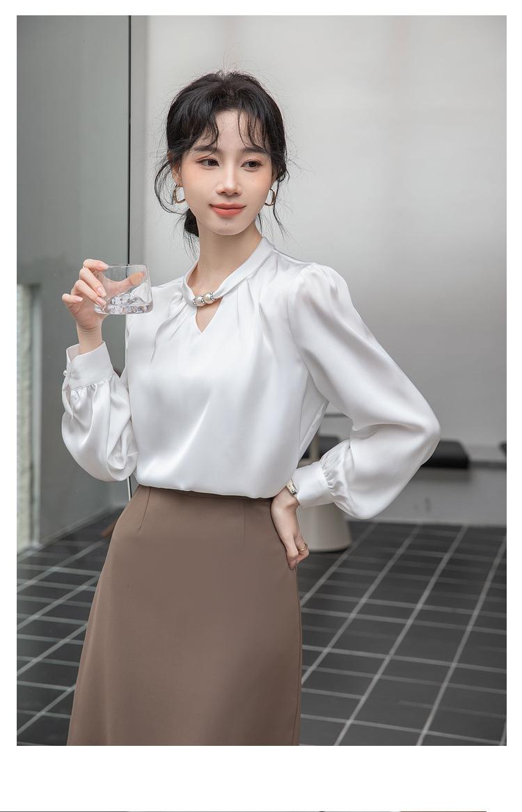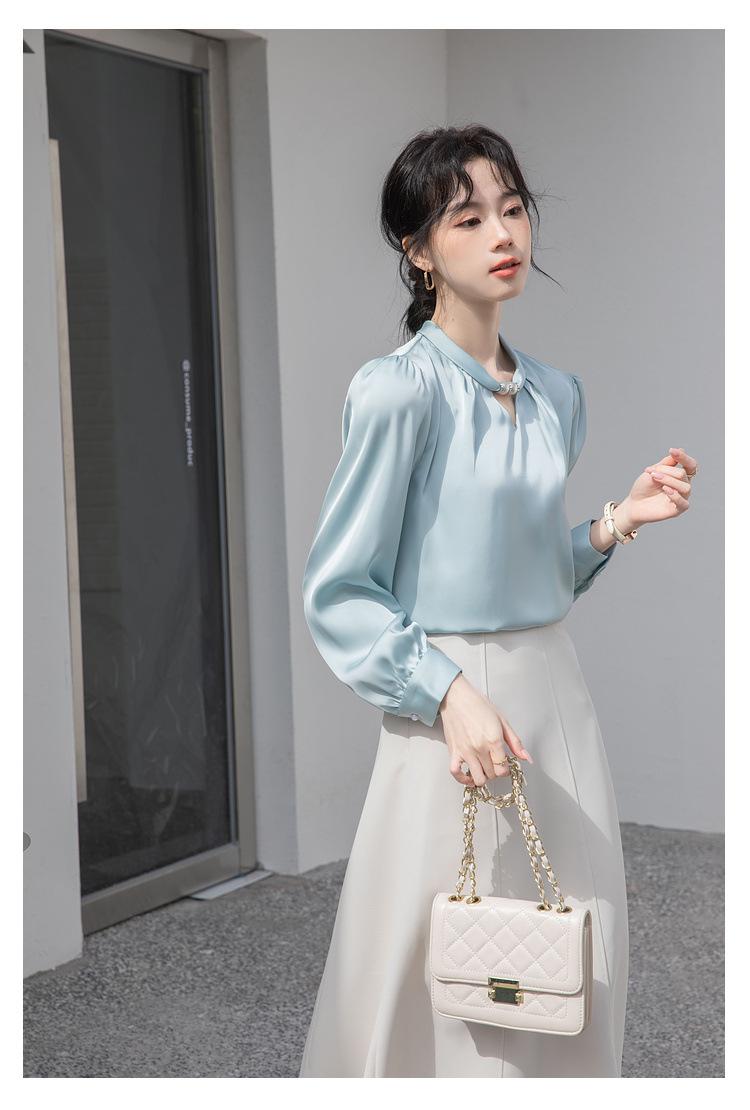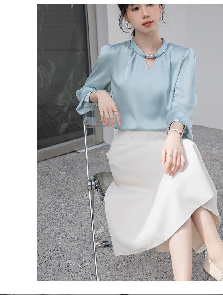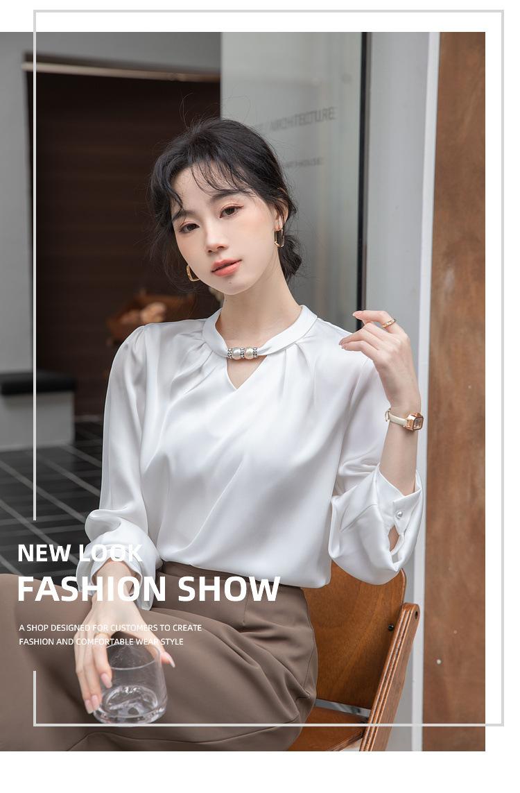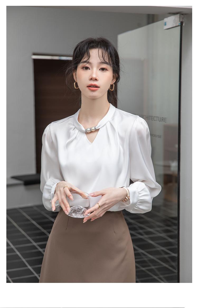 Camisa de satén blanco hueco estilo francés para mujer, manga larga, primavera 2024, nuevo diseño, estilo nicho, top de alta elegancia