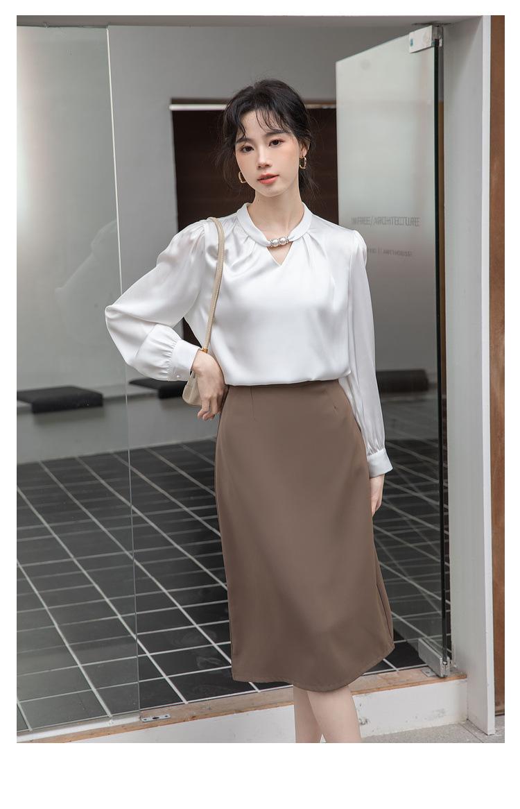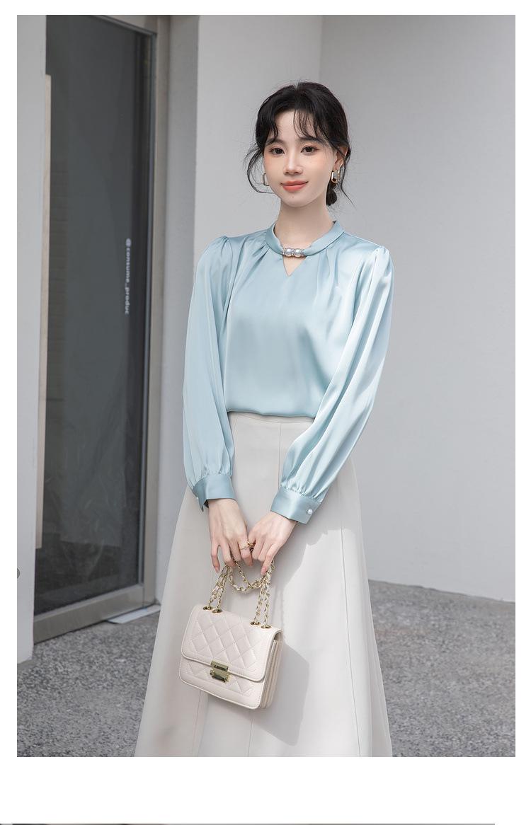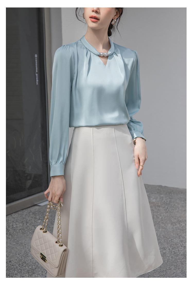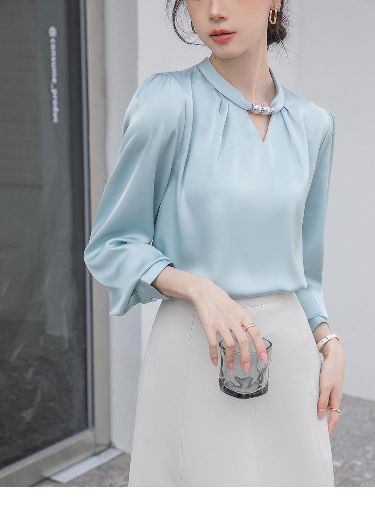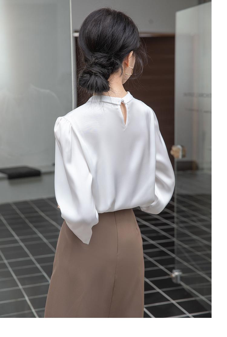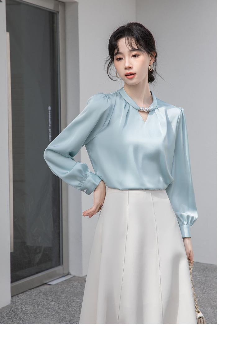 Camisa de satén blanco hueco estilo francés para mujer, manga larga, primavera 2024, nuevo diseño, estilo nicho, top de alta elegancia