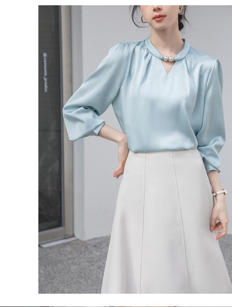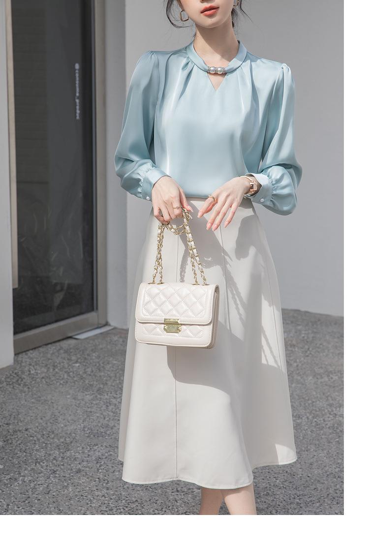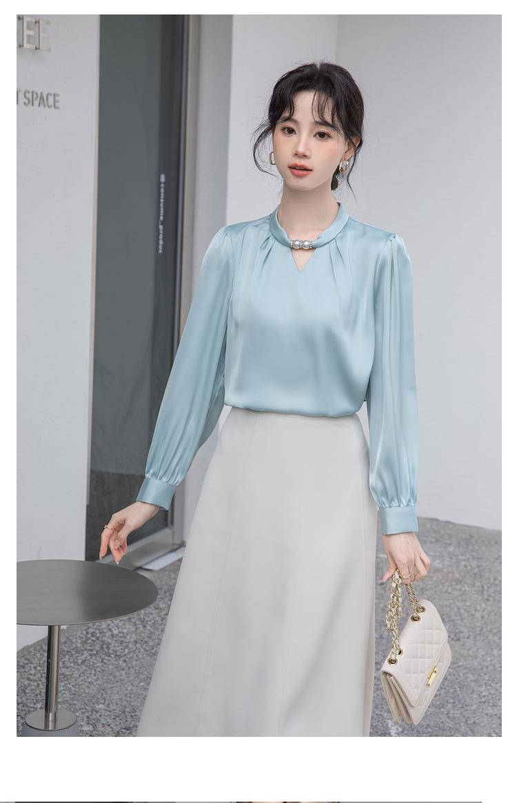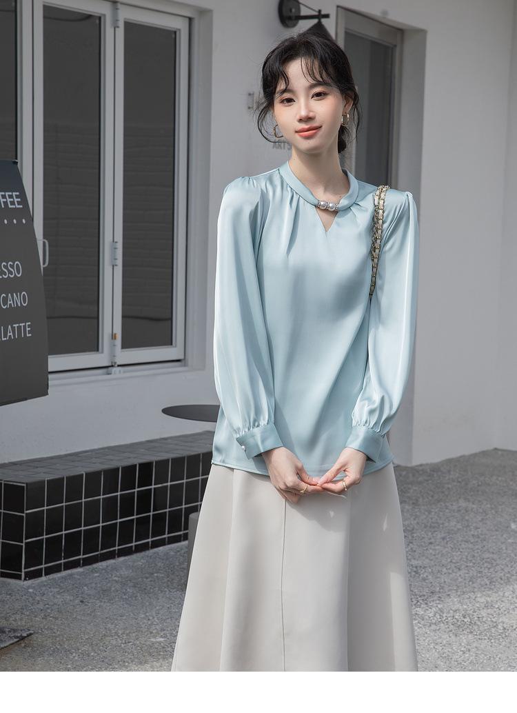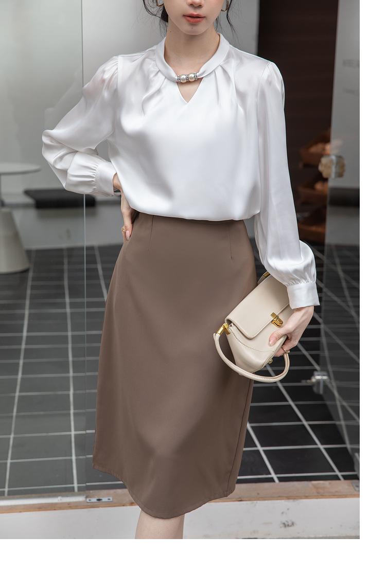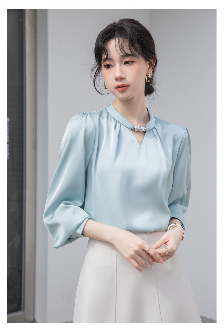Camisa de satén blanco hueco estilo francés para mujer, manga larga, primavera 2024, nuevo diseño, estilo nicho, top de alta elegancia