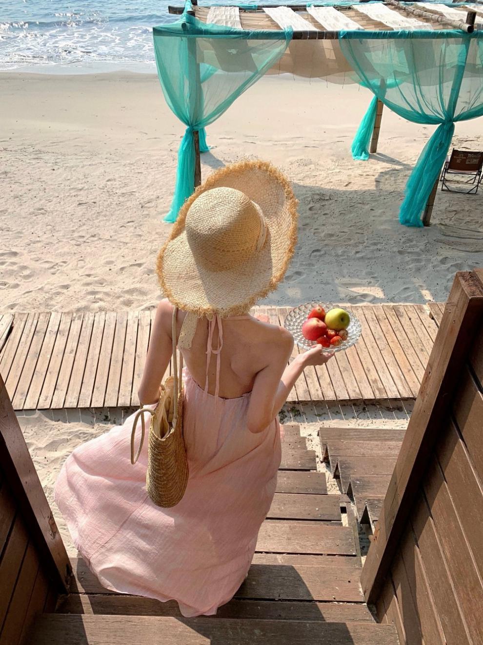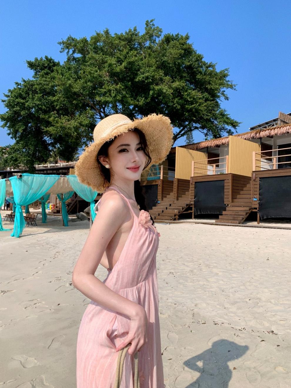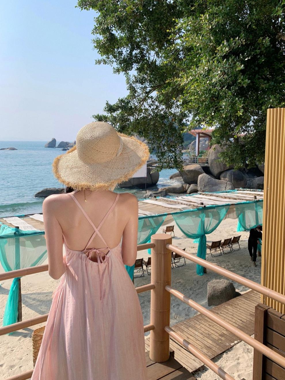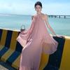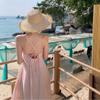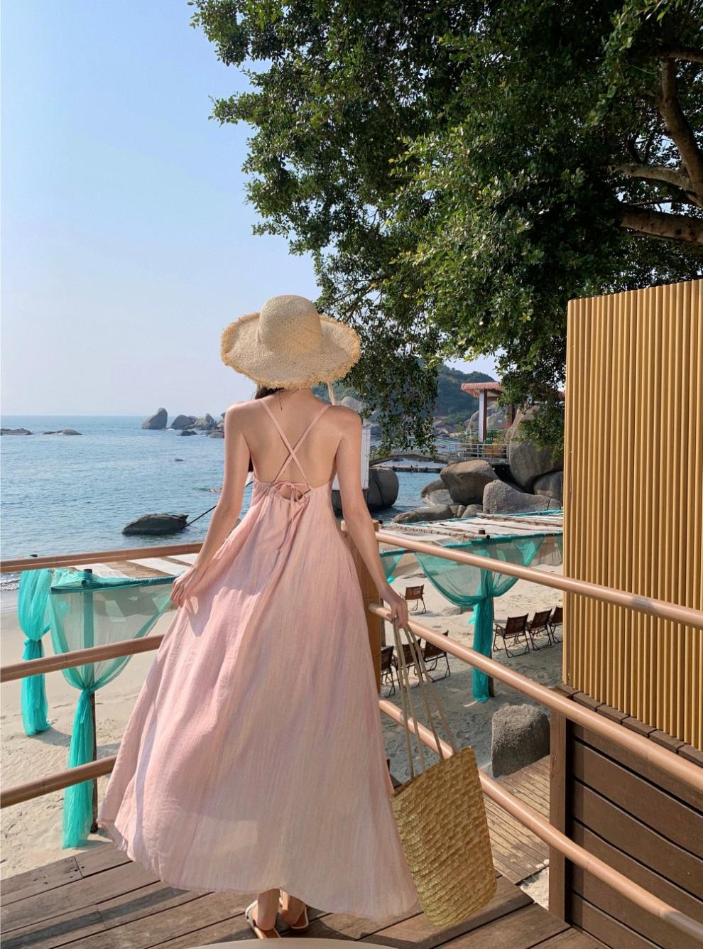 Vestido colgante de cuello estilo festivo de flor rosa pat real Vestido de playa de alta gama de hada dulce y gentil