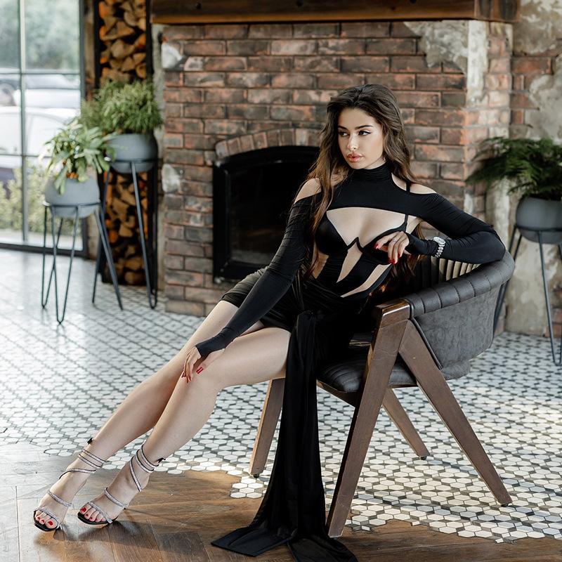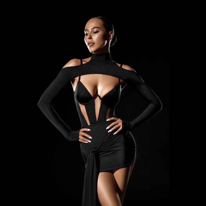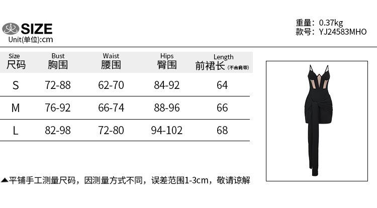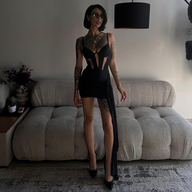 Yj24583 Vestido Sexy con Abertura en Cadera con Tirantes para Mujer 2024 Nuevo Sexy Falda Negra Transfronteriza Europea y Americana
