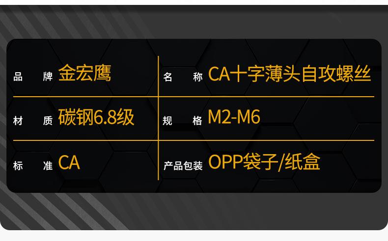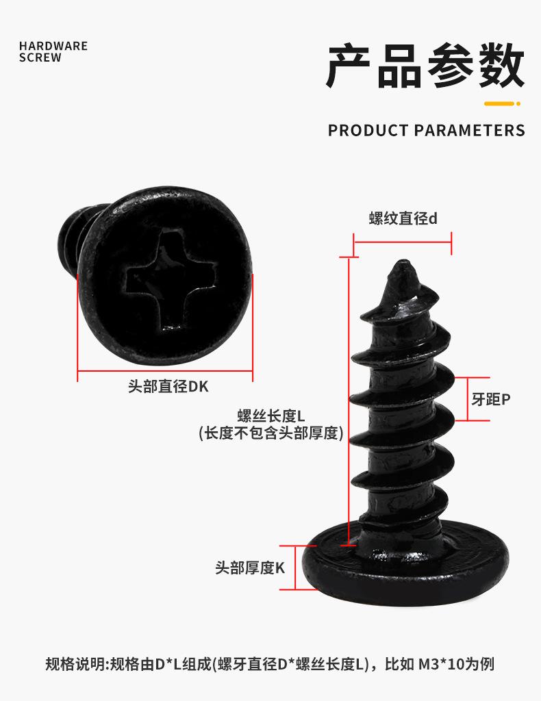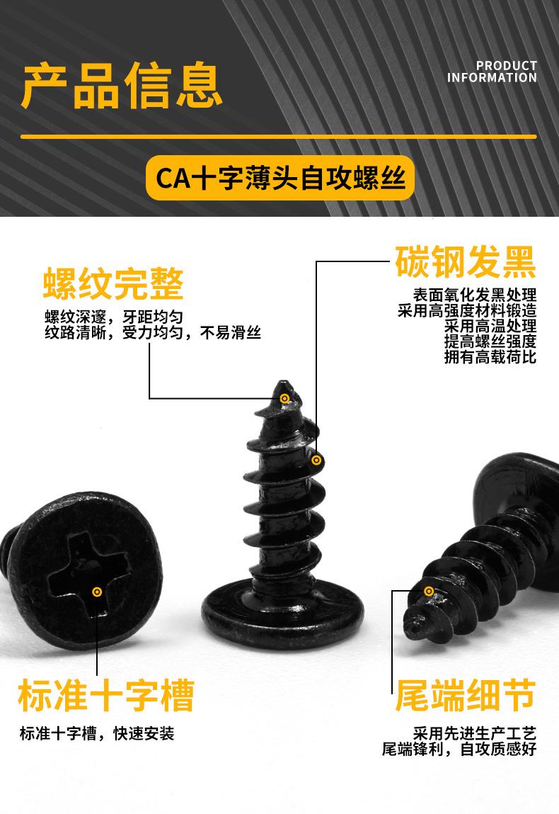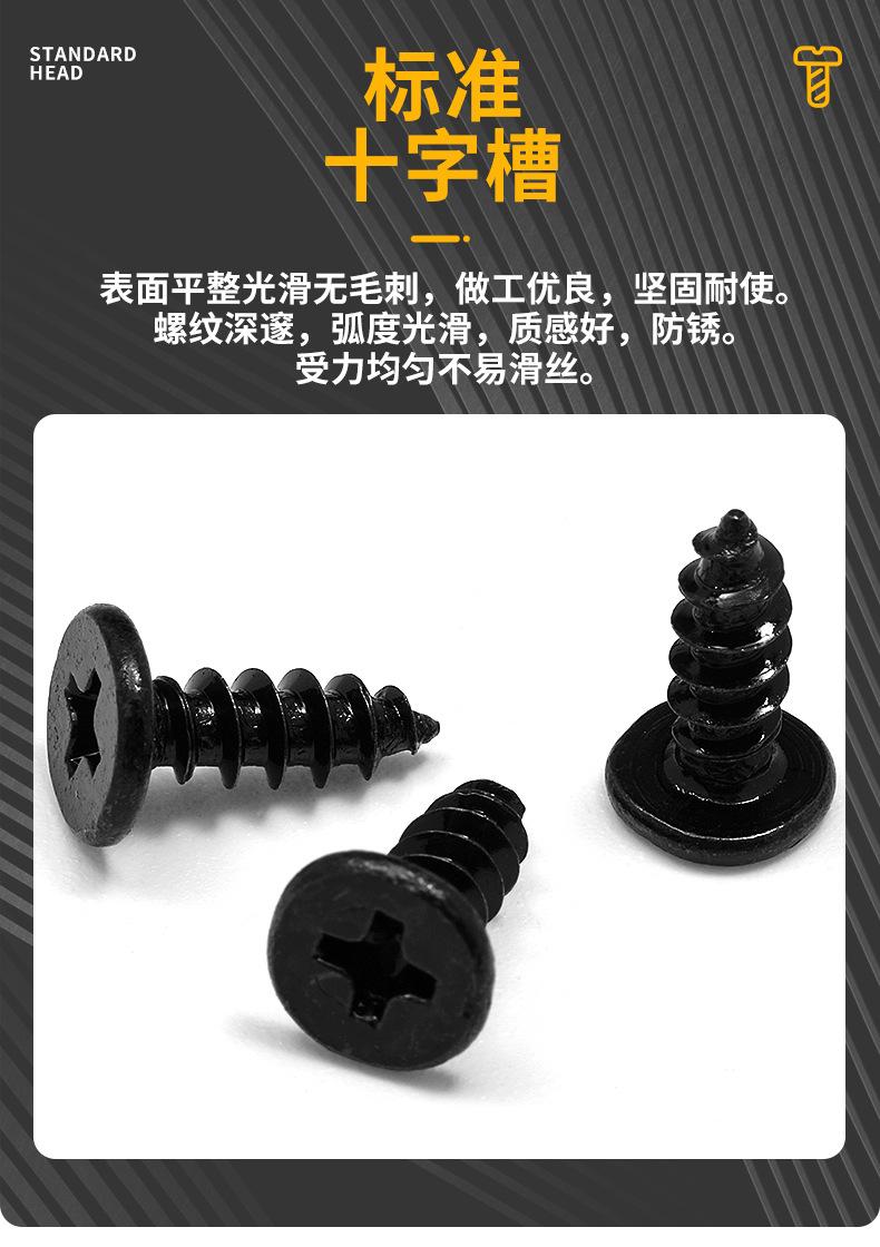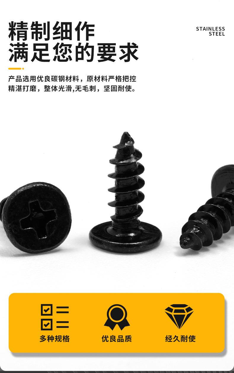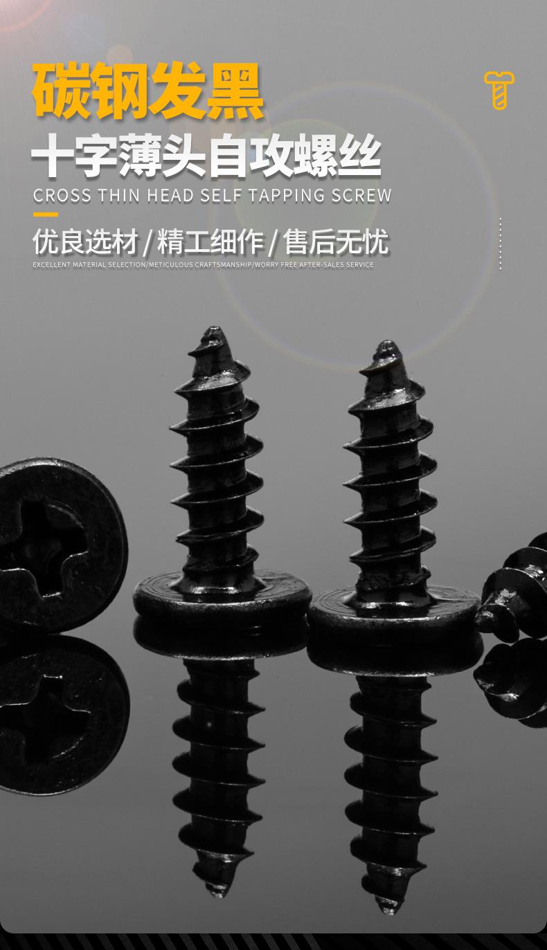Tornillo autorroscante de cabeza plana y fina, color negro, CA, M2/M2.3/M3/M4