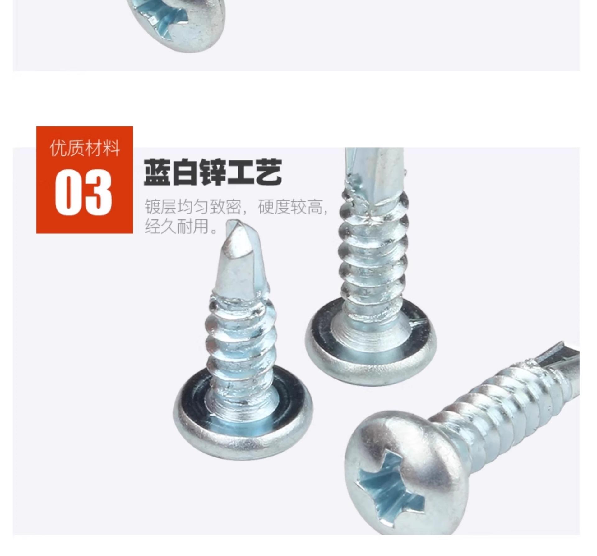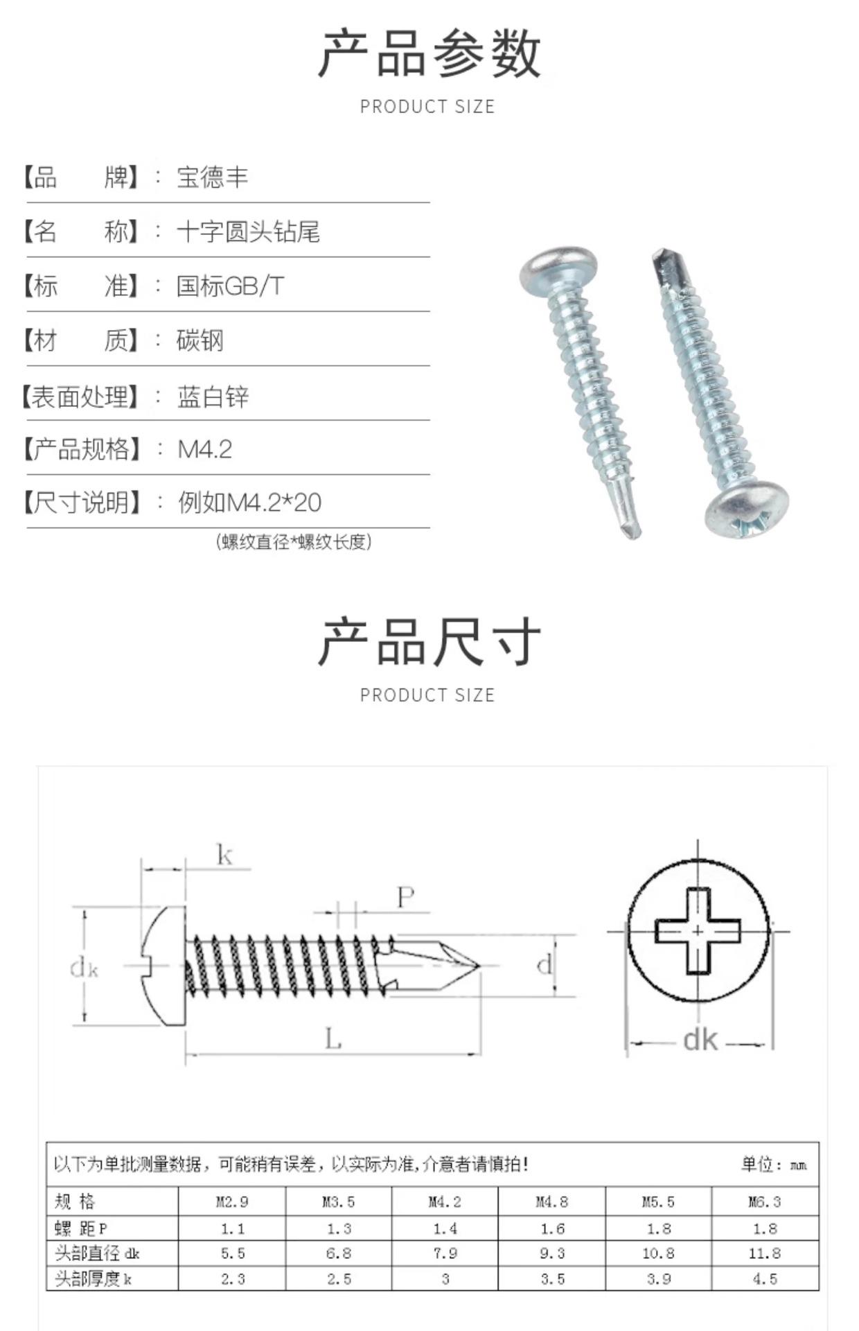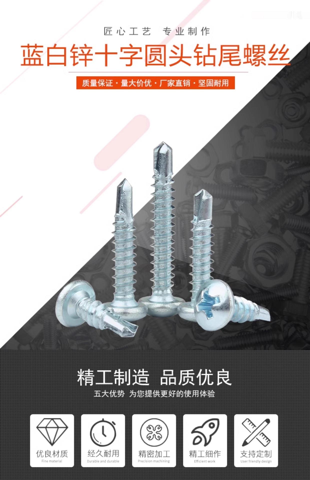 Tornillo autorroscante autoperforante de cabeza redonda cruzada zinc azul y blanco tornillo autorroscante de cabeza yuan cola de taladro cola de milano tornillo autorroscante M4.2