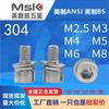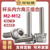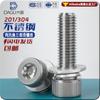 Acero Inoxidable 304 Cabeza Cilíndrica Hexágono Interior Tornillos de Tres Combinaciones Perno de Cabeza de Copa Combinación de Arandela Elástica Plana Hexágono Interior M3M12