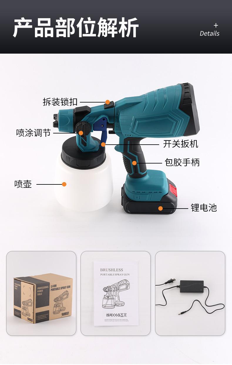 Venta al por mayor transfronteriza de pistola de pintura en aerosol de mano inalámbrica con batería de litio, herramienta de pulverización doméstica, pistola pulverizadora eléctrica multifuncional, olla al por mayor