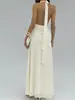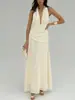 2025 Verano Nuevo Europeo y Americano Transfronterizo Amazon Color Sólido Elegante Moda Sexy Espalda Descubierta Cuello Vestido Largo Ajustado para Mujer