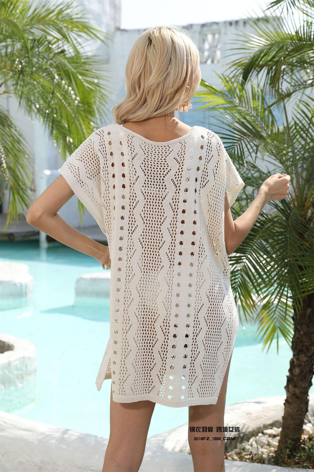 Verano 2025 Nuevo Transfronterizo Amazon Exportación Europea y Americana Cubre Playa Calado Tejido Vacaciones Marítimas Tejido de Punto