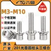 Acero Inoxidable 201 Cabeza Cilíndrica Hexágono Interior Tornillos de Tres Combinaciones Cabeza Copa Hexágono Interior Perno de Combinación con Arandela Elástica Plana M4/M5