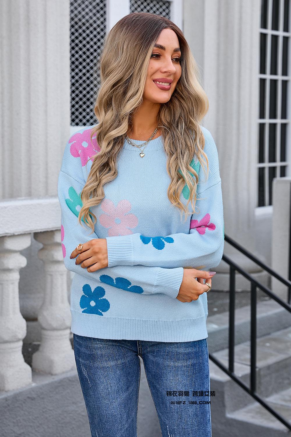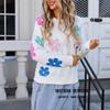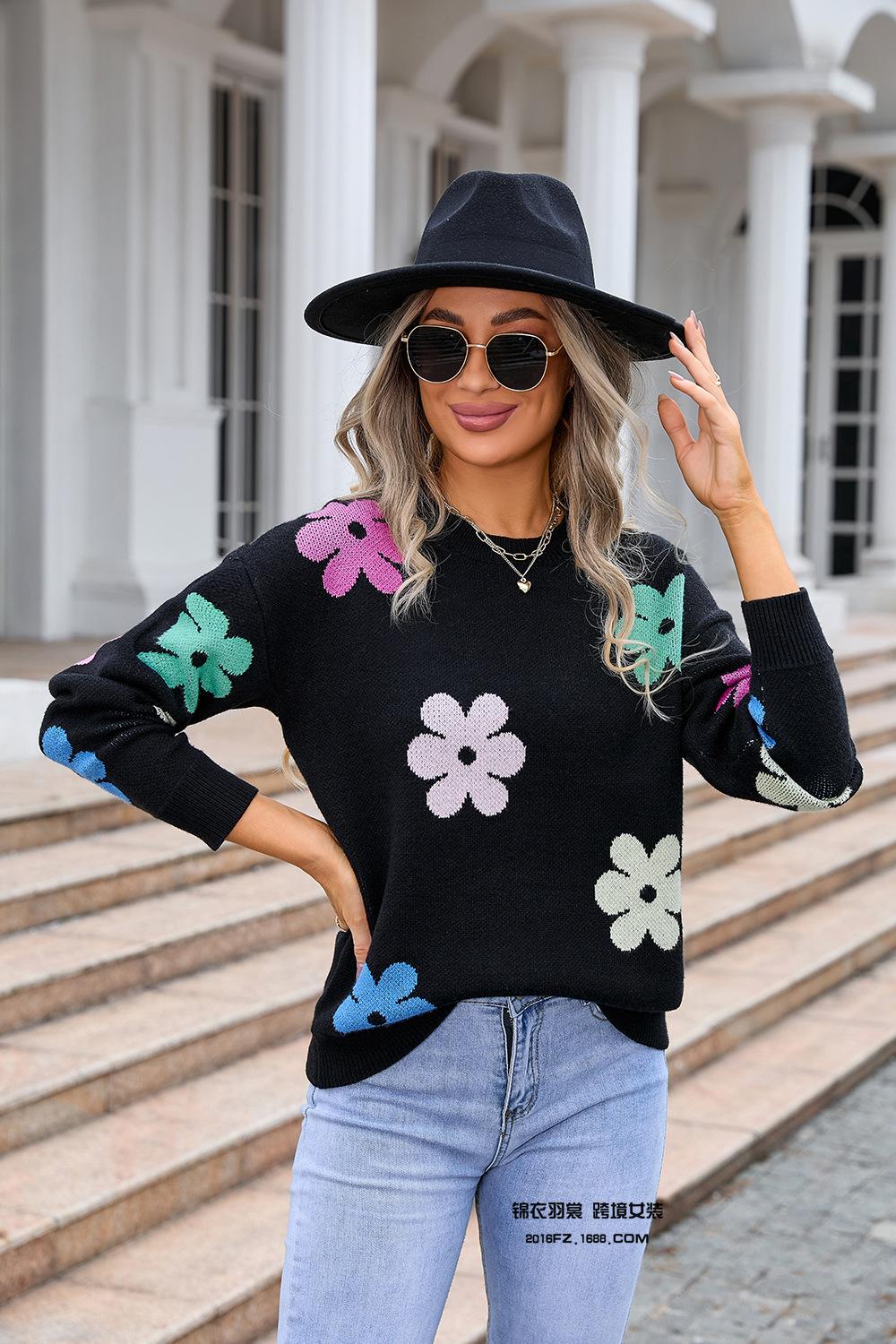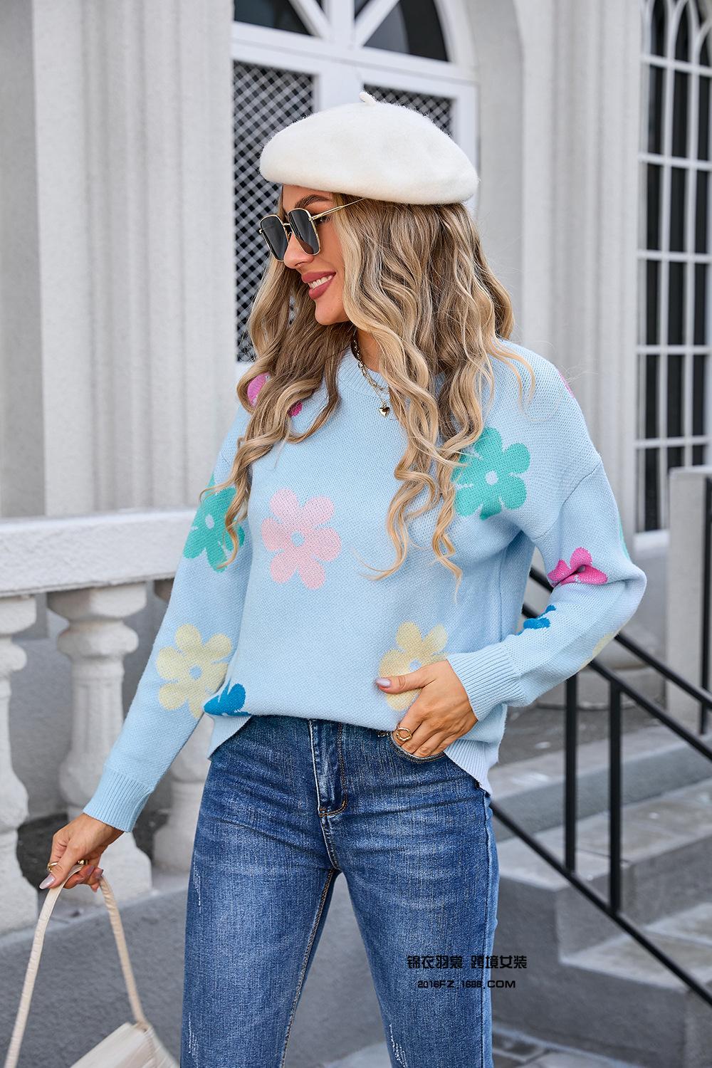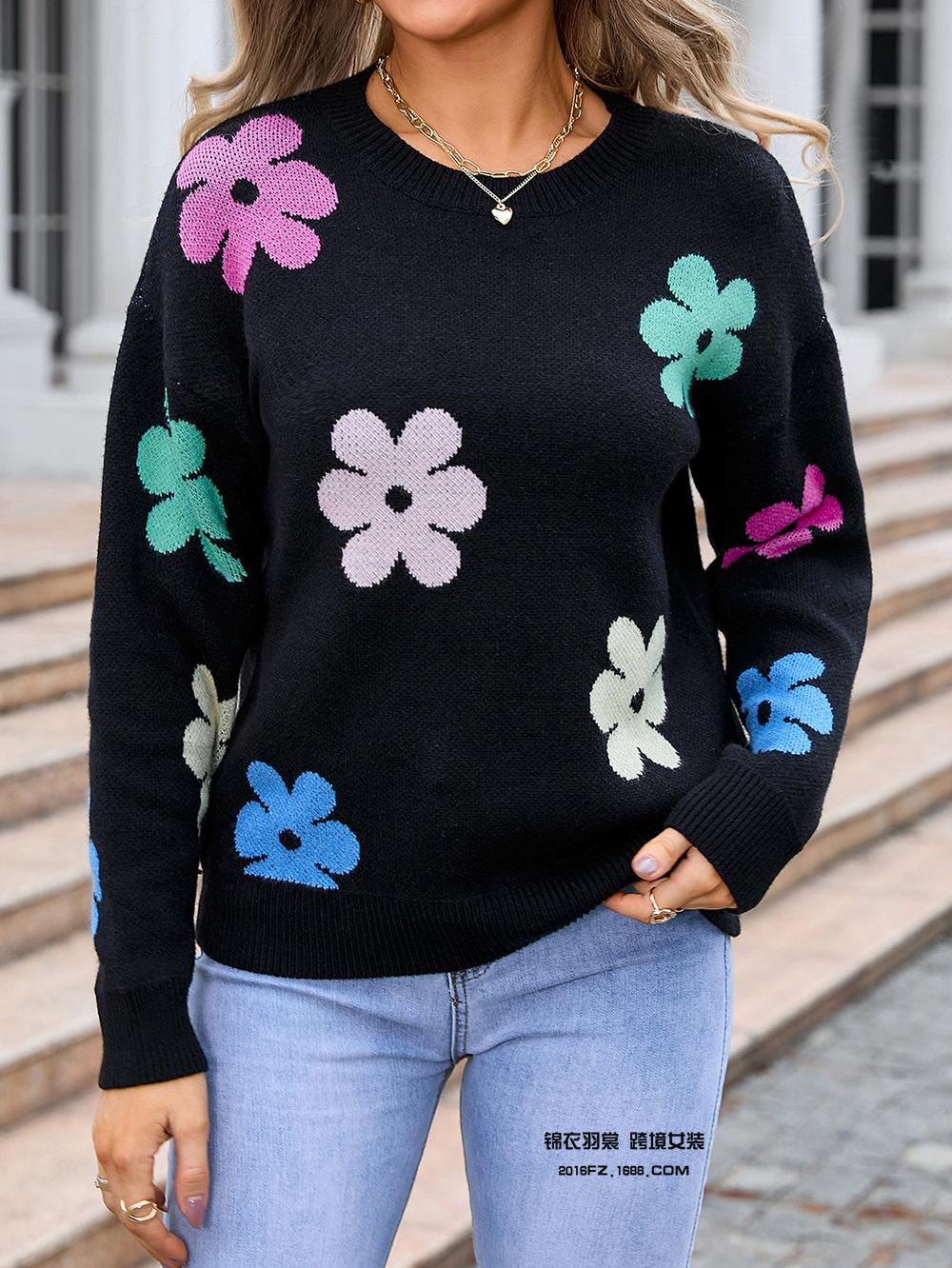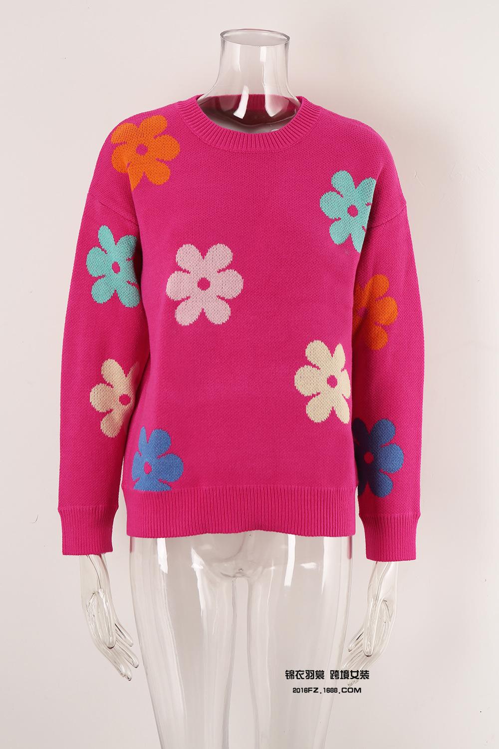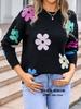 Ropa de Primavera 2025 Exportación Europea y Americana Nueva Prendas de Punto Transfronterizas Amazon Popular Bloque de Color Floral Cuello Redondo Prendas de Punto Versátiles