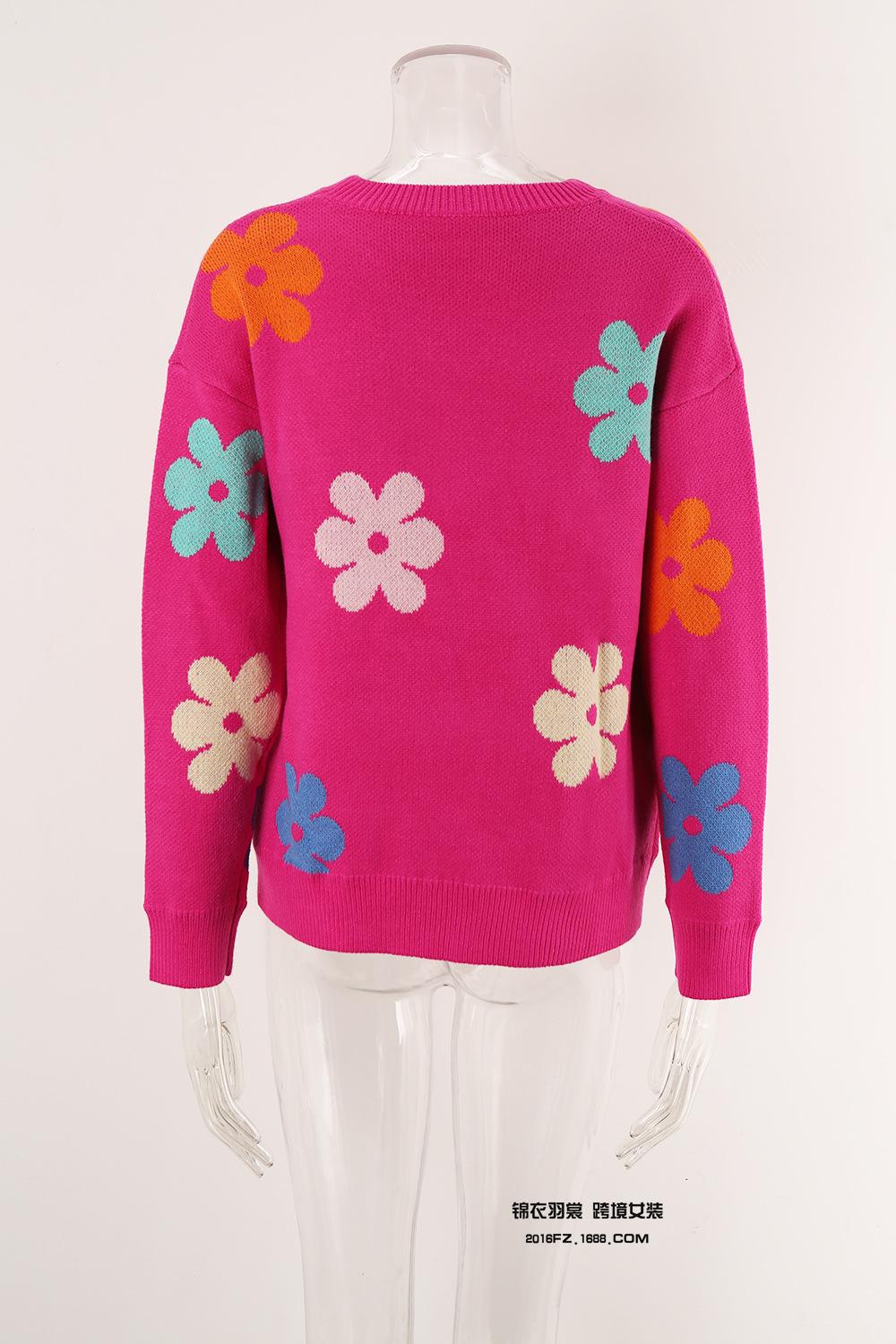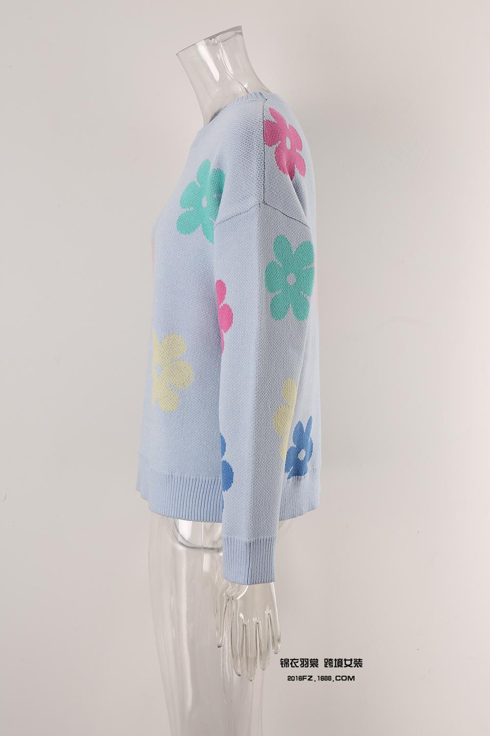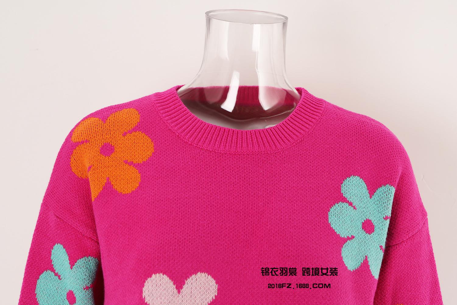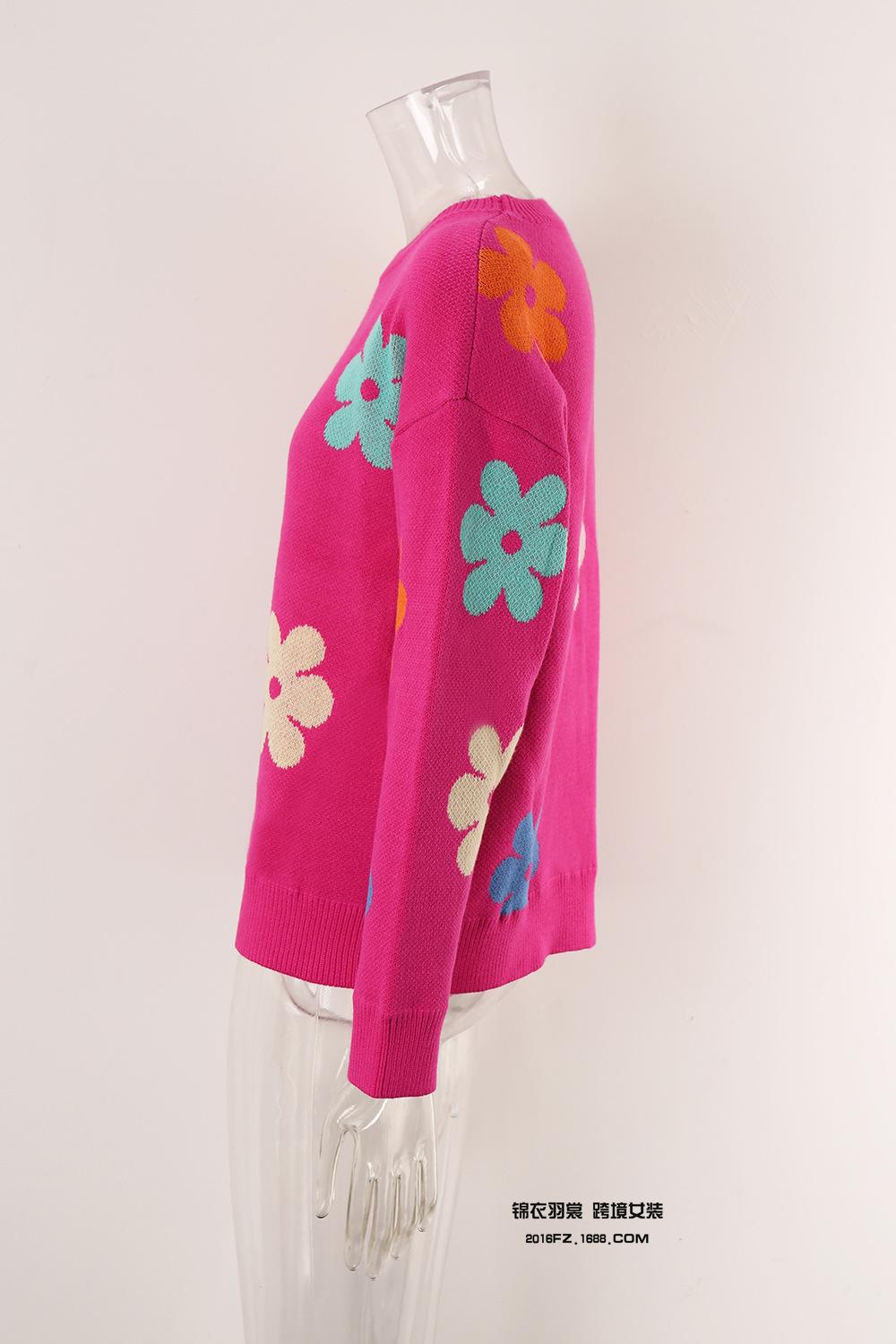 Ropa de Primavera 2025 Exportación Europea y Americana Nueva Prendas de Punto Transfronterizas Amazon Popular Bloque de Color Floral Cuello Redondo Prendas de Punto Versátiles