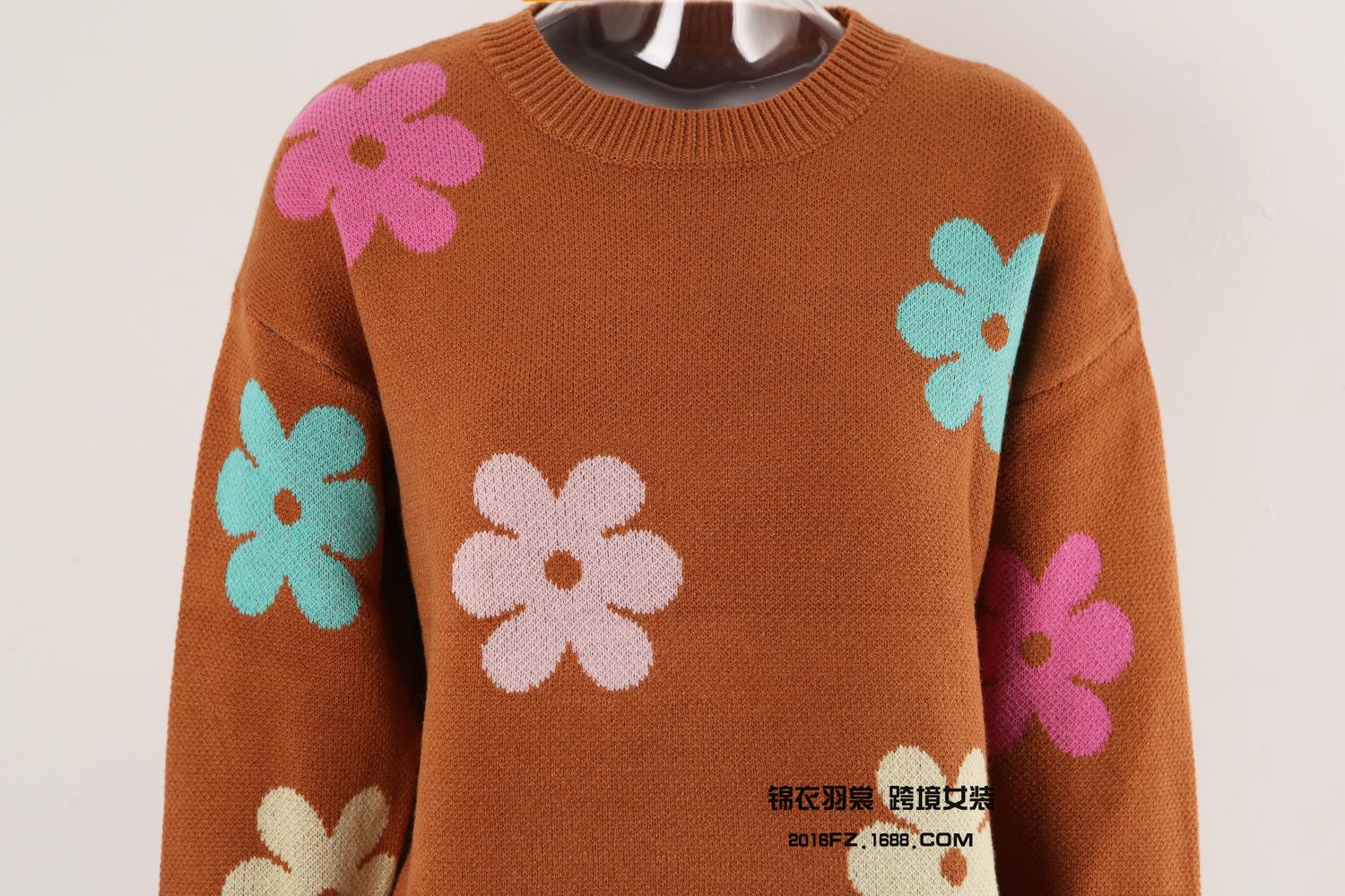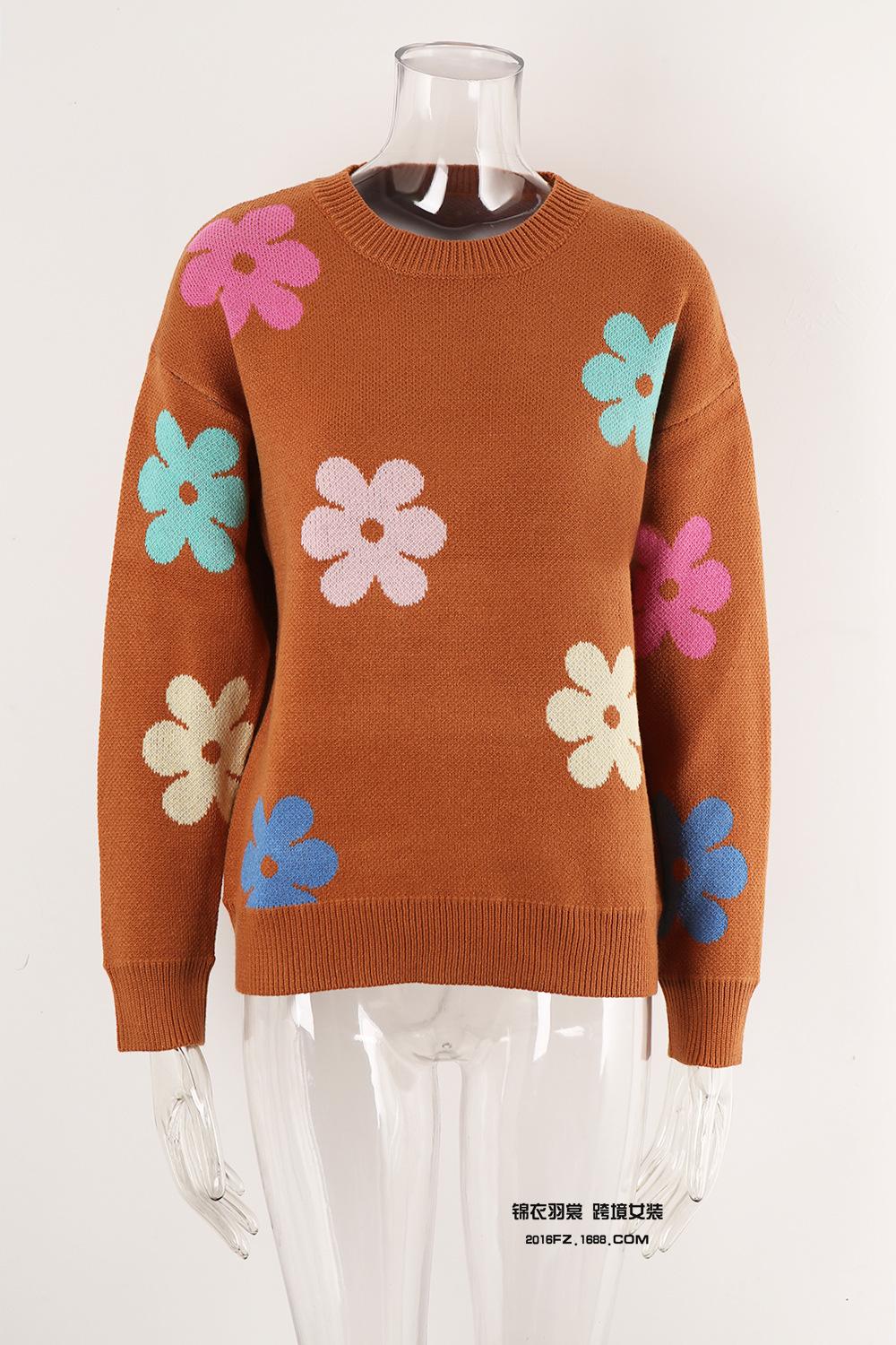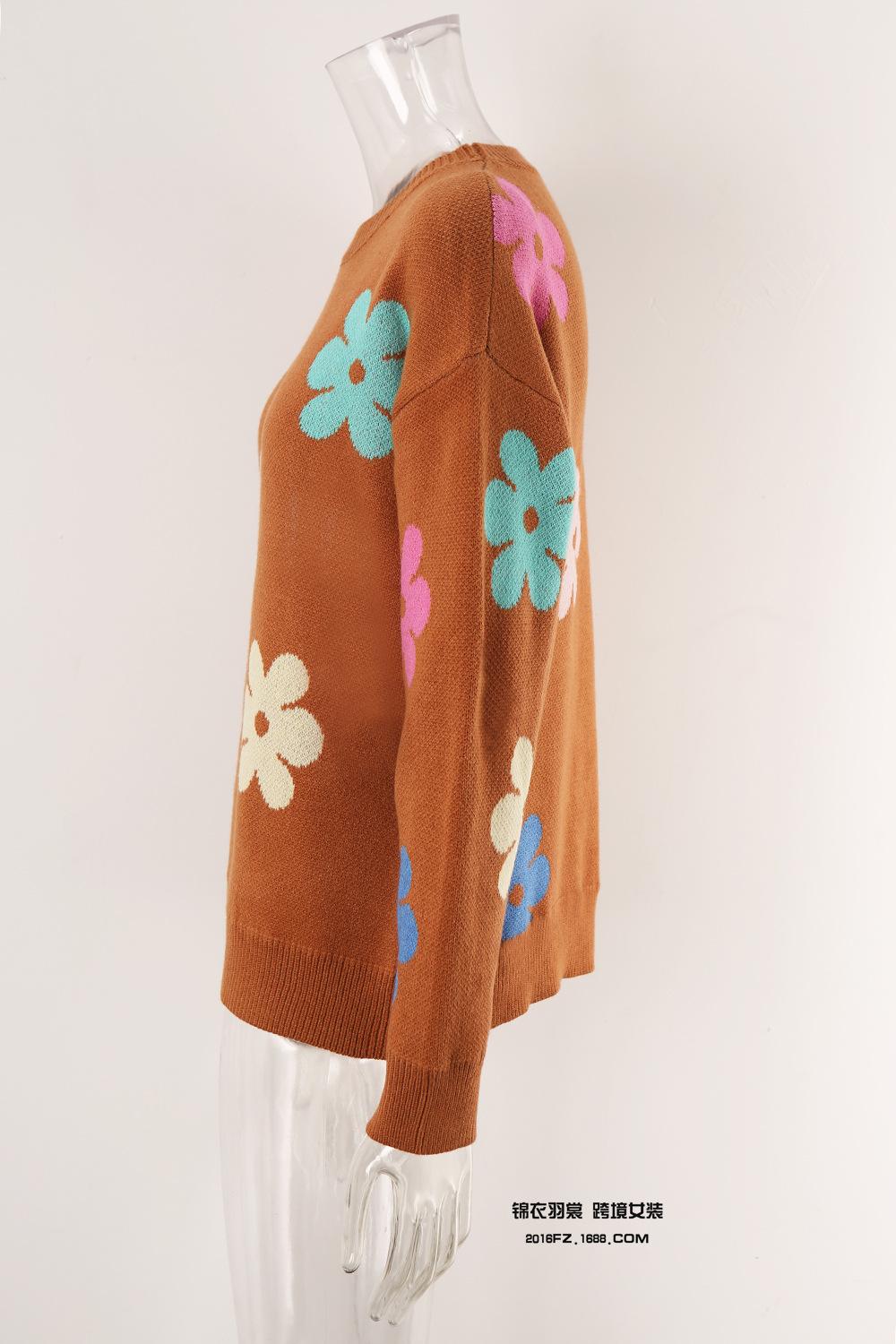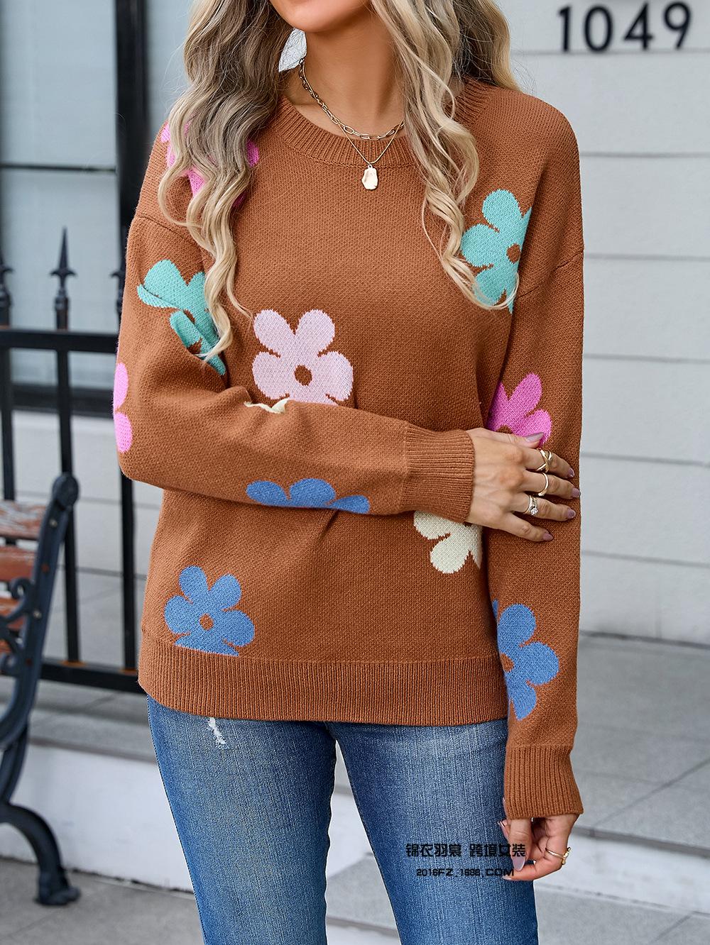 Ropa de Primavera 2025 Exportación Europea y Americana Nueva Prendas de Punto Transfronterizas Amazon Popular Bloque de Color Floral Cuello Redondo Prendas de Punto Versátiles