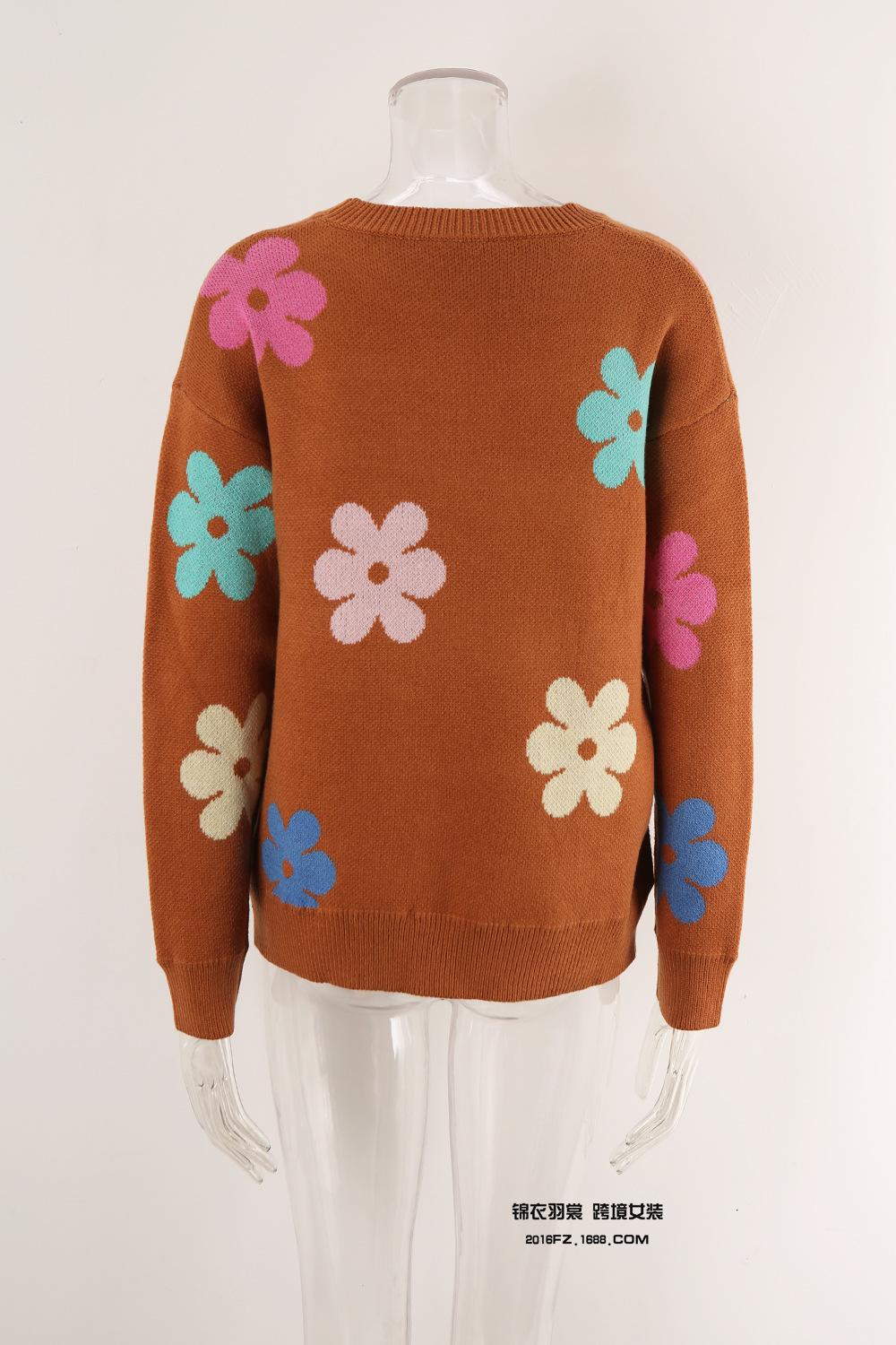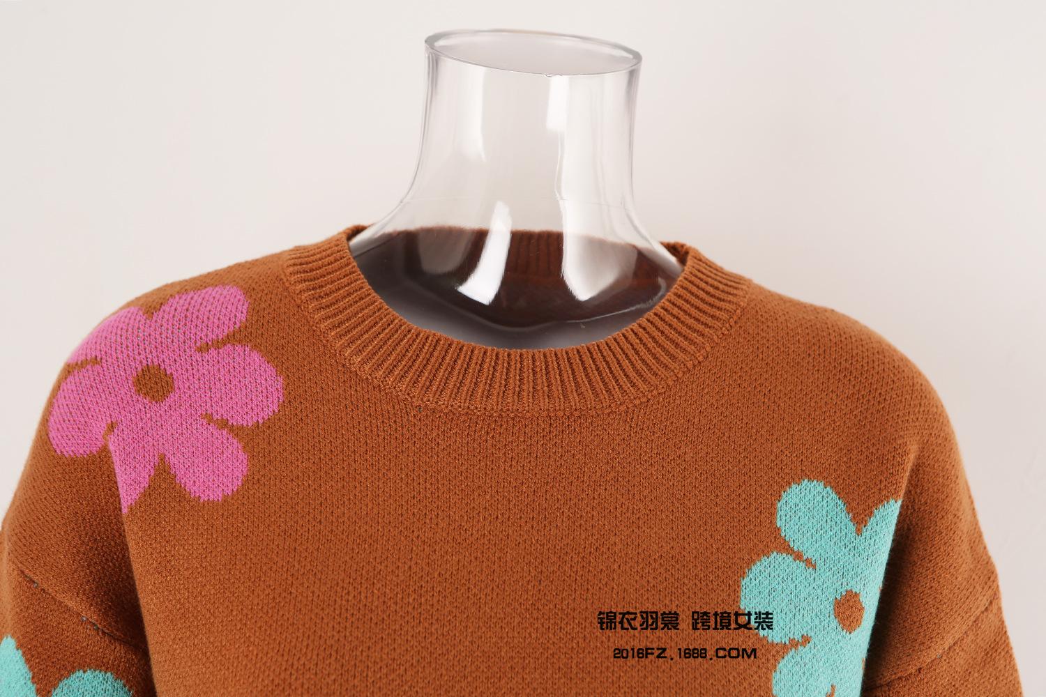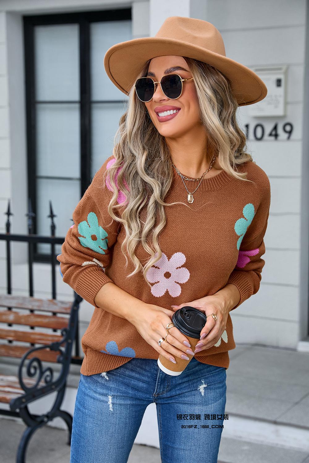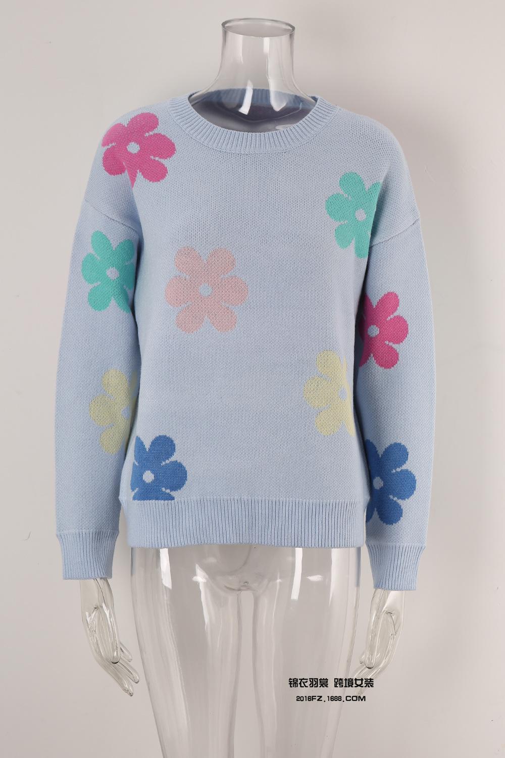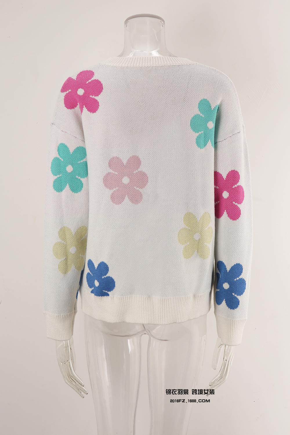 Ropa de Primavera 2025 Exportación Europea y Americana Nueva Prendas de Punto Transfronterizas Amazon Popular Bloque de Color Floral Cuello Redondo Prendas de Punto Versátiles
