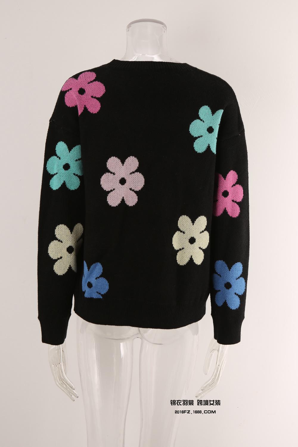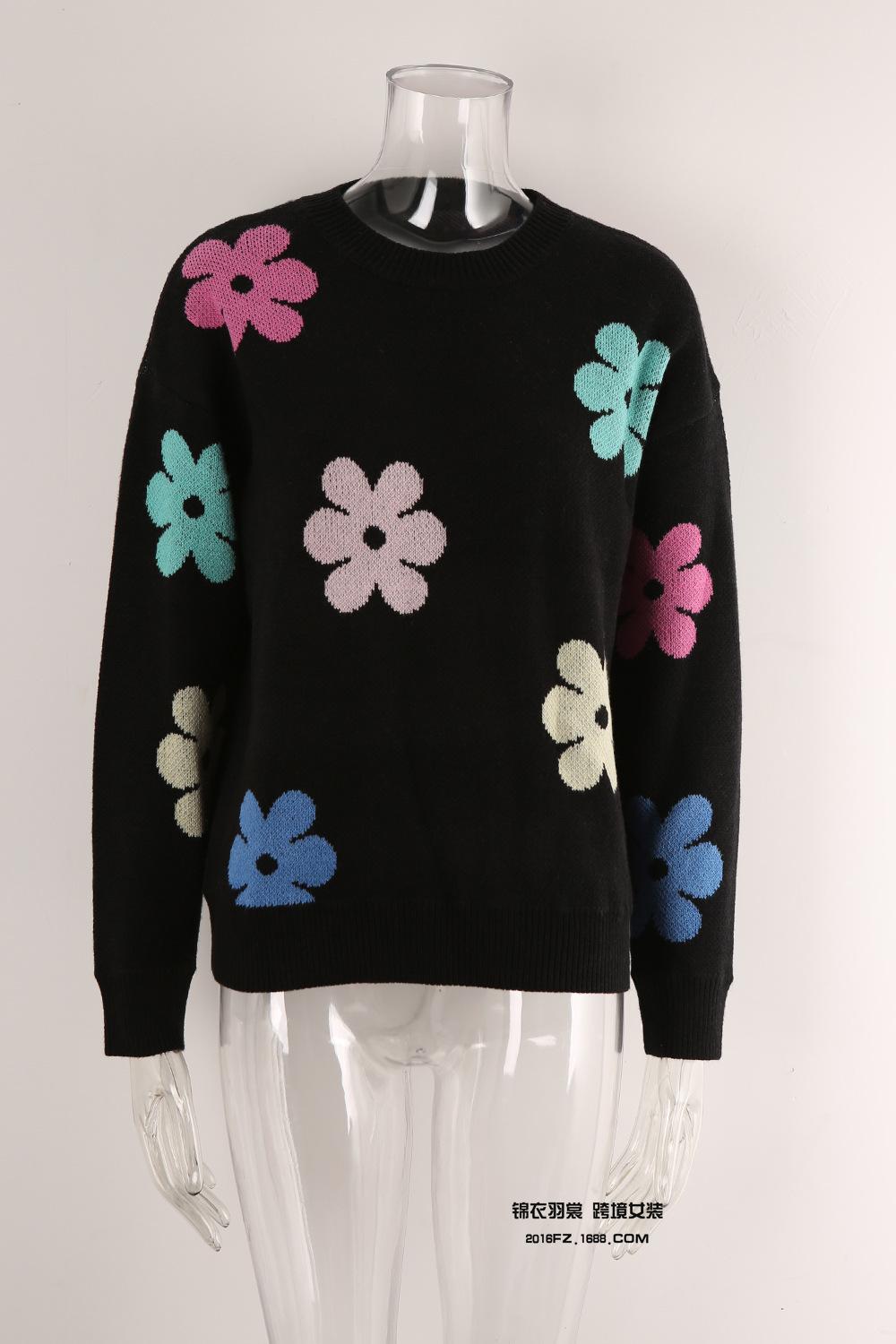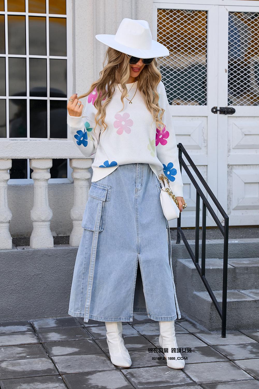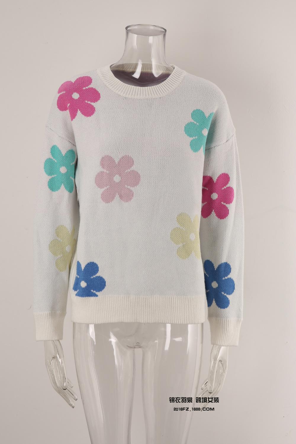 Ropa de Primavera 2025 Exportación Europea y Americana Nueva Prendas de Punto Transfronterizas Amazon Popular Bloque de Color Floral Cuello Redondo Prendas de Punto Versátiles
