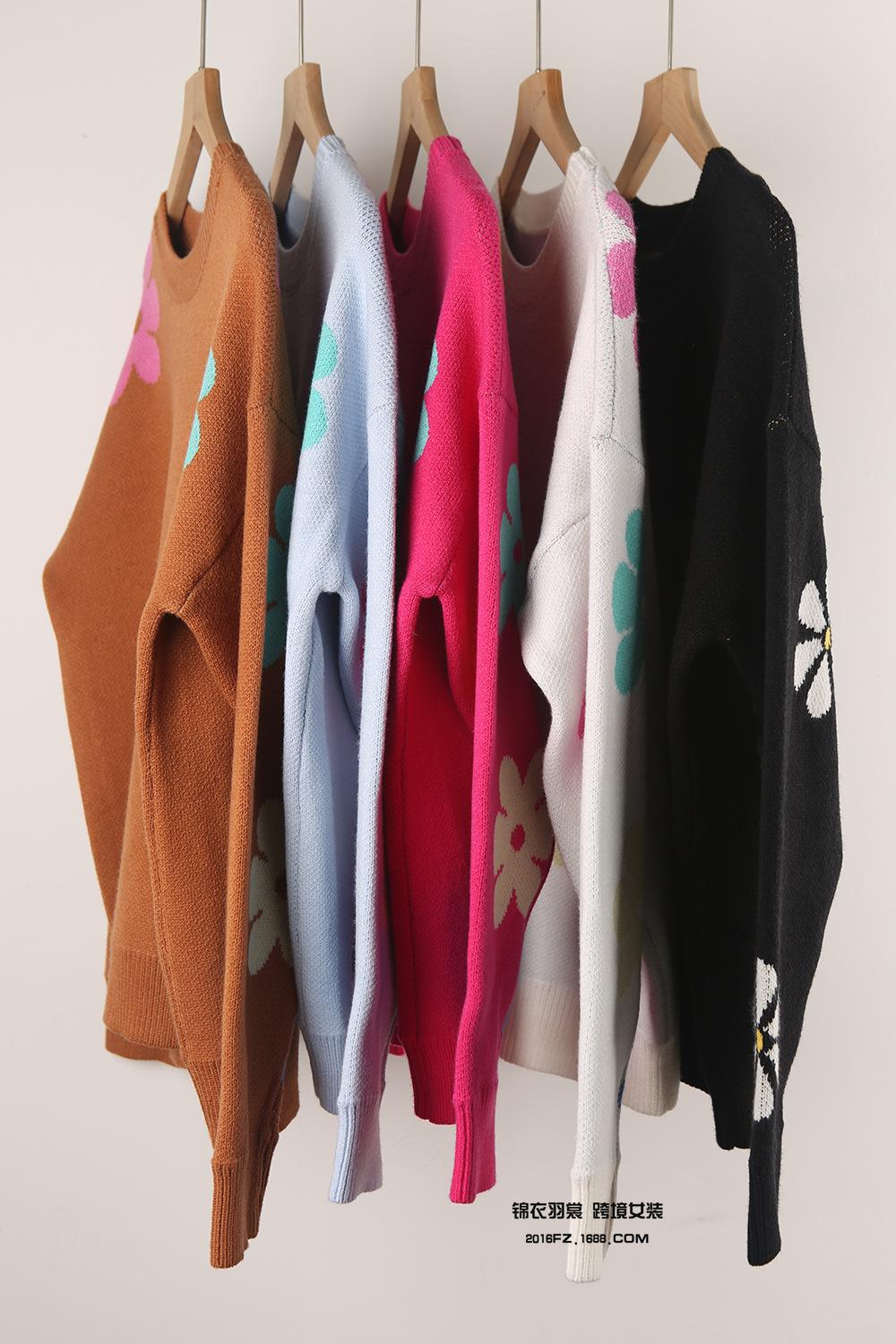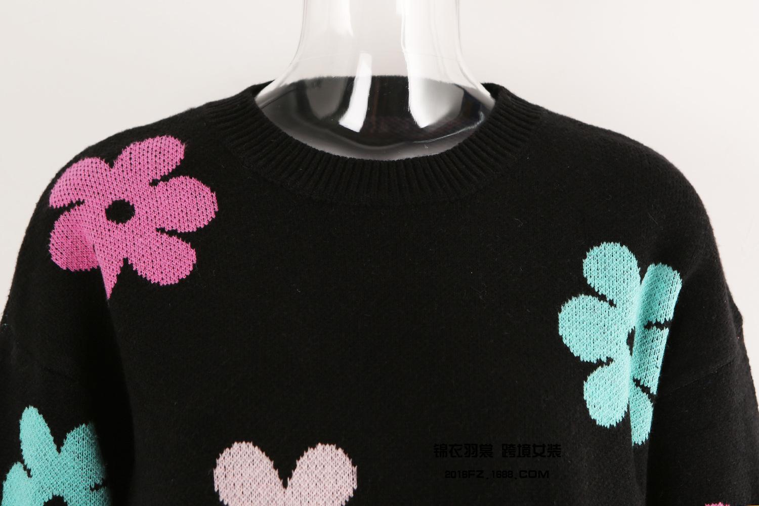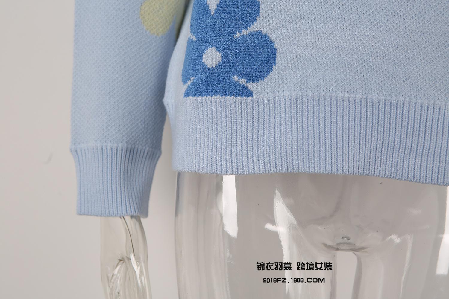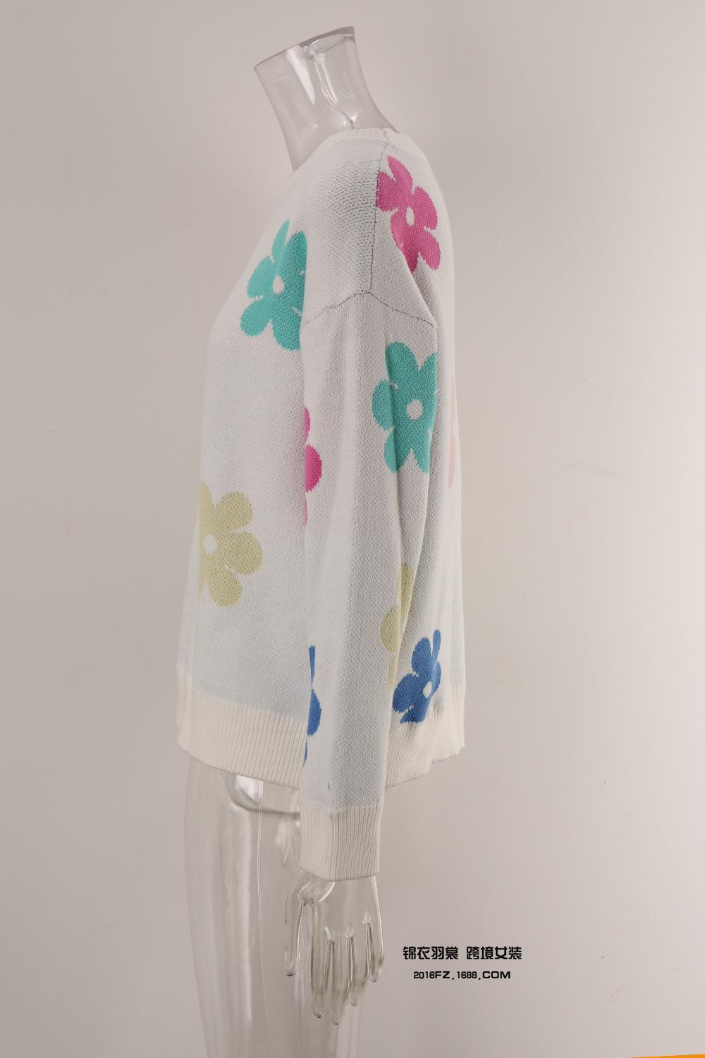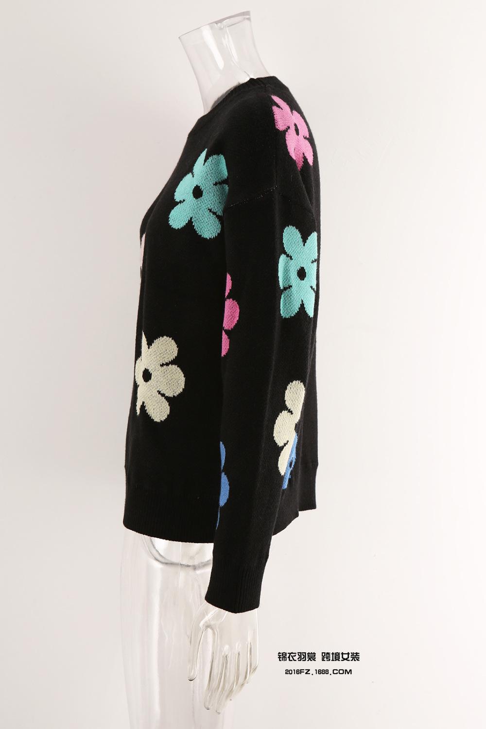 Ropa de Primavera 2025 Exportación Europea y Americana Nueva Prendas de Punto Transfronterizas Amazon Popular Bloque de Color Floral Cuello Redondo Prendas de Punto Versátiles