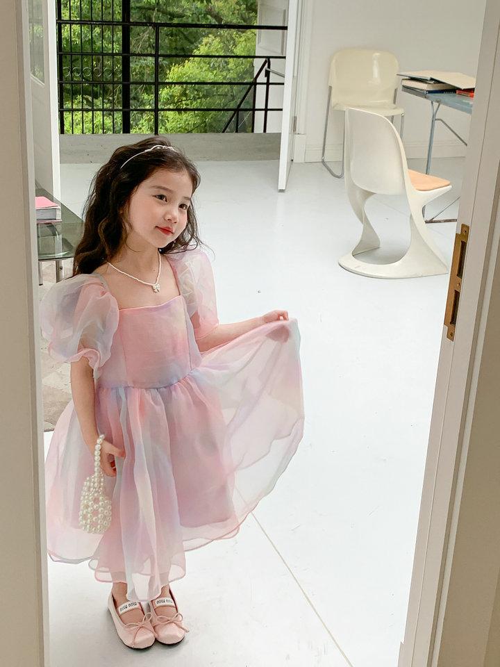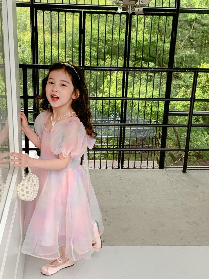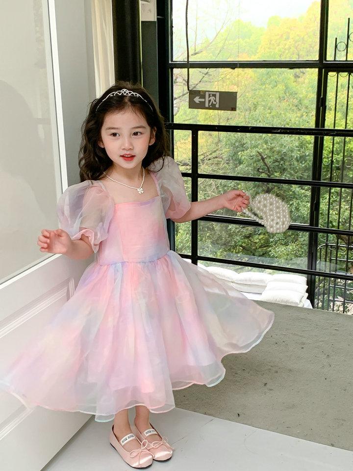 Compra Vestido de Verano para Niñas 2025 Verano Nuevo Estilo Coreano Vestido de Gasa Arcoíris para Niños Vestido de Princesa a la Moda para Niña al por mayor en Joom.pro