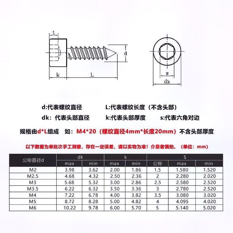 Tornillos autorroscantes de cabeza hueca hexagonal, Cabeza de copa, Cabeza plana, Cabeza redonda, Cabeza pan, Cabeza avellanada, Cabeza plana grande, Tornillos y pernos de acero inoxidable 304