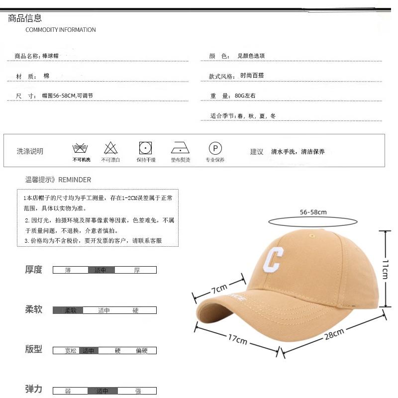 Moda Coreana Protector Solar Moda Pareja Todo Combinable Gorra Casual Gorra Bordada con Letra C para Hombre y Mujer