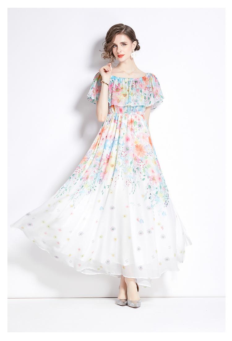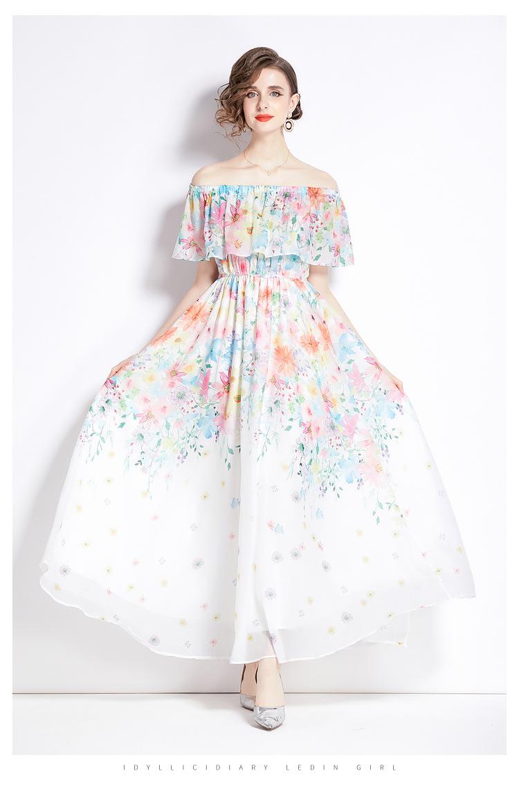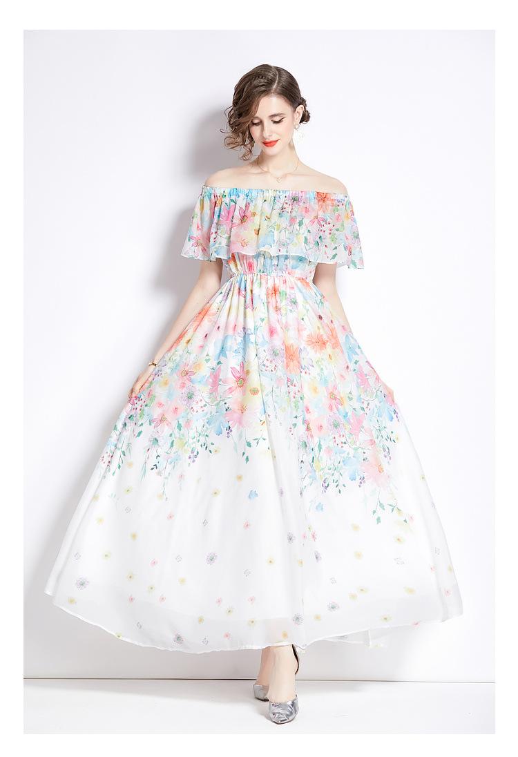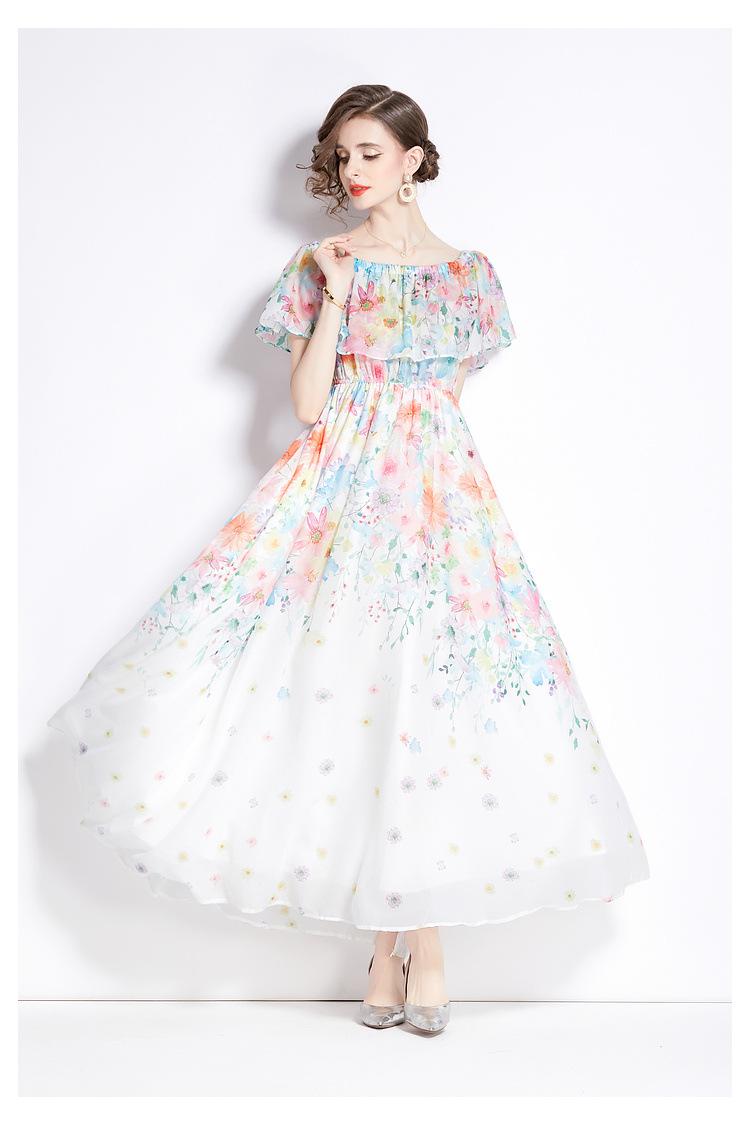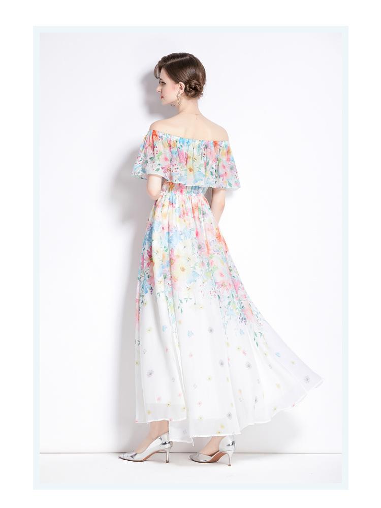 Nuevo vestido de chifón con volantes, hombros descubiertos, talla grande, cintura ajustada, falda amplia para playa con abertura, para mujer