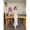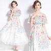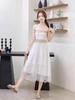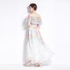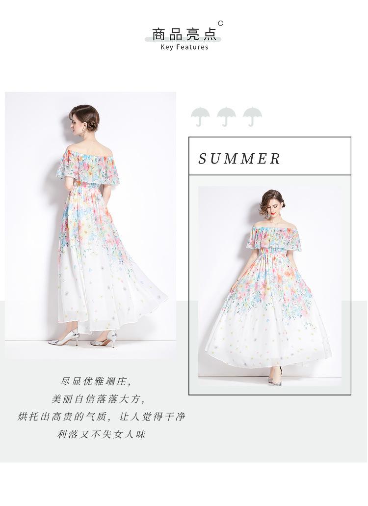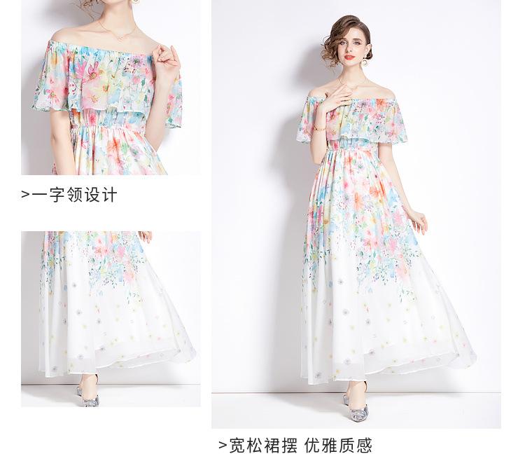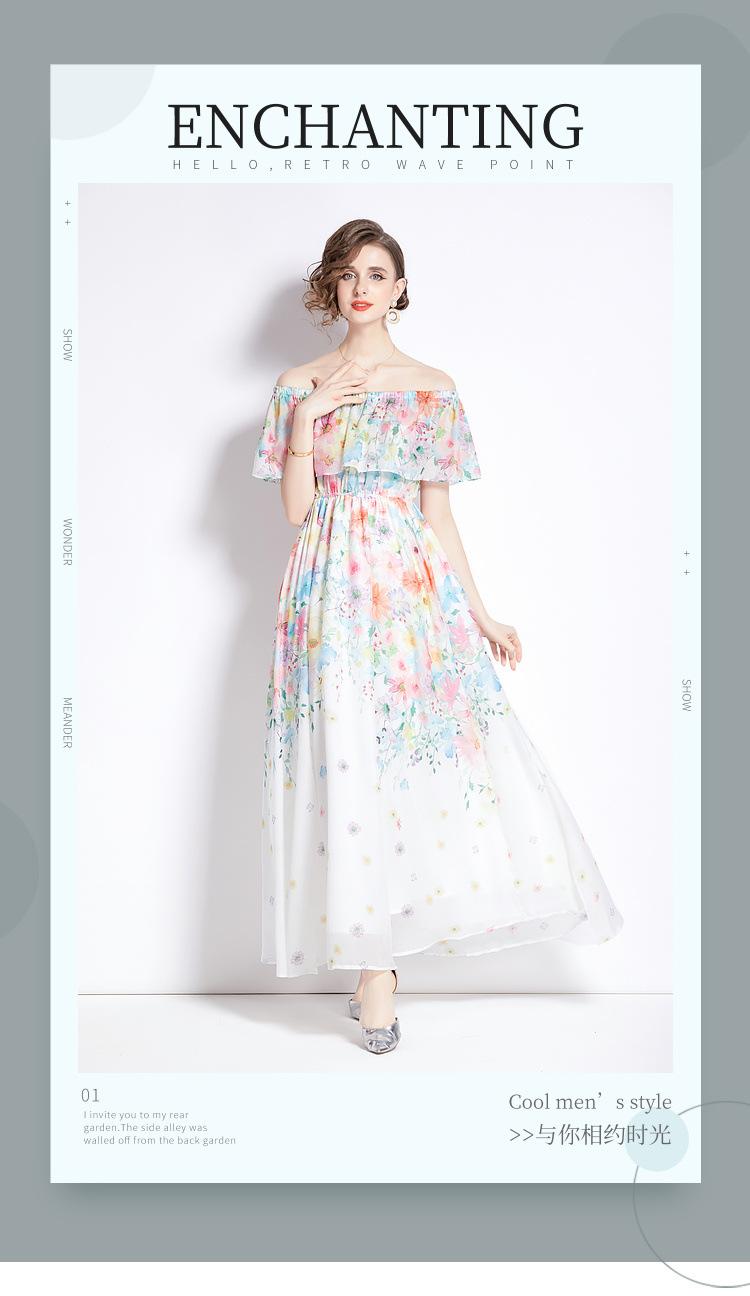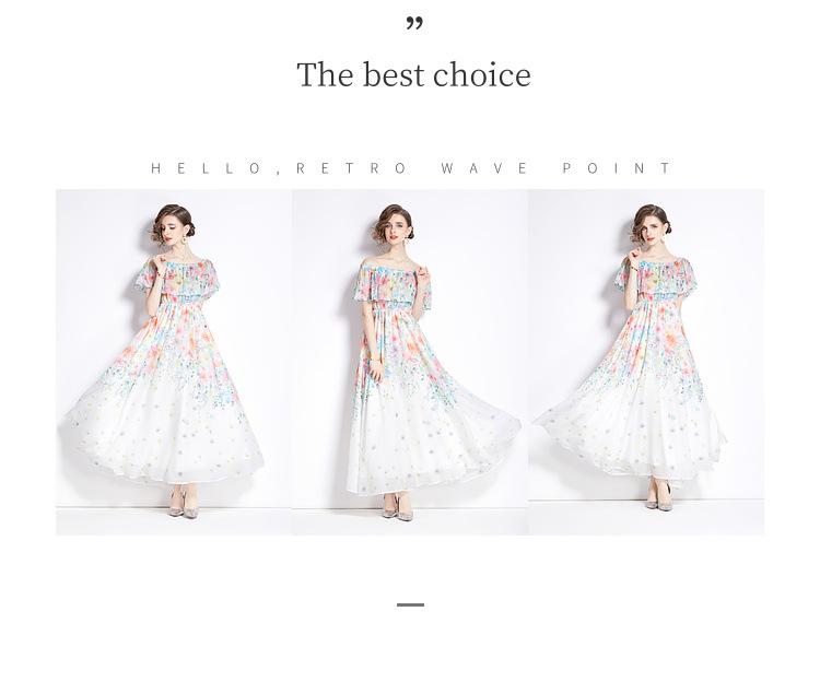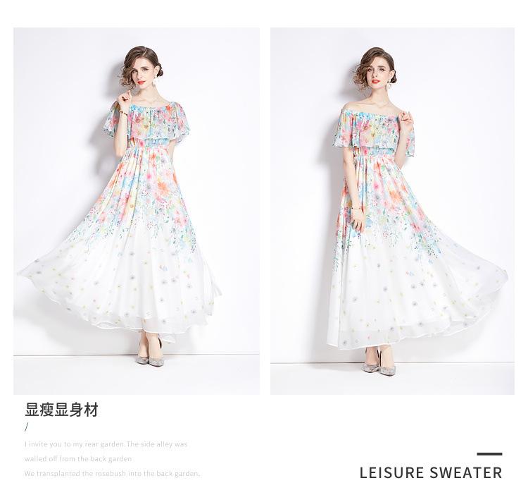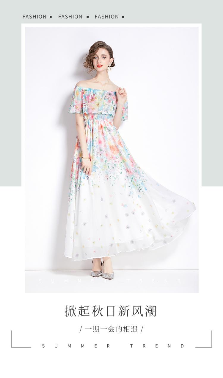 Nuevo vestido de chifón con volantes, hombros descubiertos, talla grande, cintura ajustada, falda amplia para playa con abertura, para mujer