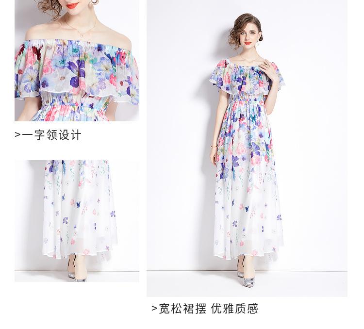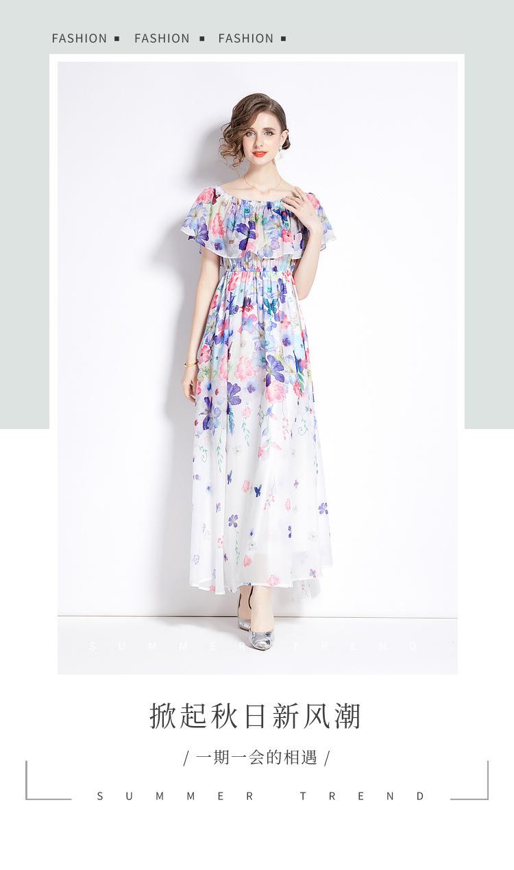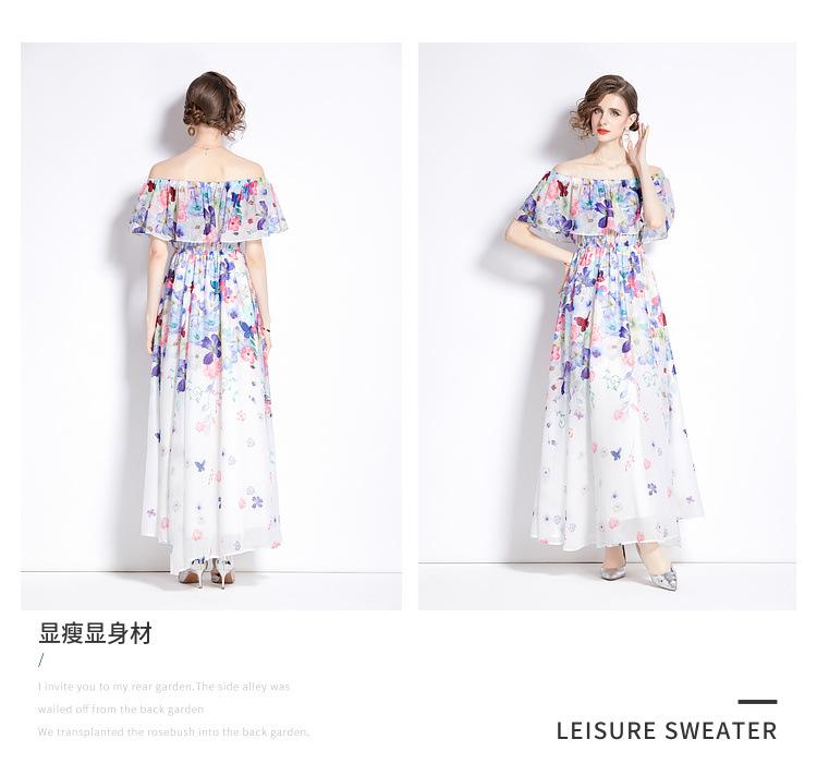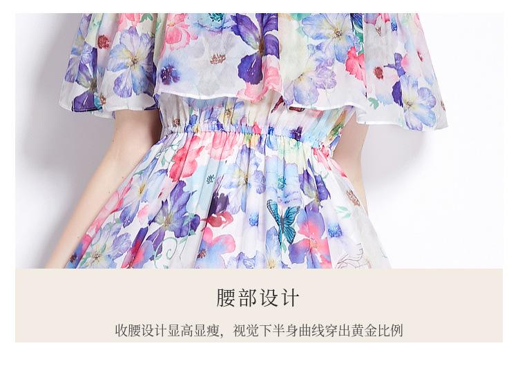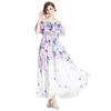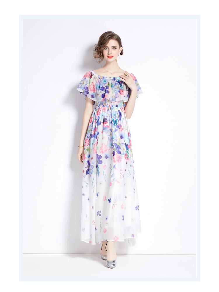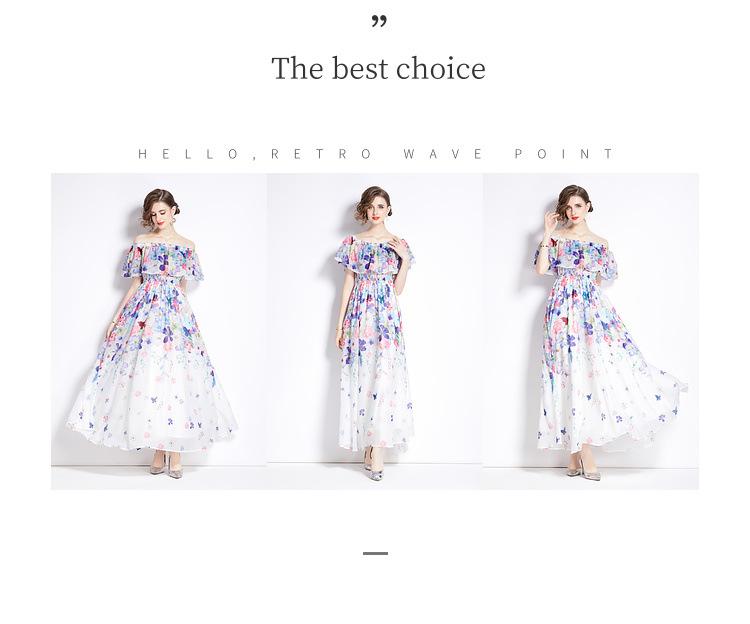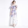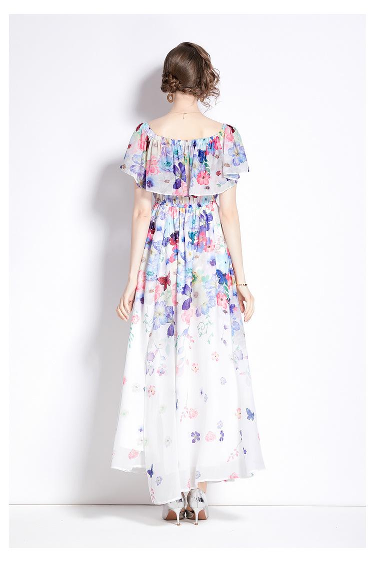 Nuevo vestido de gasa dividido con volantes, escote pronunciado, cintura ajustada y falda playera de vuelo grande para mujer